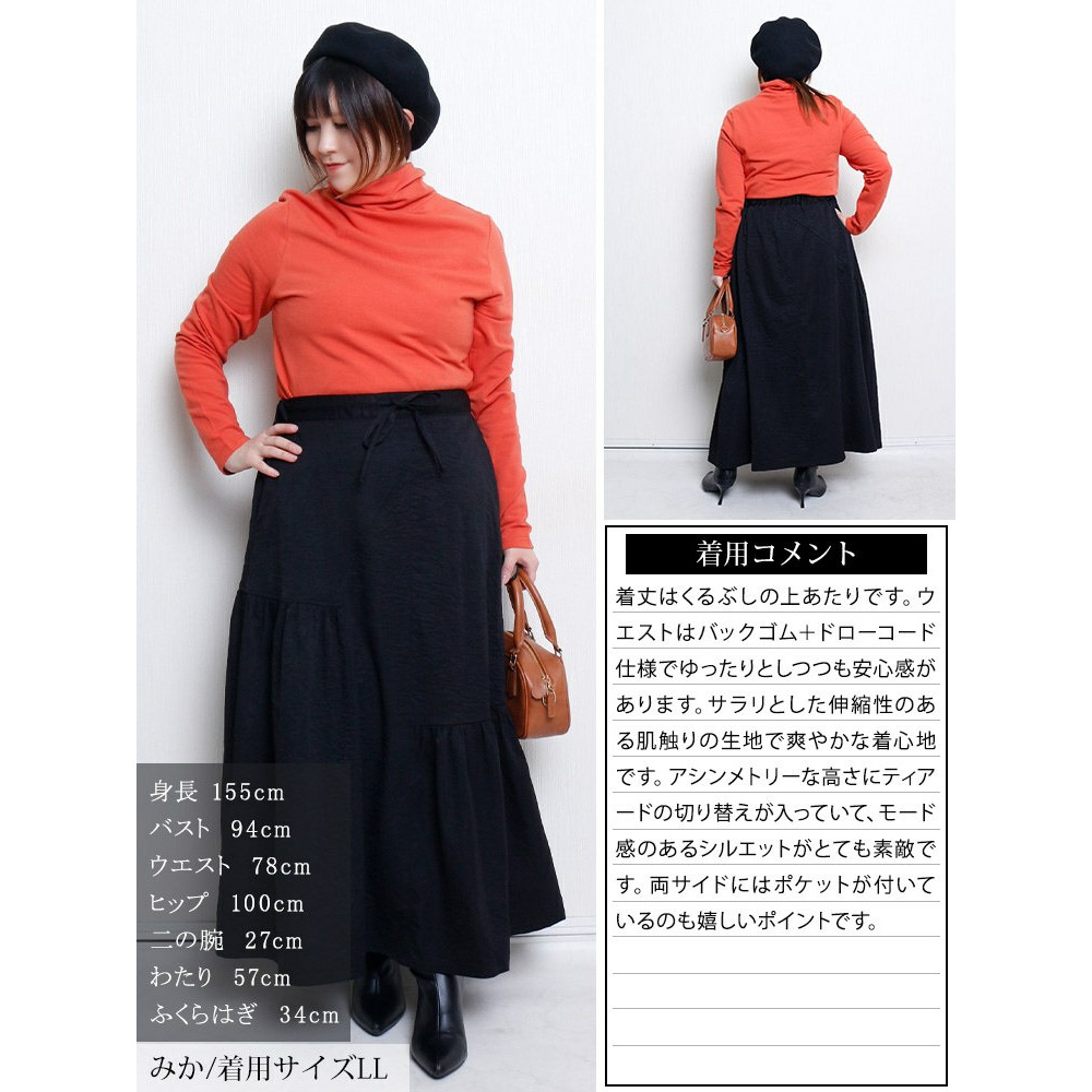 サイズ表記 LL 3L 4L 5L 総丈 89cm 90cm 91cm 92cm ウエスト幅 38-58cm 41-61cm 44-64cm 47-67cm 裾幅 121cm 127cm 133cm 139cm