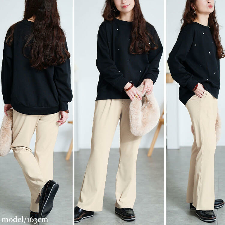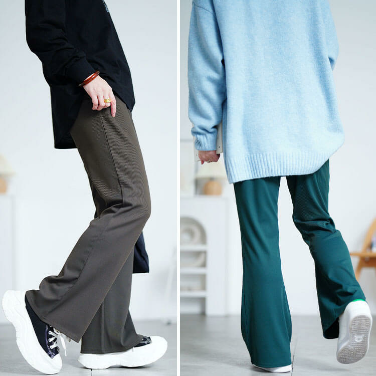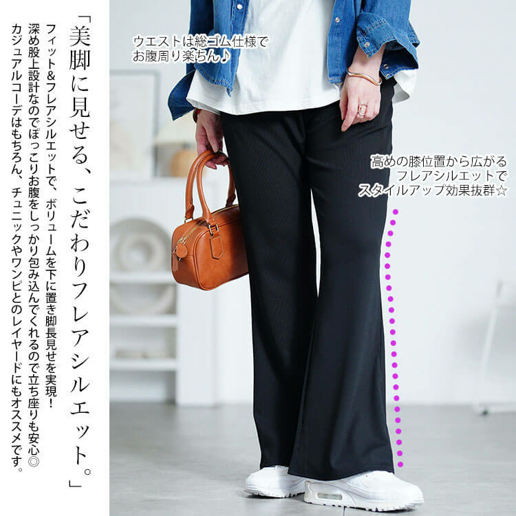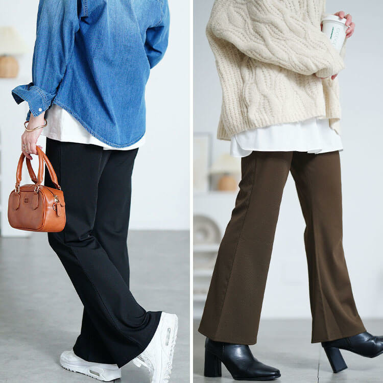 すらりと脚長見せできちゃう魔法のようなストレッチテレコフレアパンツ登場です!