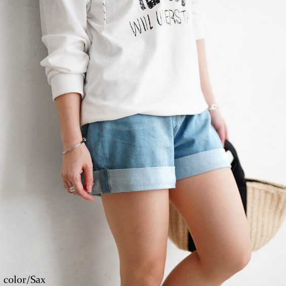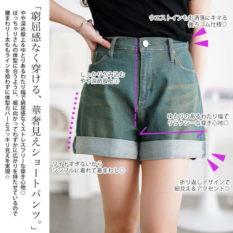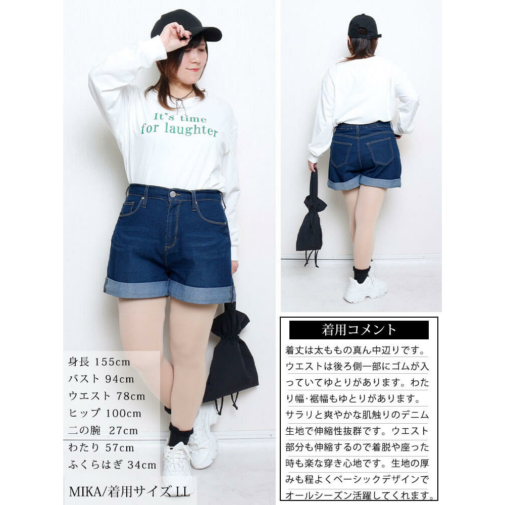 大きいサイズ レディース ストレッチデニムショートパンツ