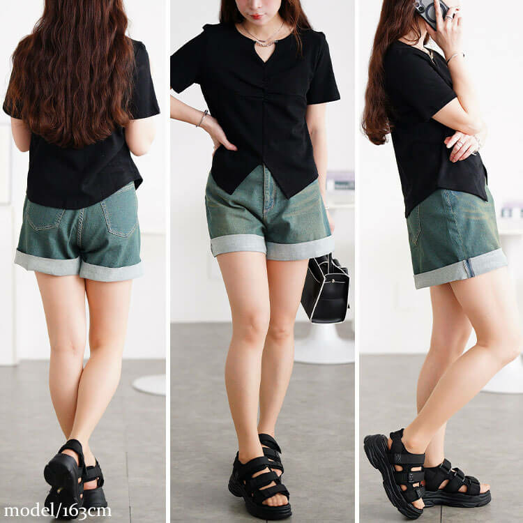 敢えて裾幅と太ももとの間に隙間をつくり視覚効果で細脚に見せてくれます♪