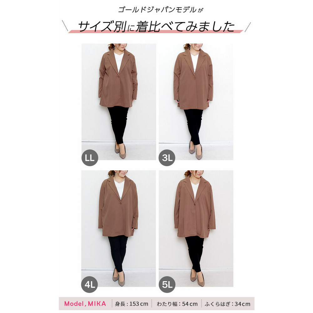 サイズ表記 LL 3L 4L 5L 身丈 75cm 76cm 77cm 78cm 胸幅 56cm 59cm 62cm 65cm 肩幅 42cm 43cm 44cm 45cm 袖丈 59cm 59cm 59cm 59cm アームホール 23cm 23.5cm 24cm 24.5cm 袖幅 19cm 19.5cm 20cm 20.5cm 袖口幅 12cm 12cm 13cm 13cm 裾幅 65cm 68cm 71cm 74cm