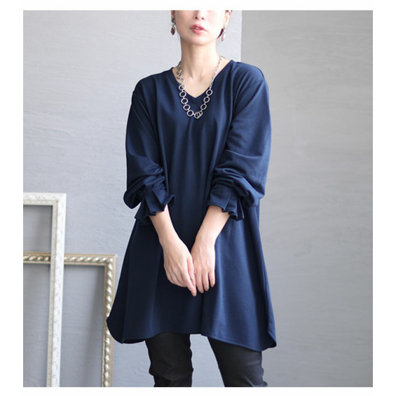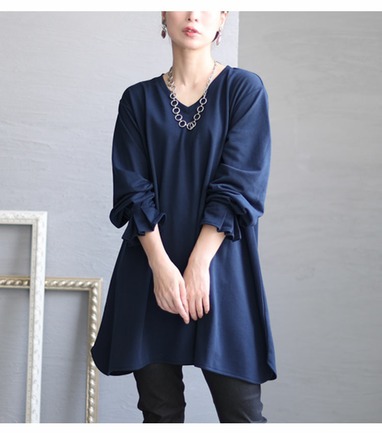 Vネックなのでお顔周りをスッキリと見せてくれます。