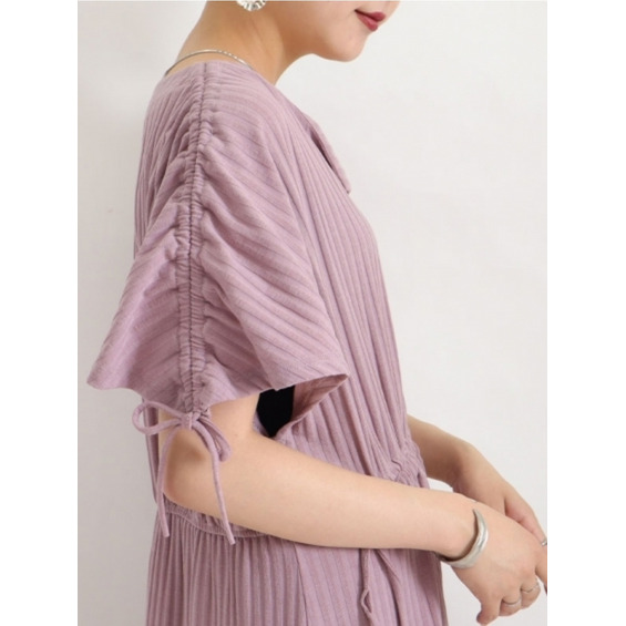 袖とウエストにドローコードを施したデザイン。お袖はドルマンスリーブ、シャーリングしてフレンチスリーブに♪ウエストは絞ればくびれのあるメリハリシルエットに。