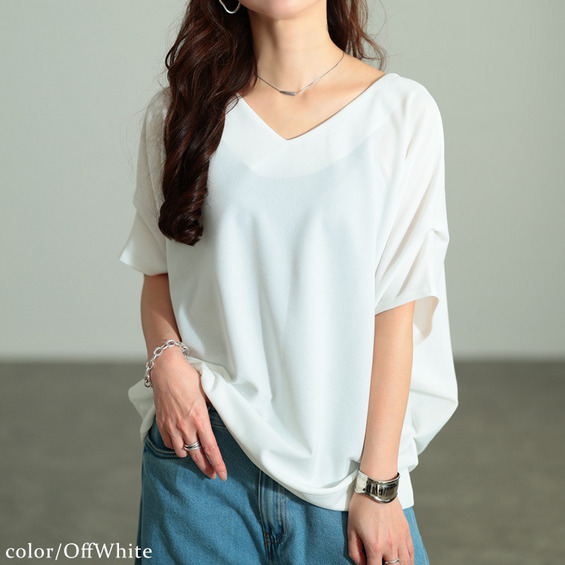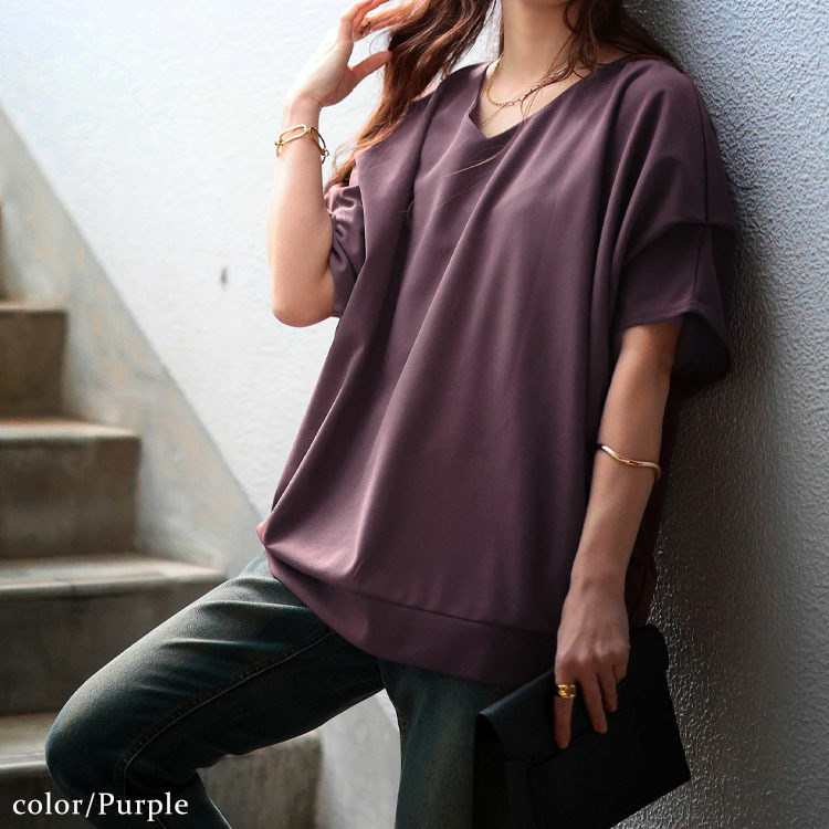 着回し抜群の接触冷感&UVカット肩タックドルマンプルオーバーです。