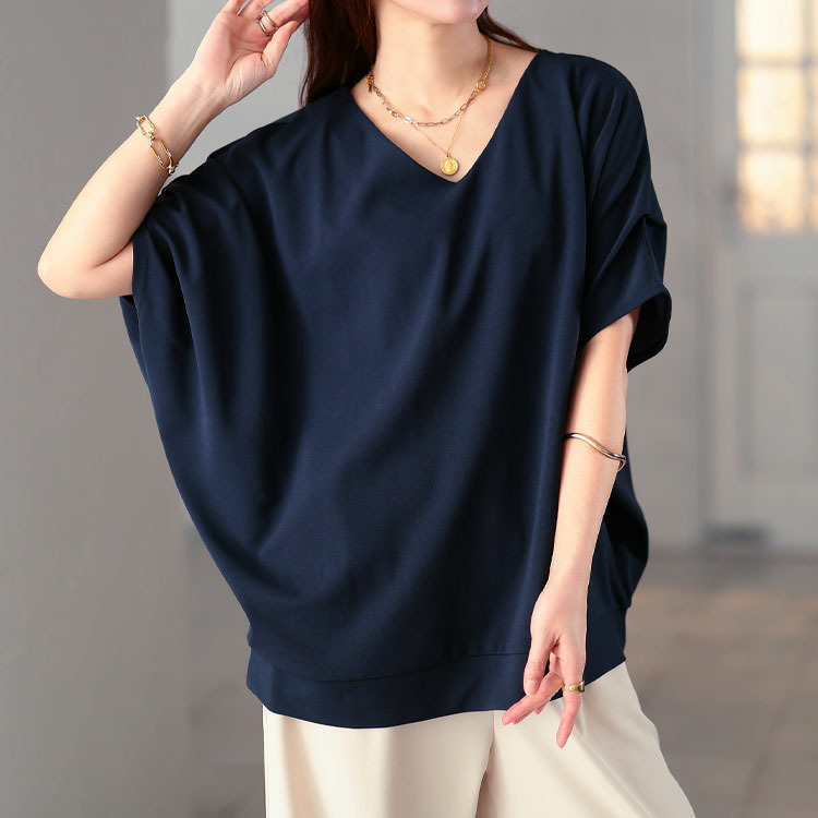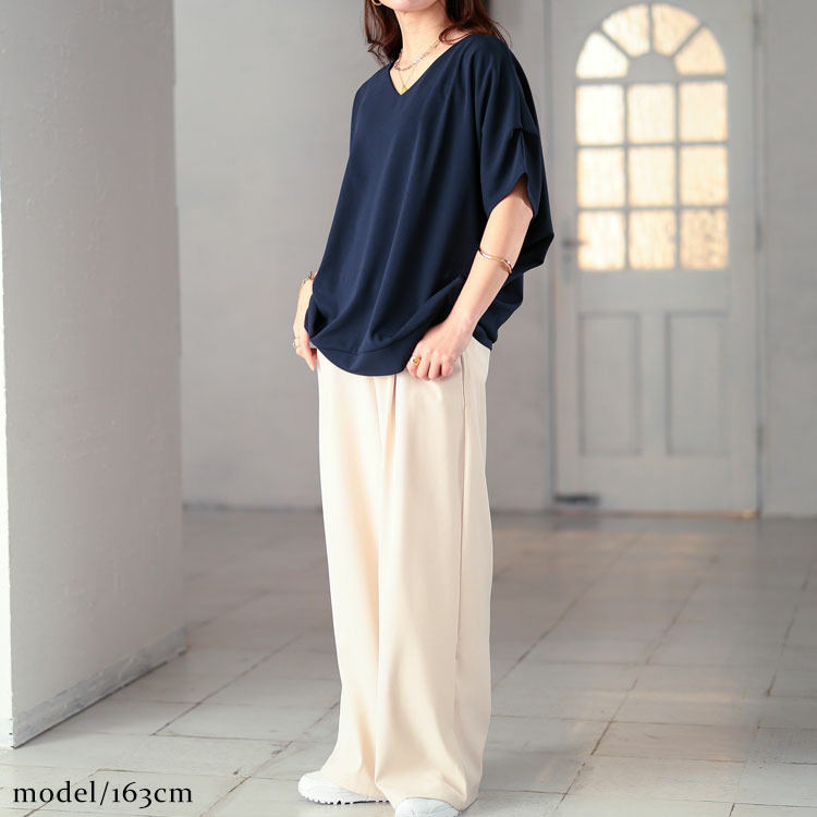 Vネックなのでお顔周りスッキリと見せてくれます。