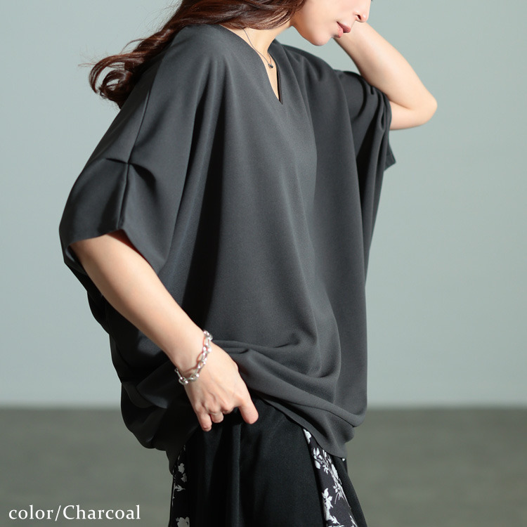 ドルマン袖なので、気になる脇腹周りもカバーできてスッキリと見えます。