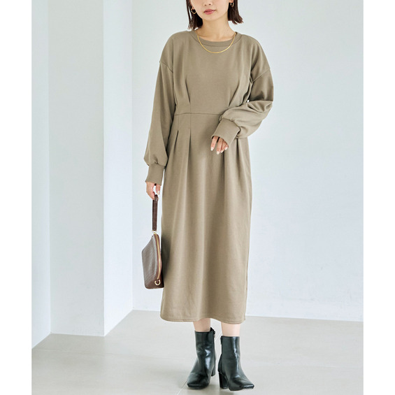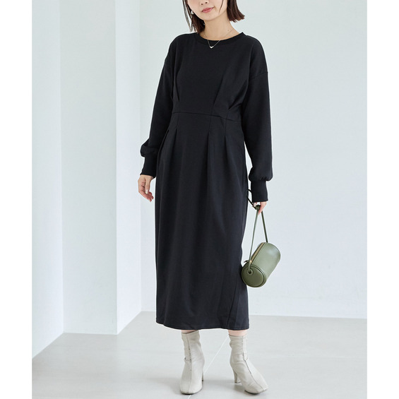 スタイルアップ効果のあるウエストタックが魅力のポンチワンピース。