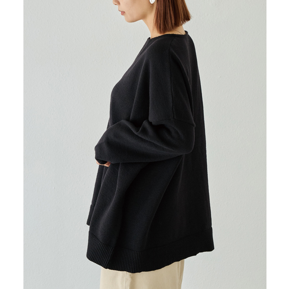 程よいオーバーサイズ感が魅力の、ポンチョ風シルエットのニットプルオーバー。
