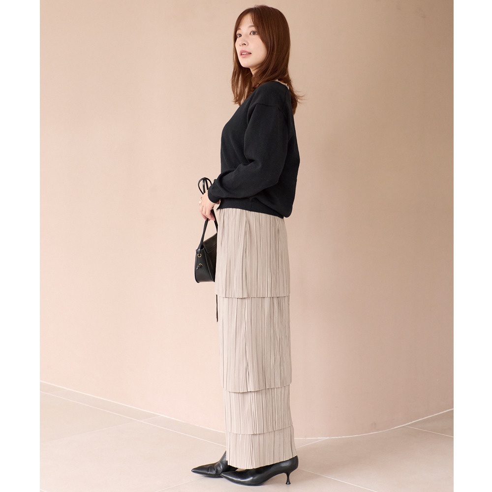 フェミニンなディテールが際立ち、シンプルながらも華やかな印象を与えてくれます。