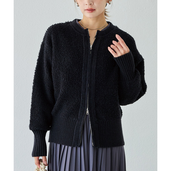 前開きはダブルジップ仕様で、着こなしに抜け感をプラスしつつ、アレンジも楽しめます。