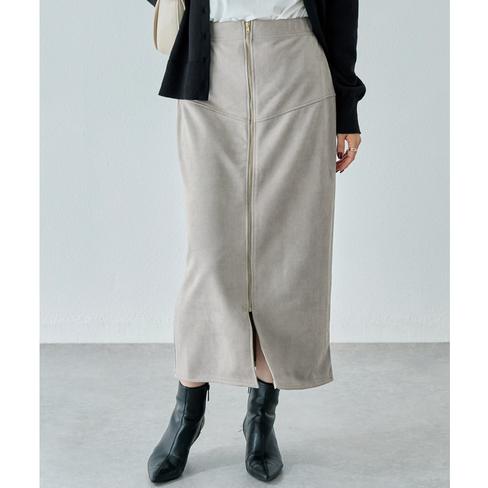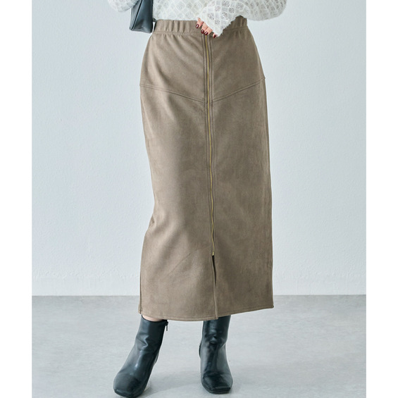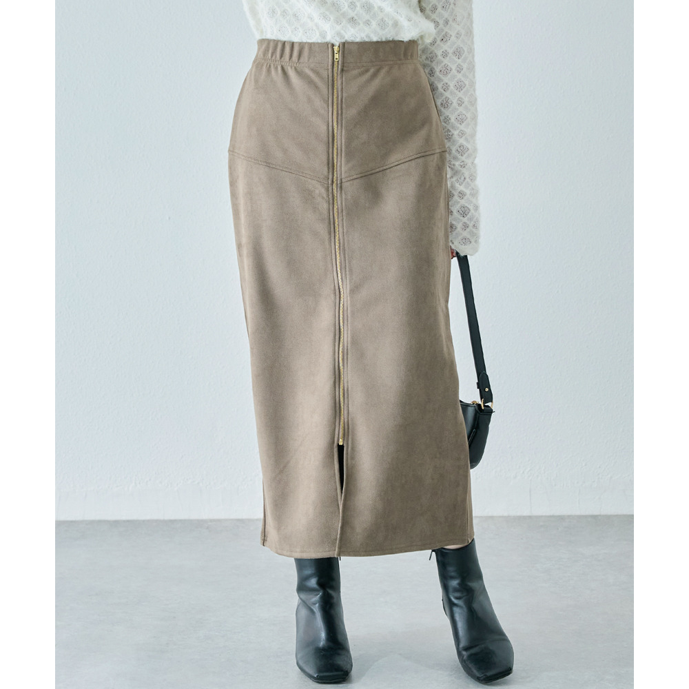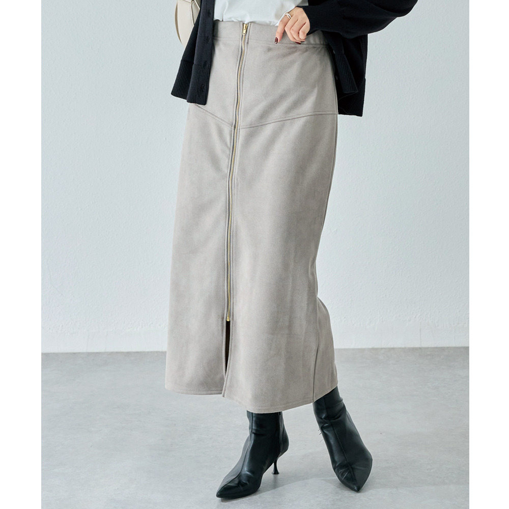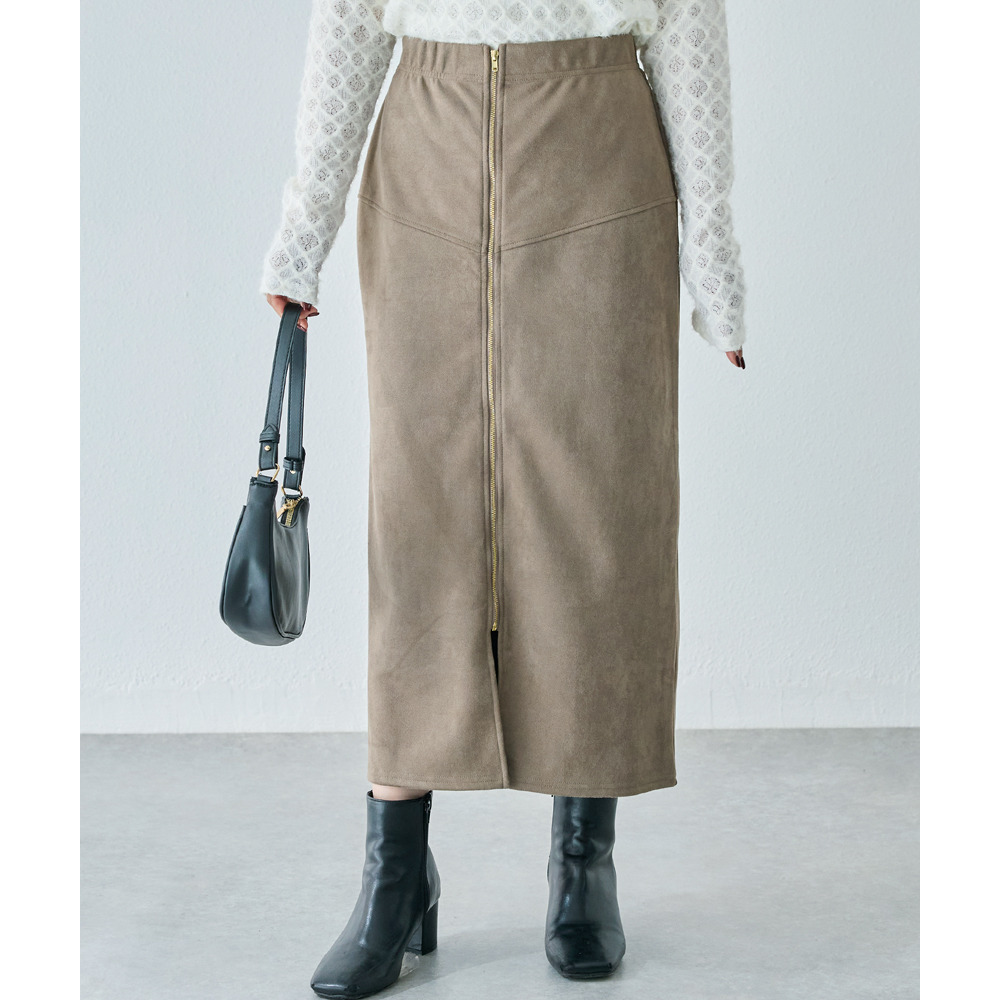 スエードフロントファスナースカート