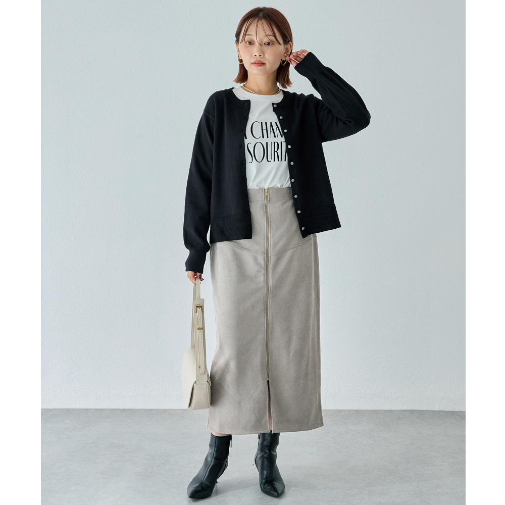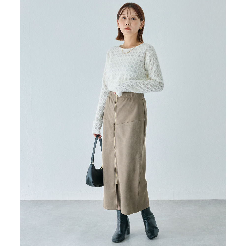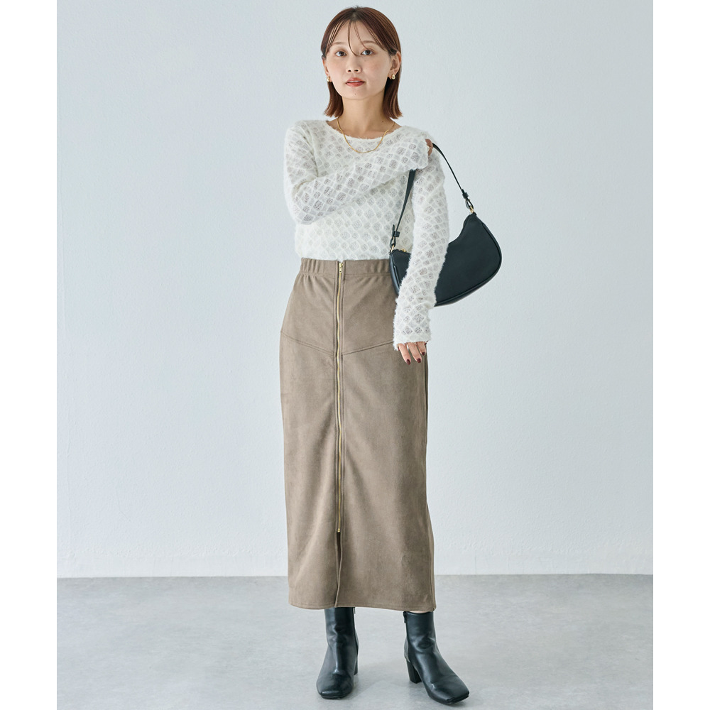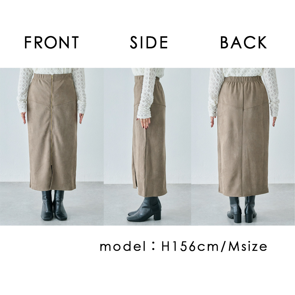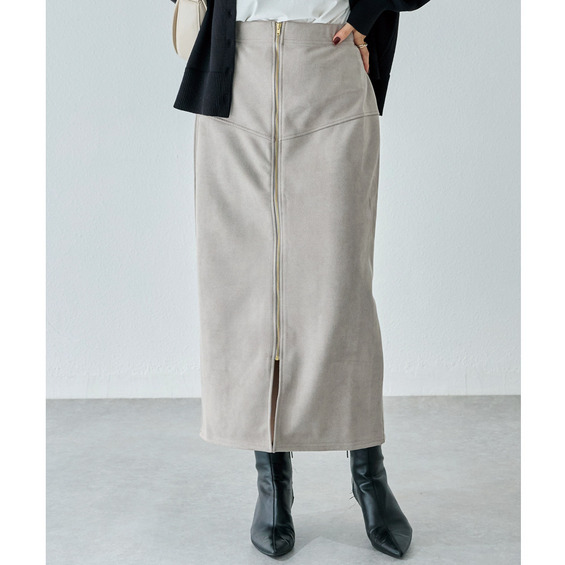 スエードフロントファスナースカート