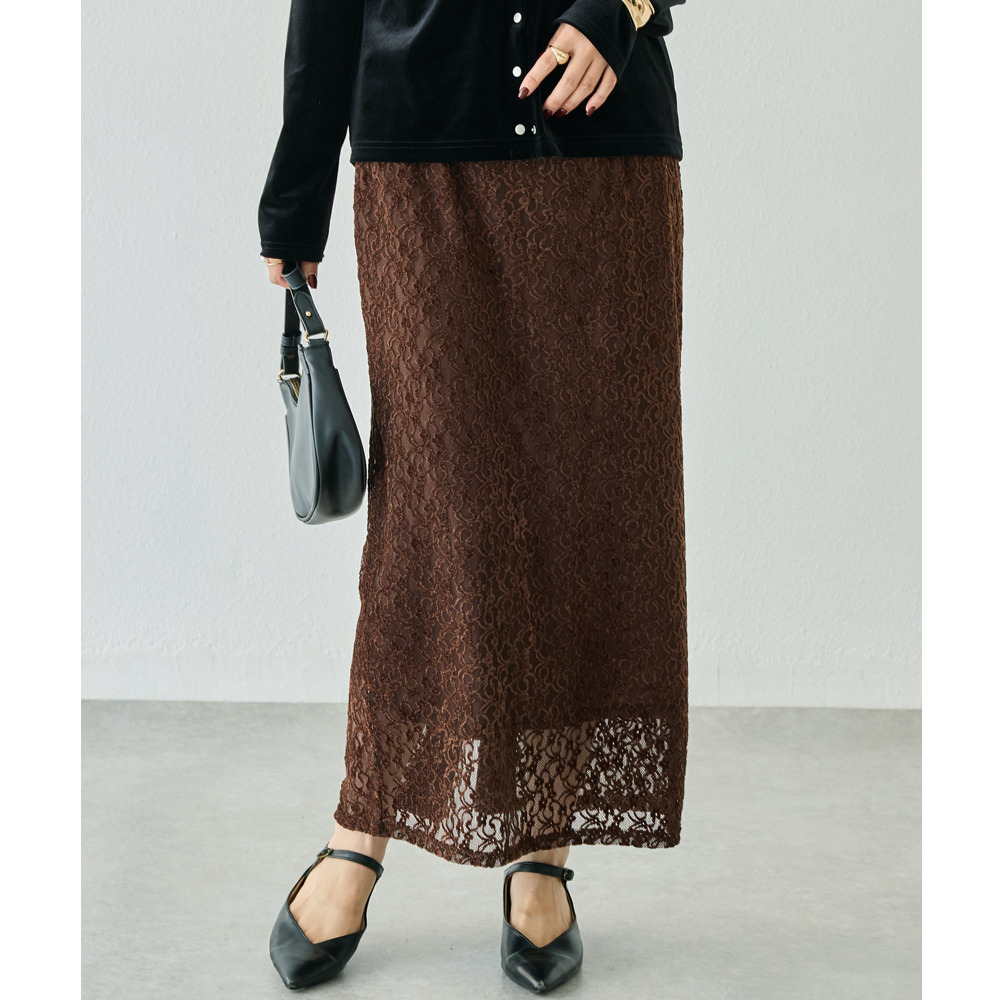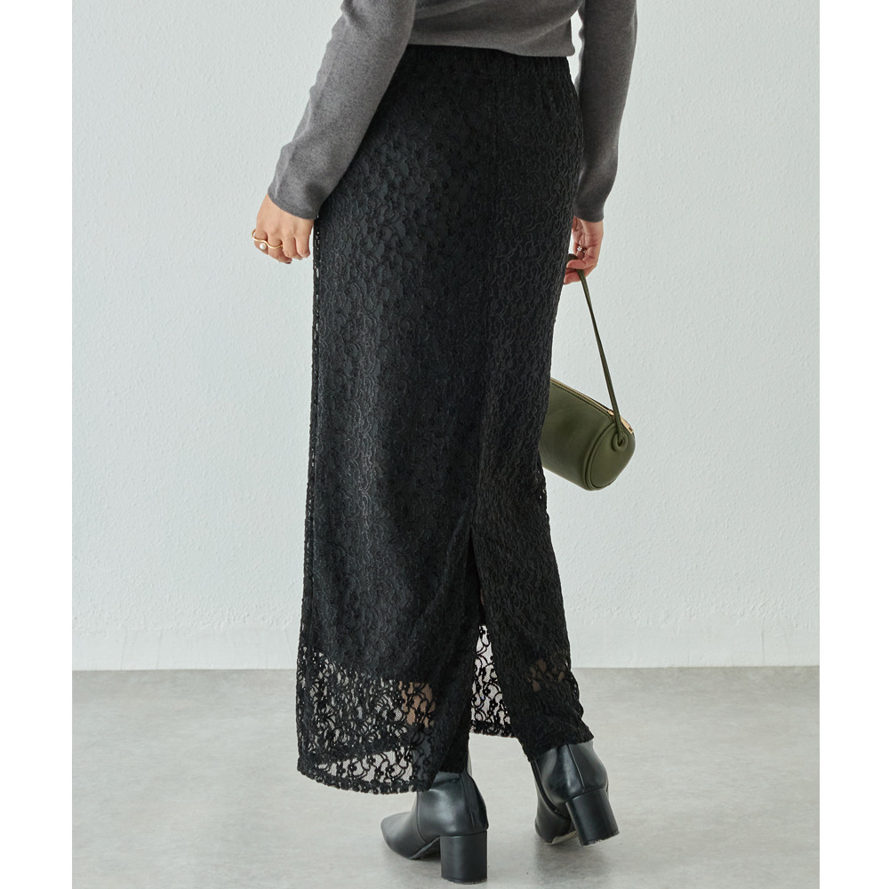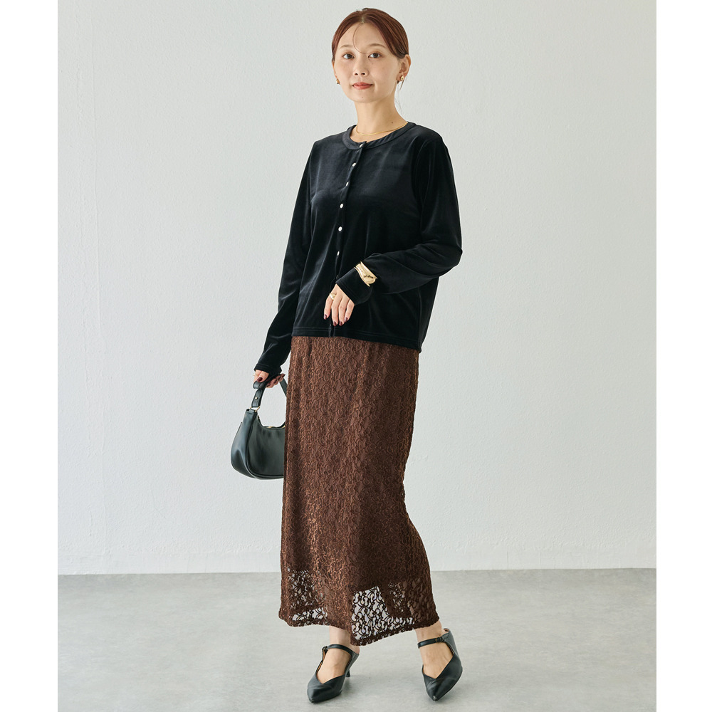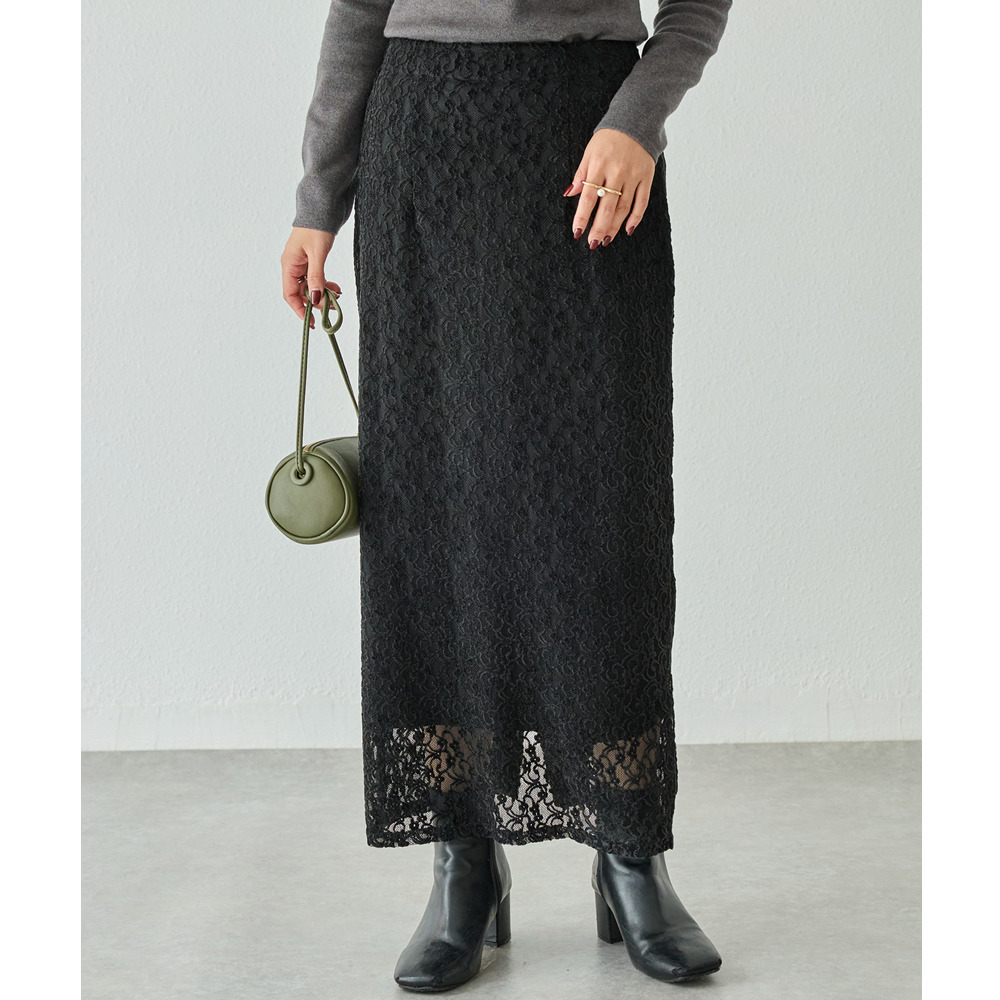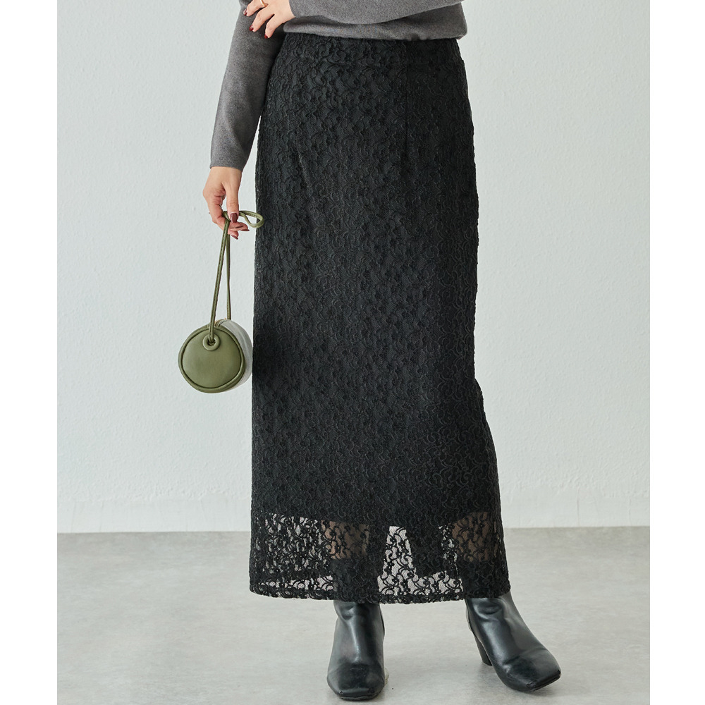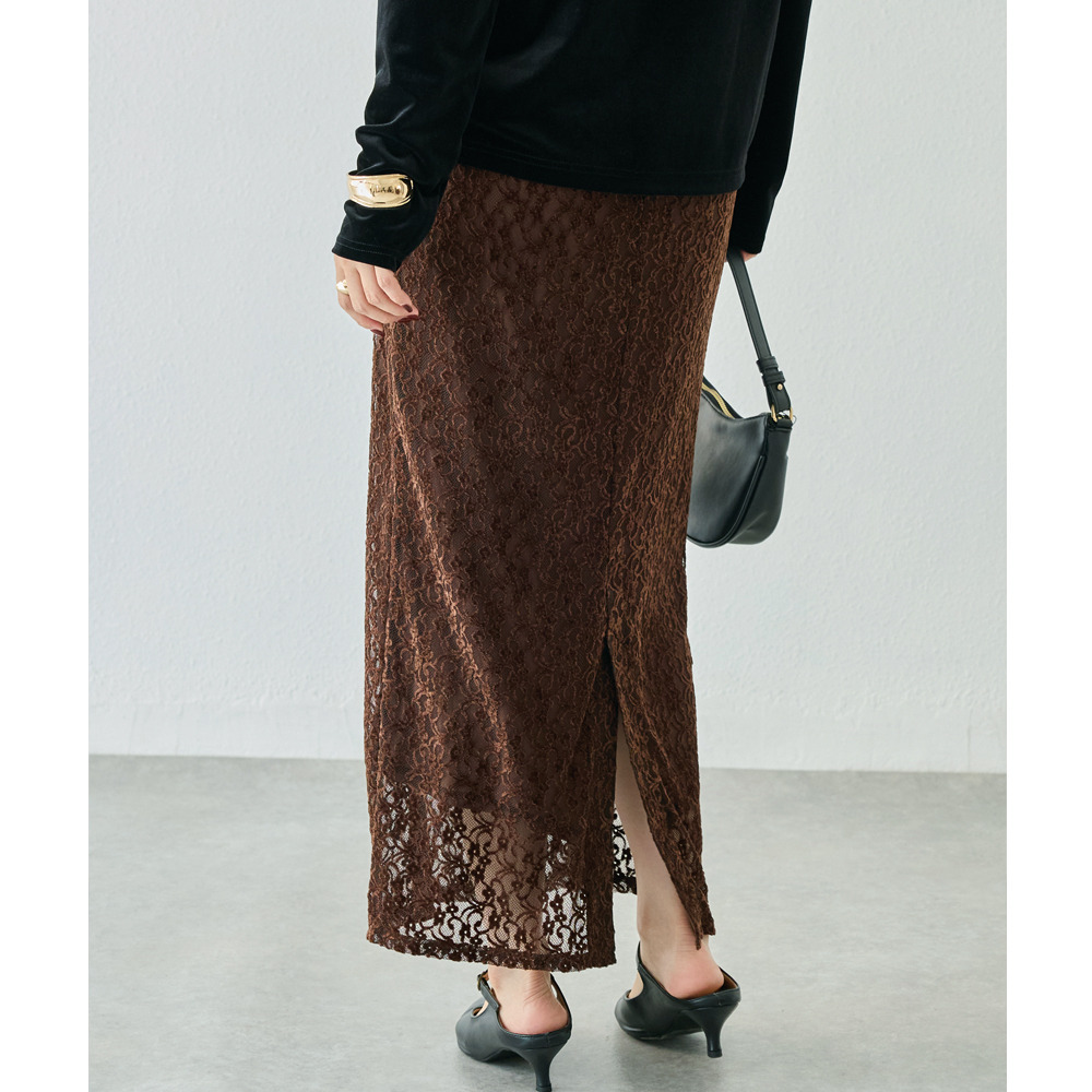 レース素材に起毛加工を施した、シーズンムード高まるナロースカート。