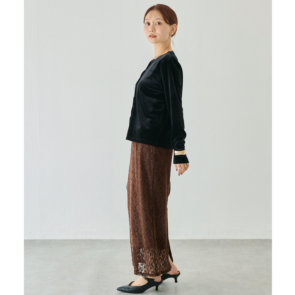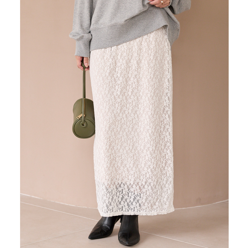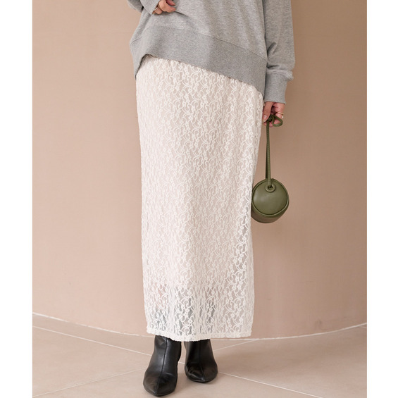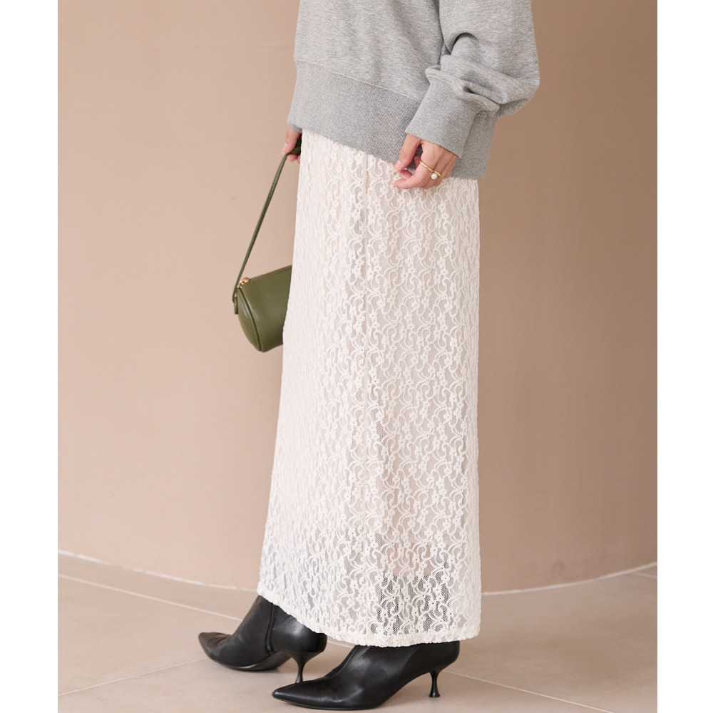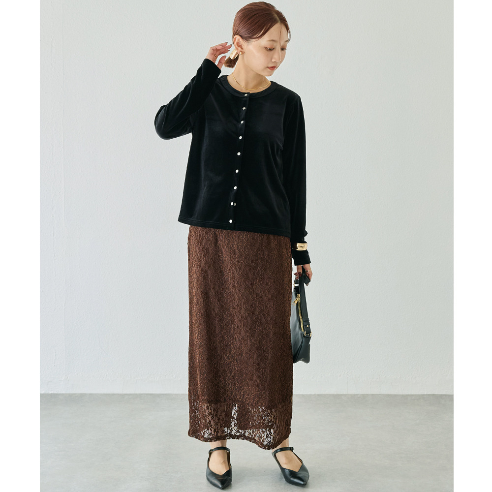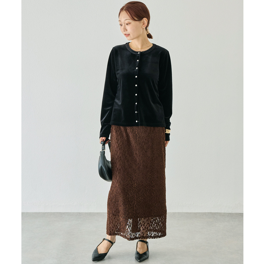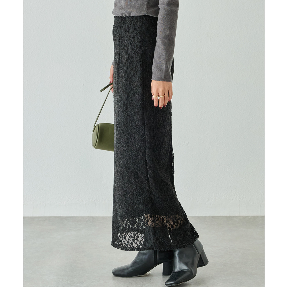 レース素材に起毛加工を施した、シーズンムード高まるナロースカート。