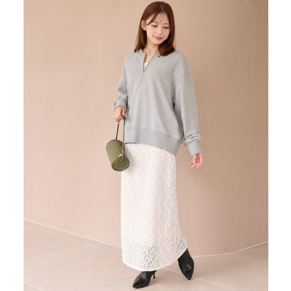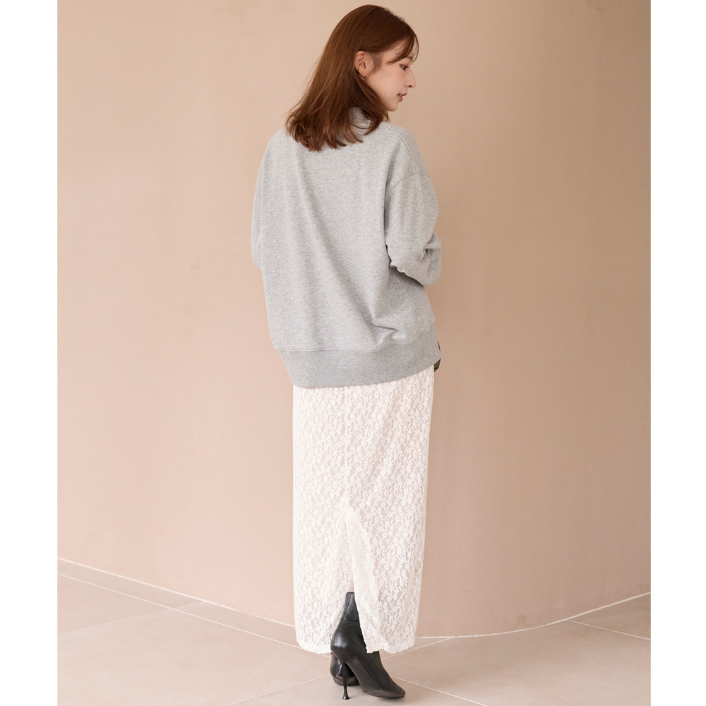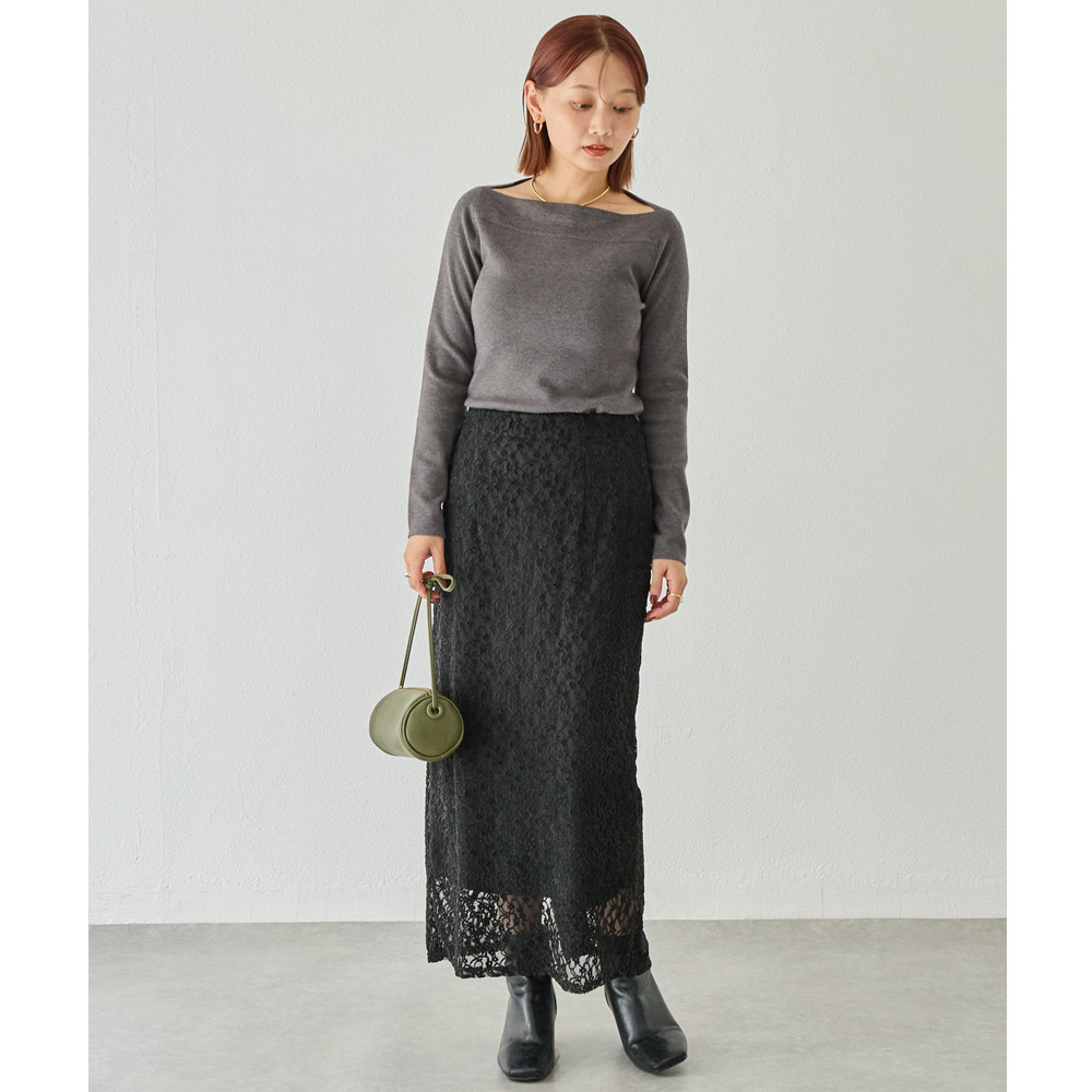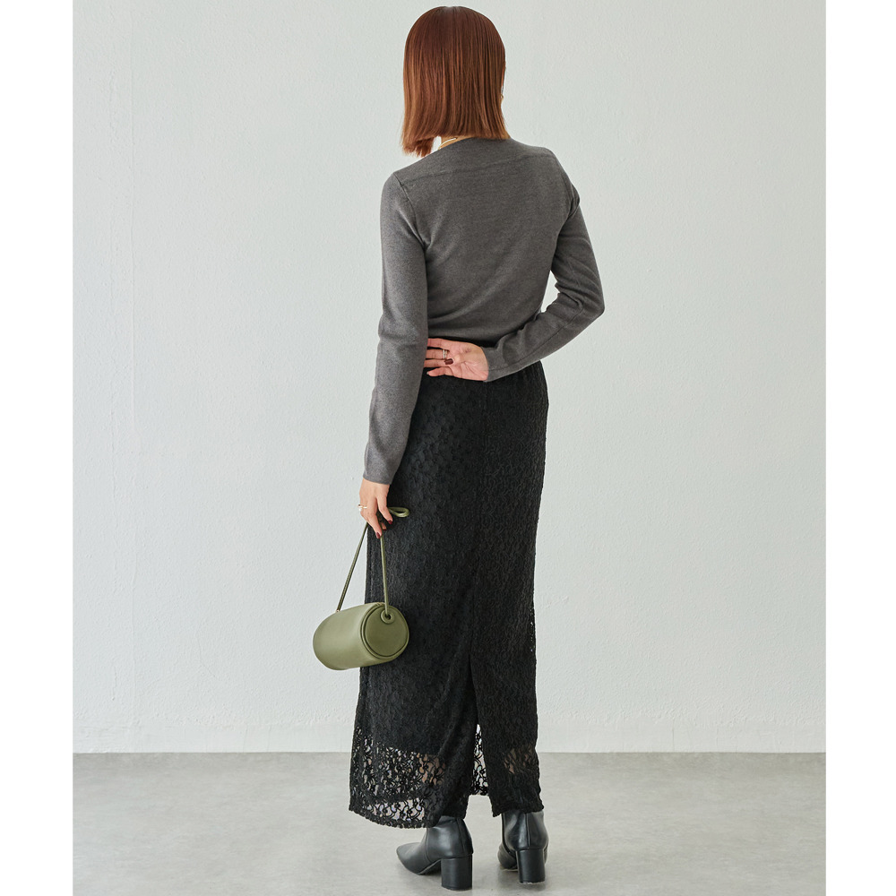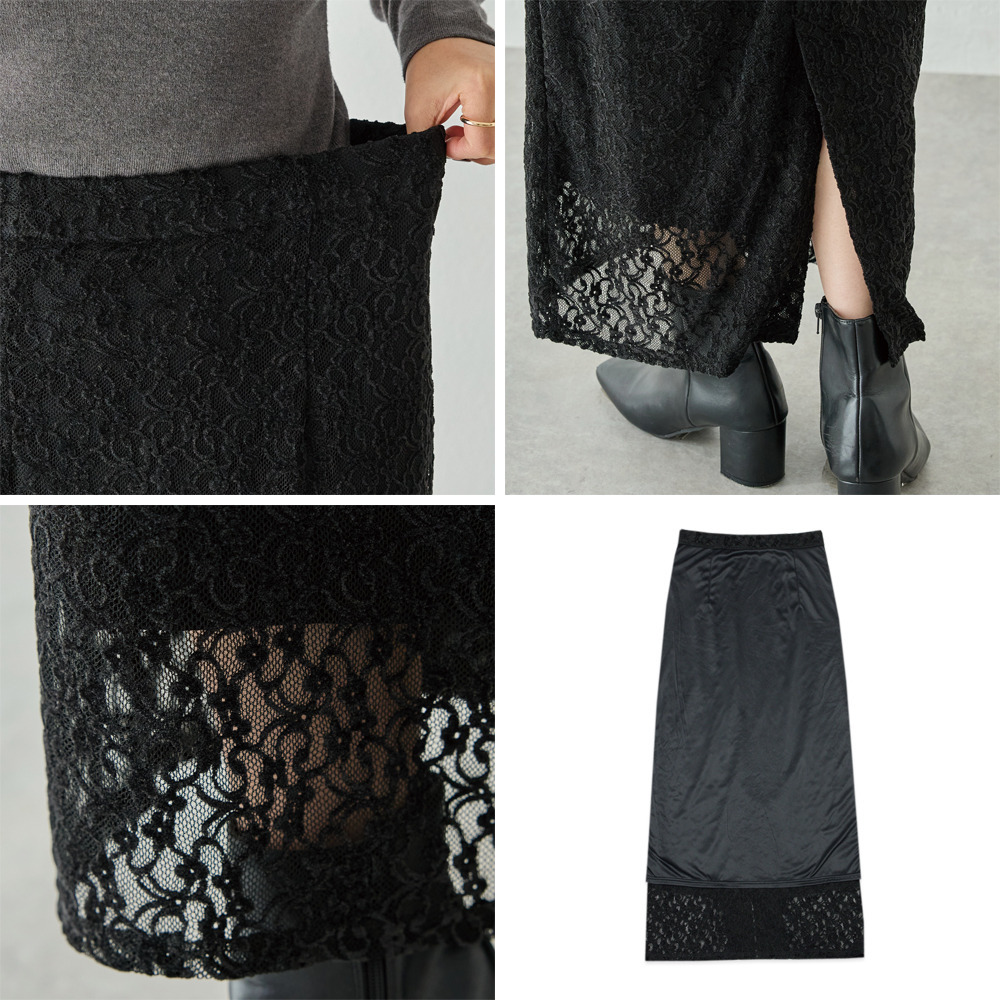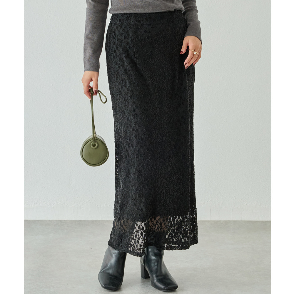 レース素材に起毛加工を施した、シーズンムード高まるナロースカート。