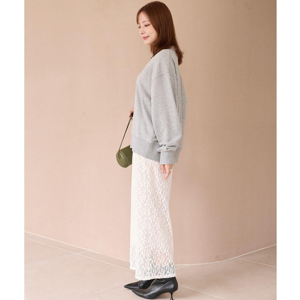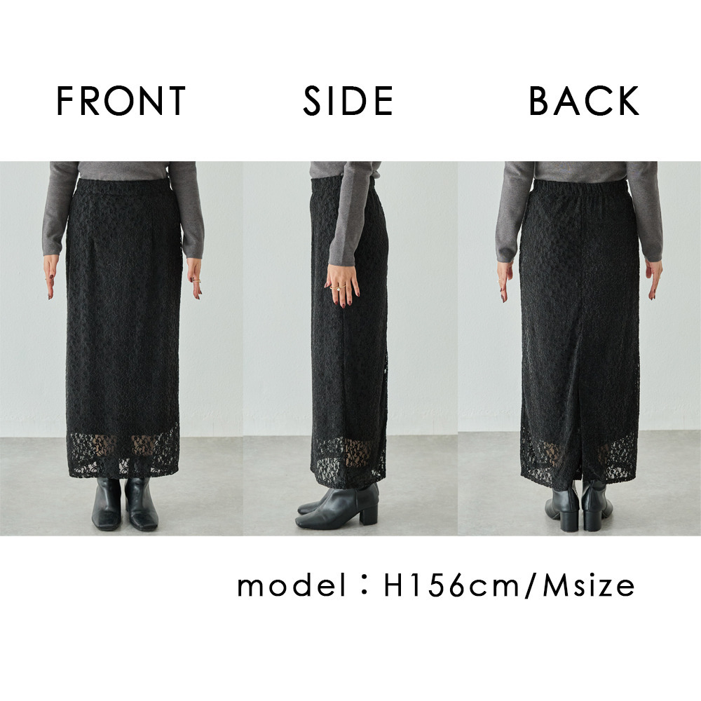 後ろスリットや、裾にかけての透け感がさりげなく女性らしさをプラスし、シューズやアウター次第で印象を変えられる万能アイテムです。