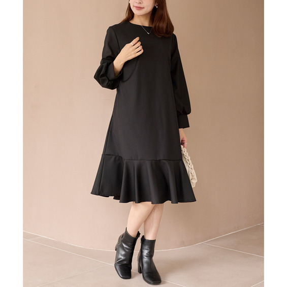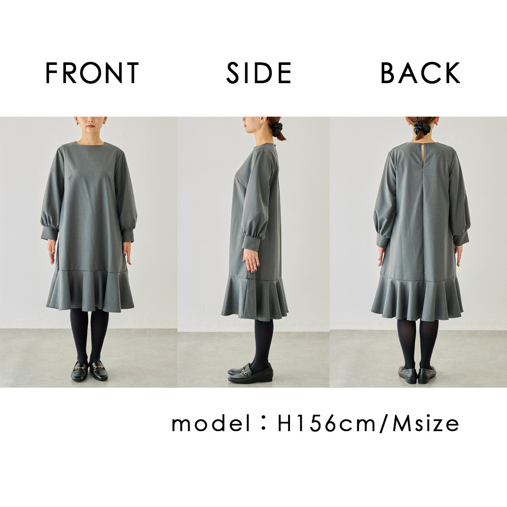 動くたびにふんわりと揺れるフレアシルエットが、女性らしさを引き立てます。