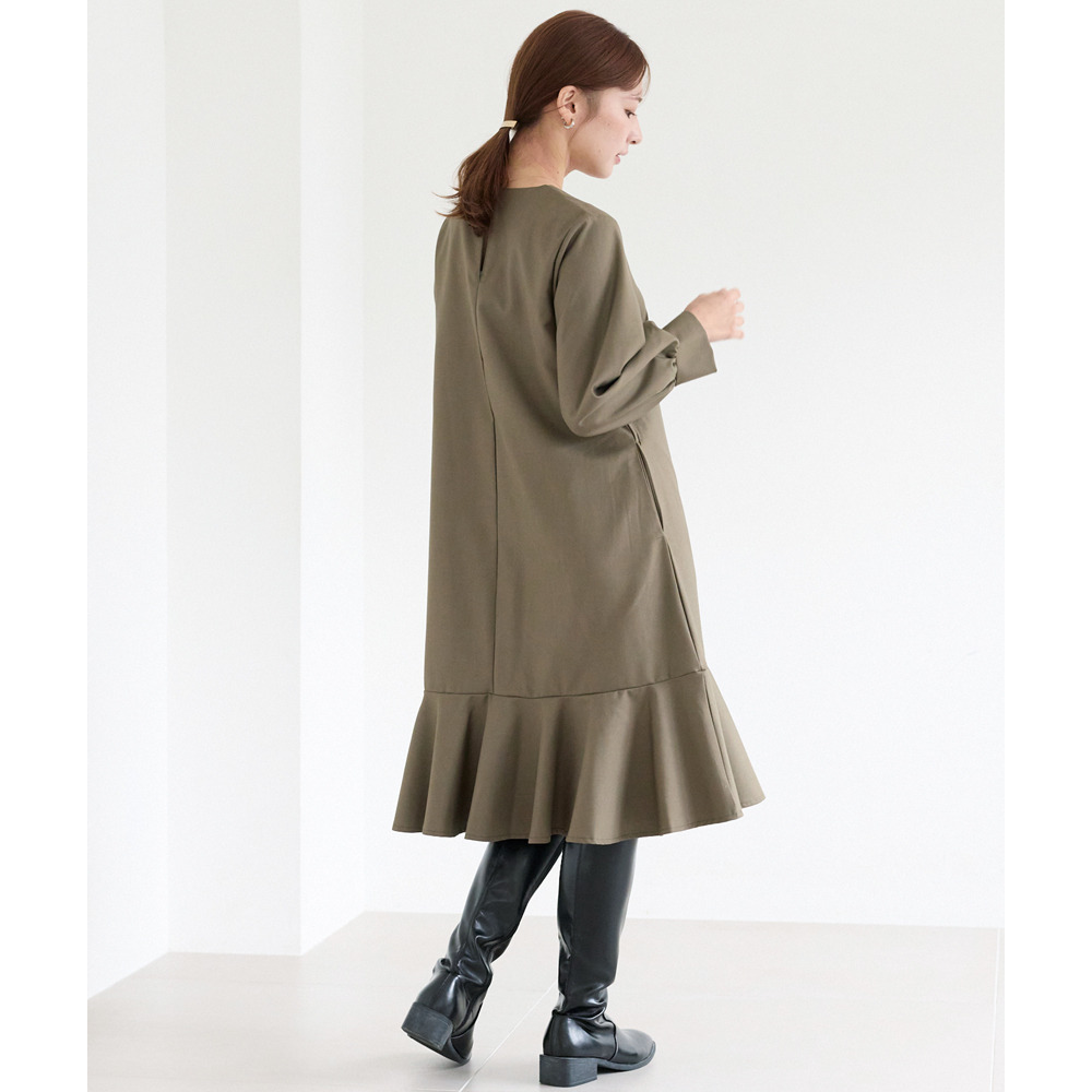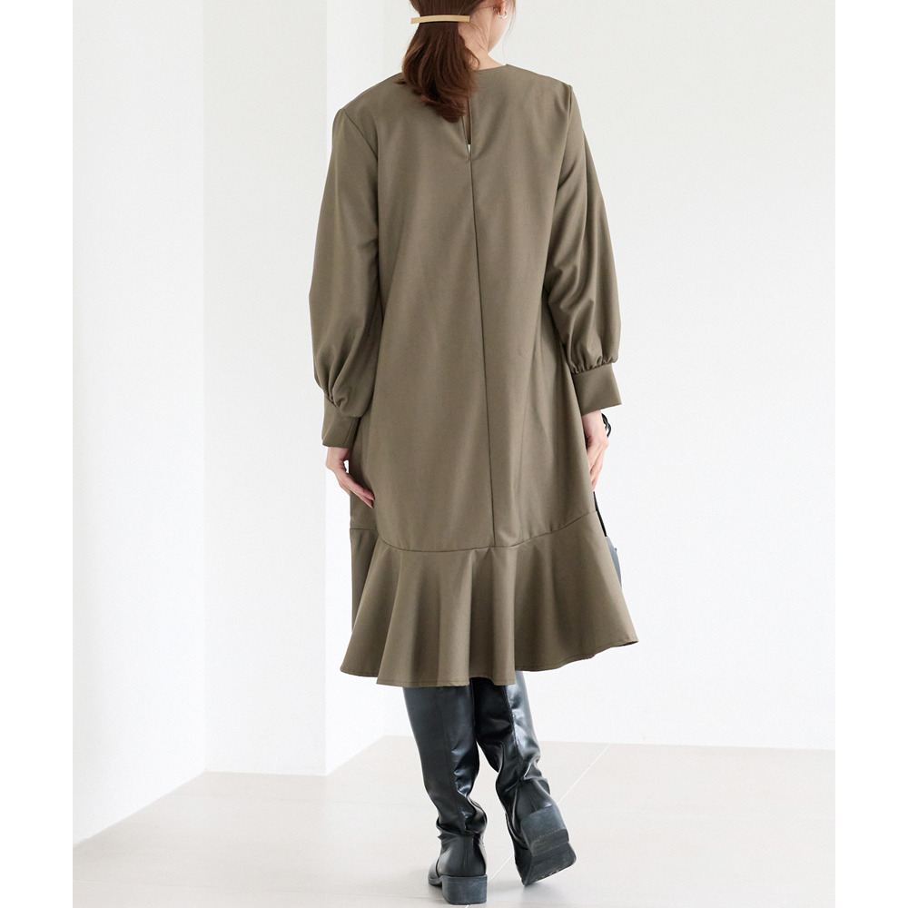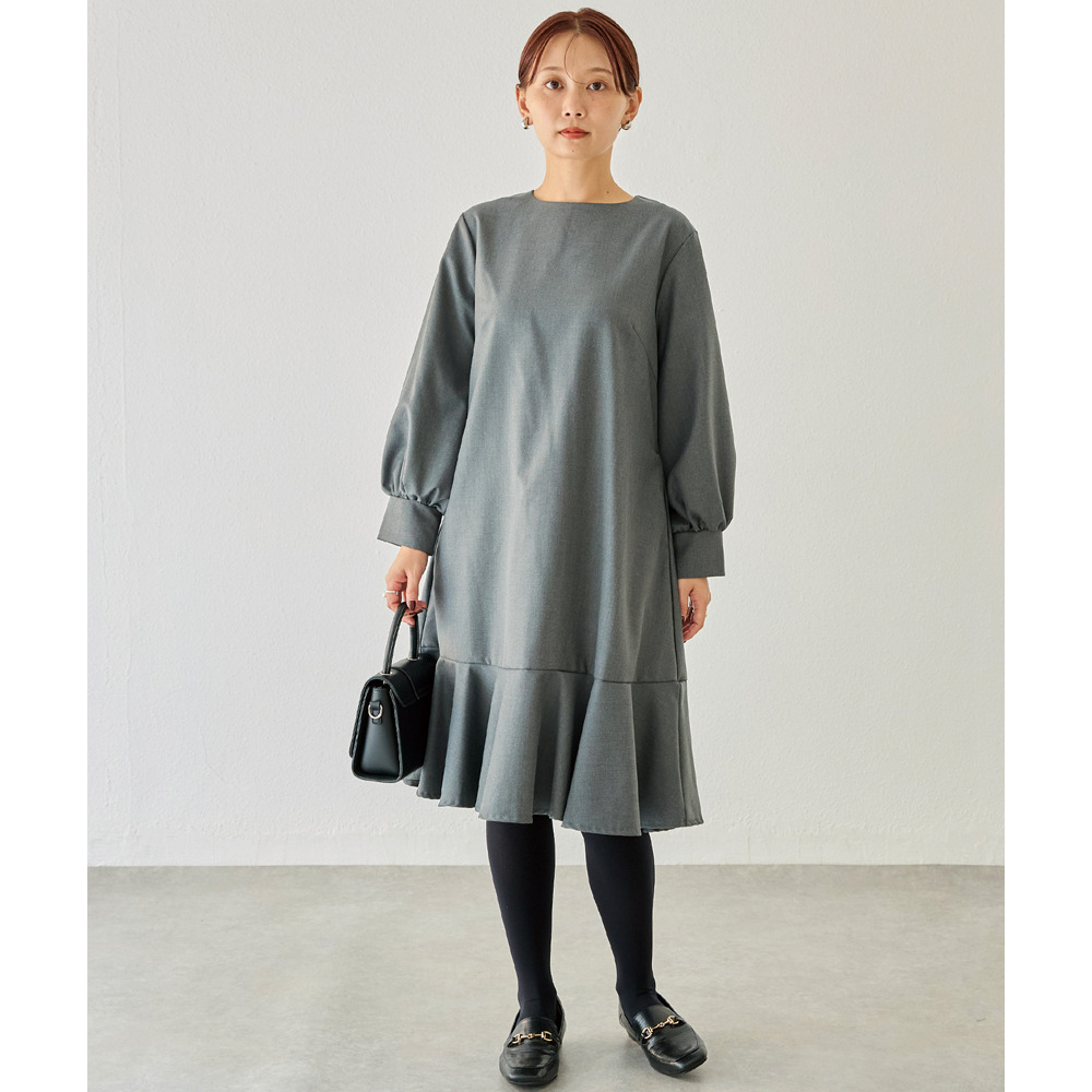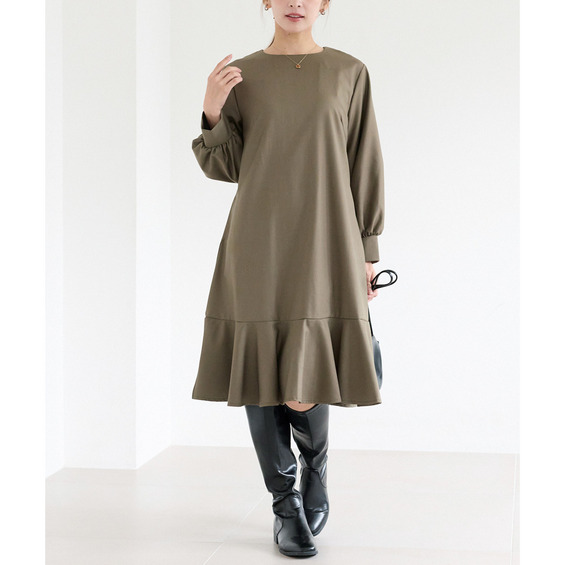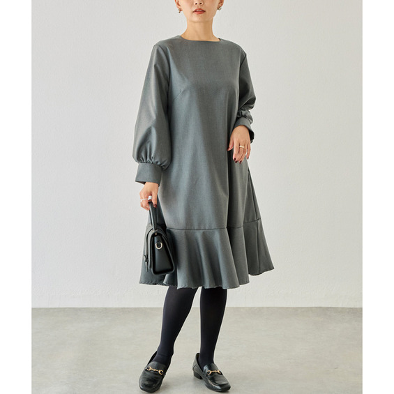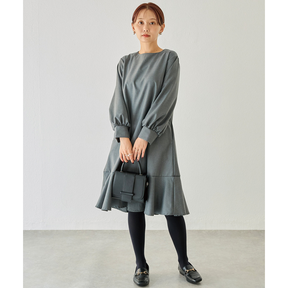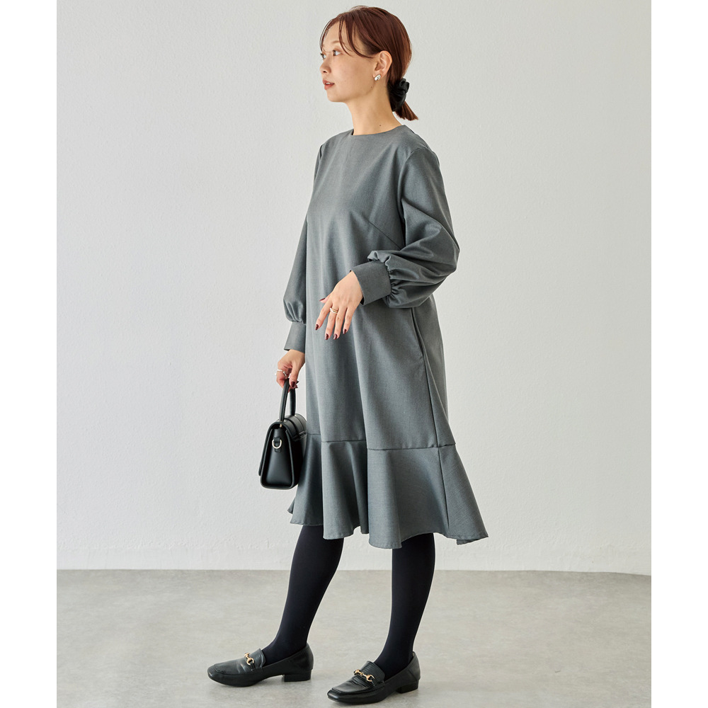 ヒップをさりげなくカバーする丈感と、程よいフレアでボリュームを抑えた上品なデザイン。