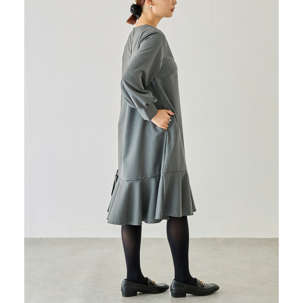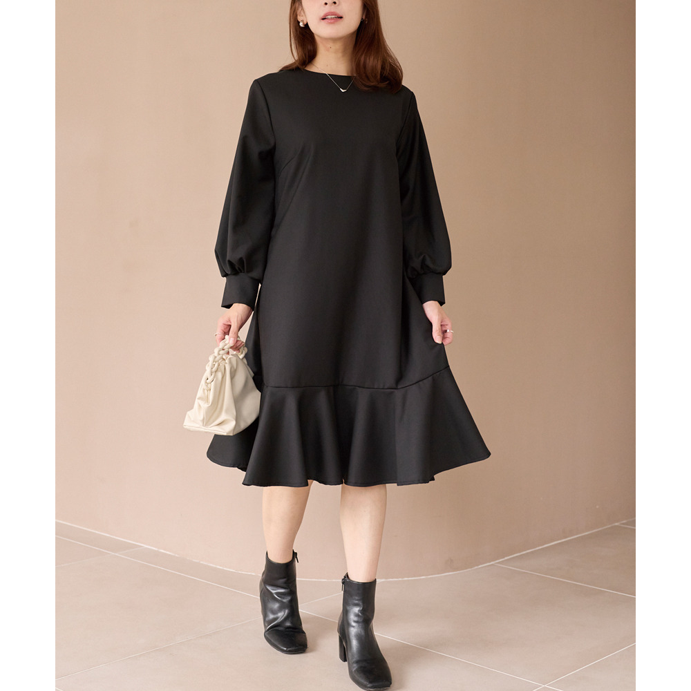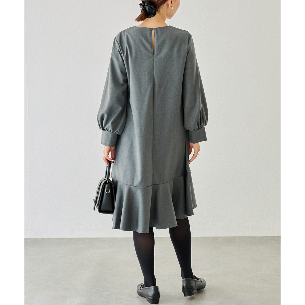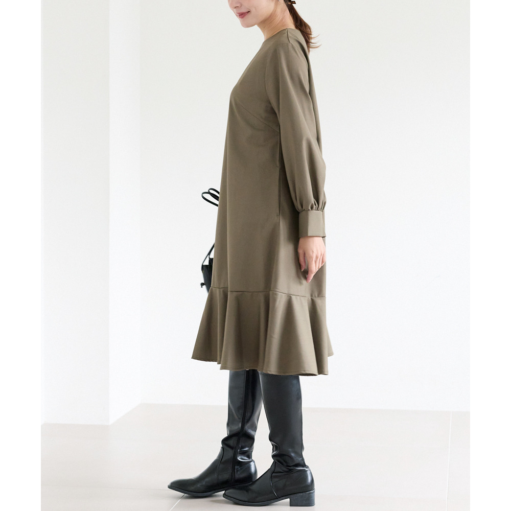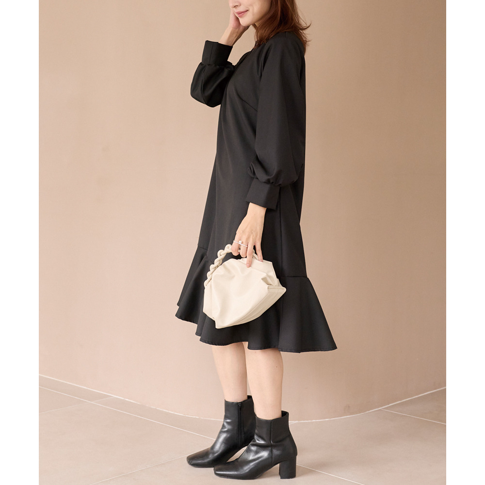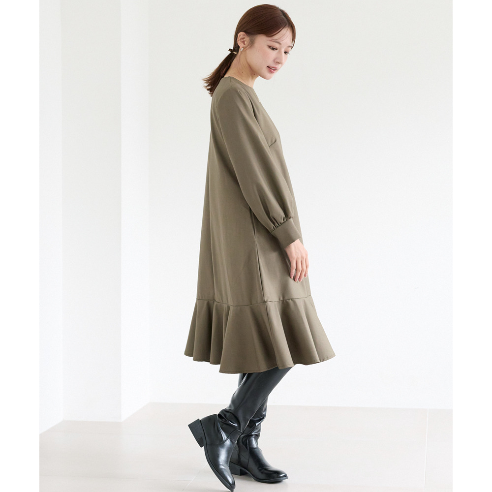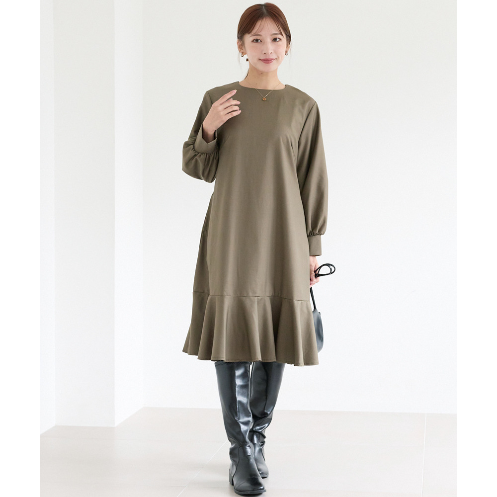 ヒップをさりげなくカバーする丈感と、程よいフレアでボリュームを抑えた上品なデザイン。