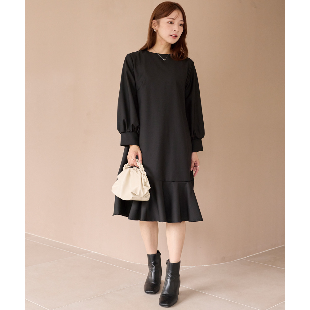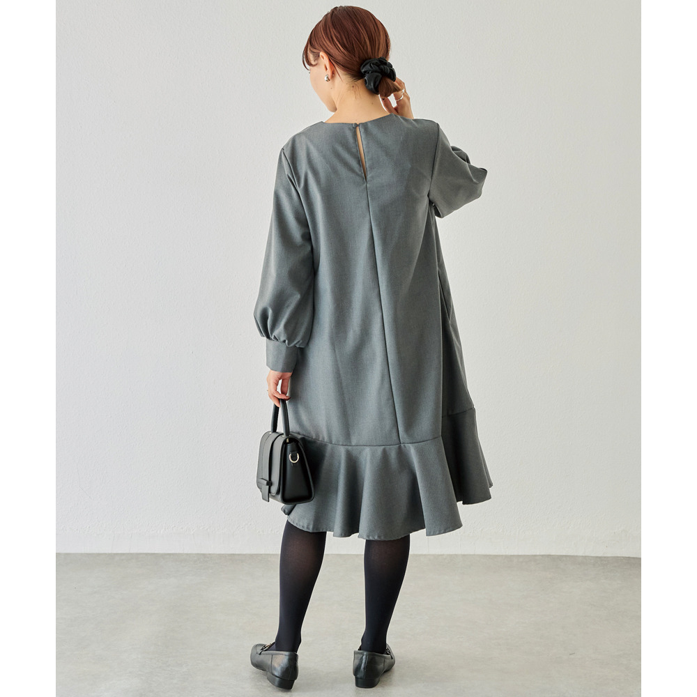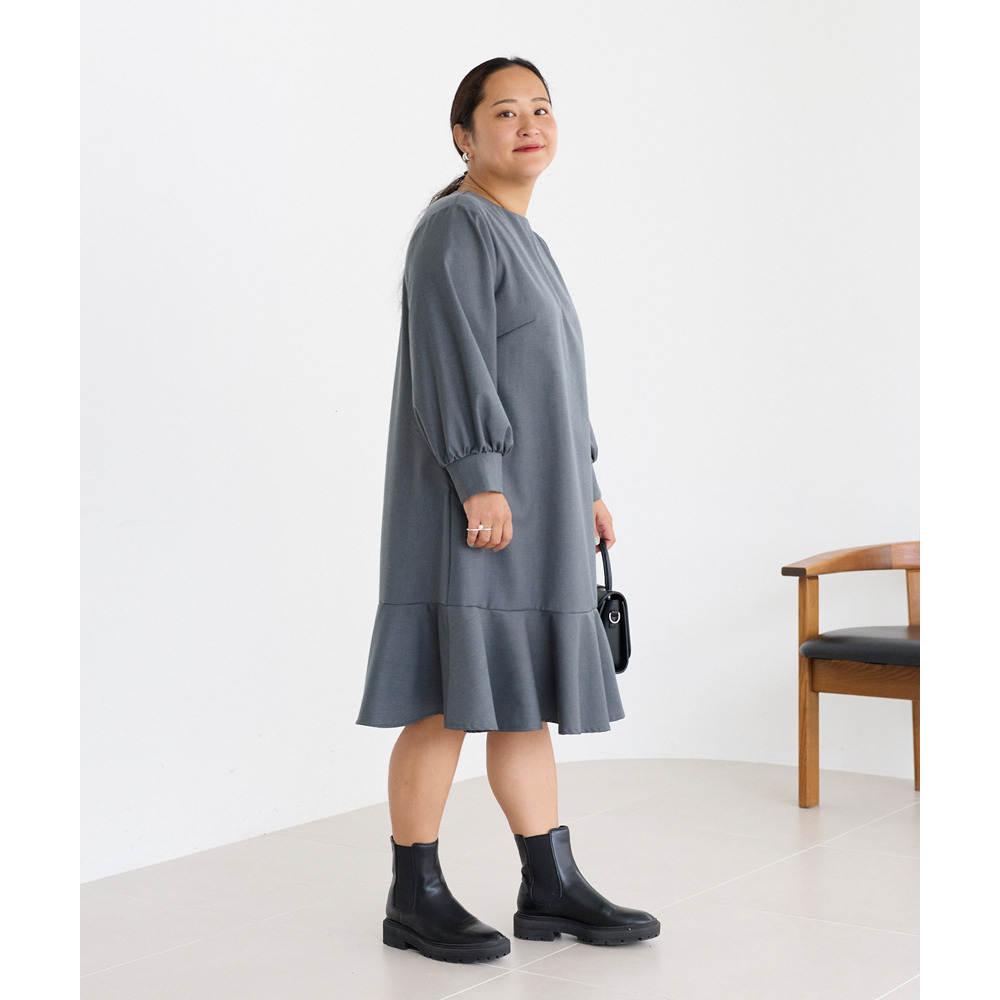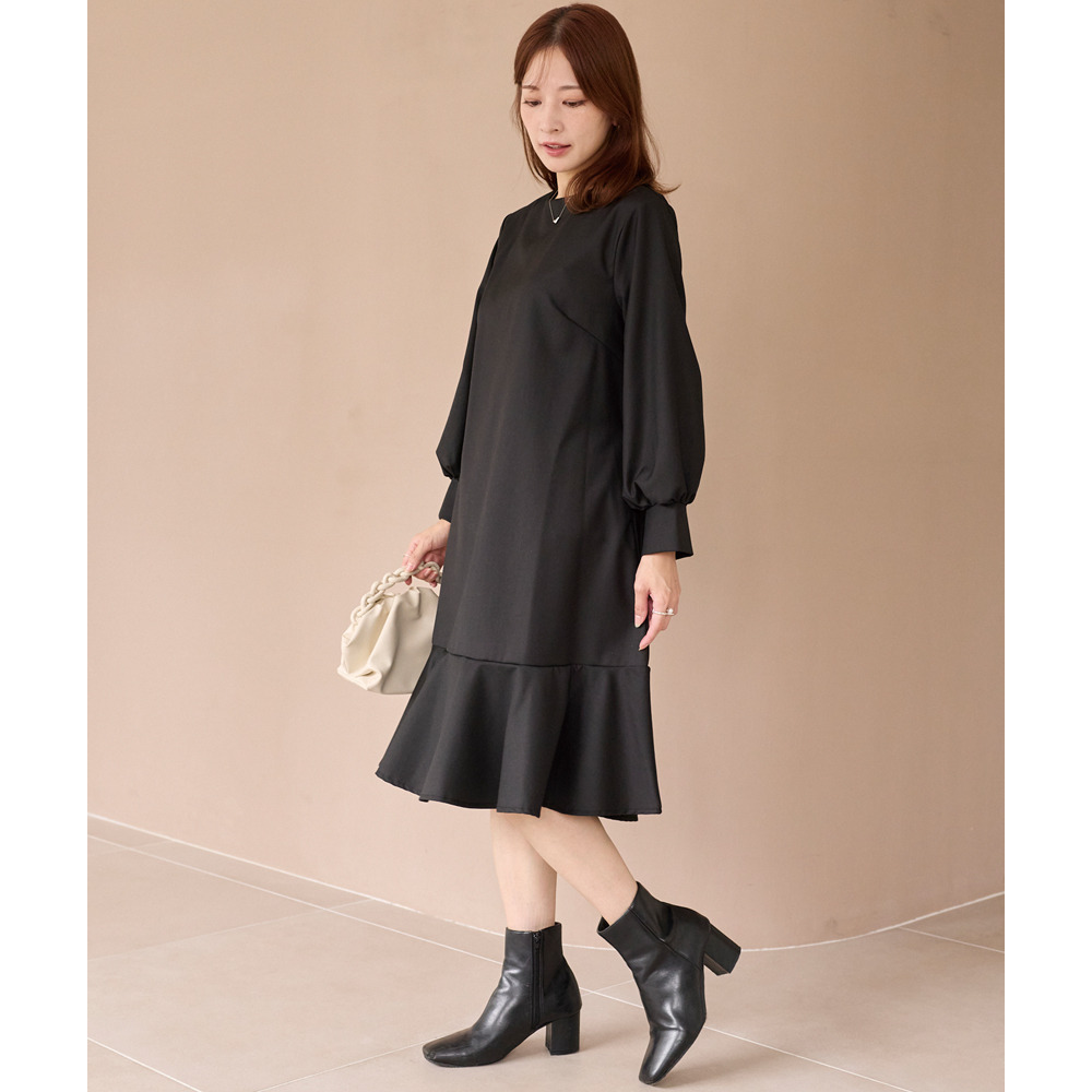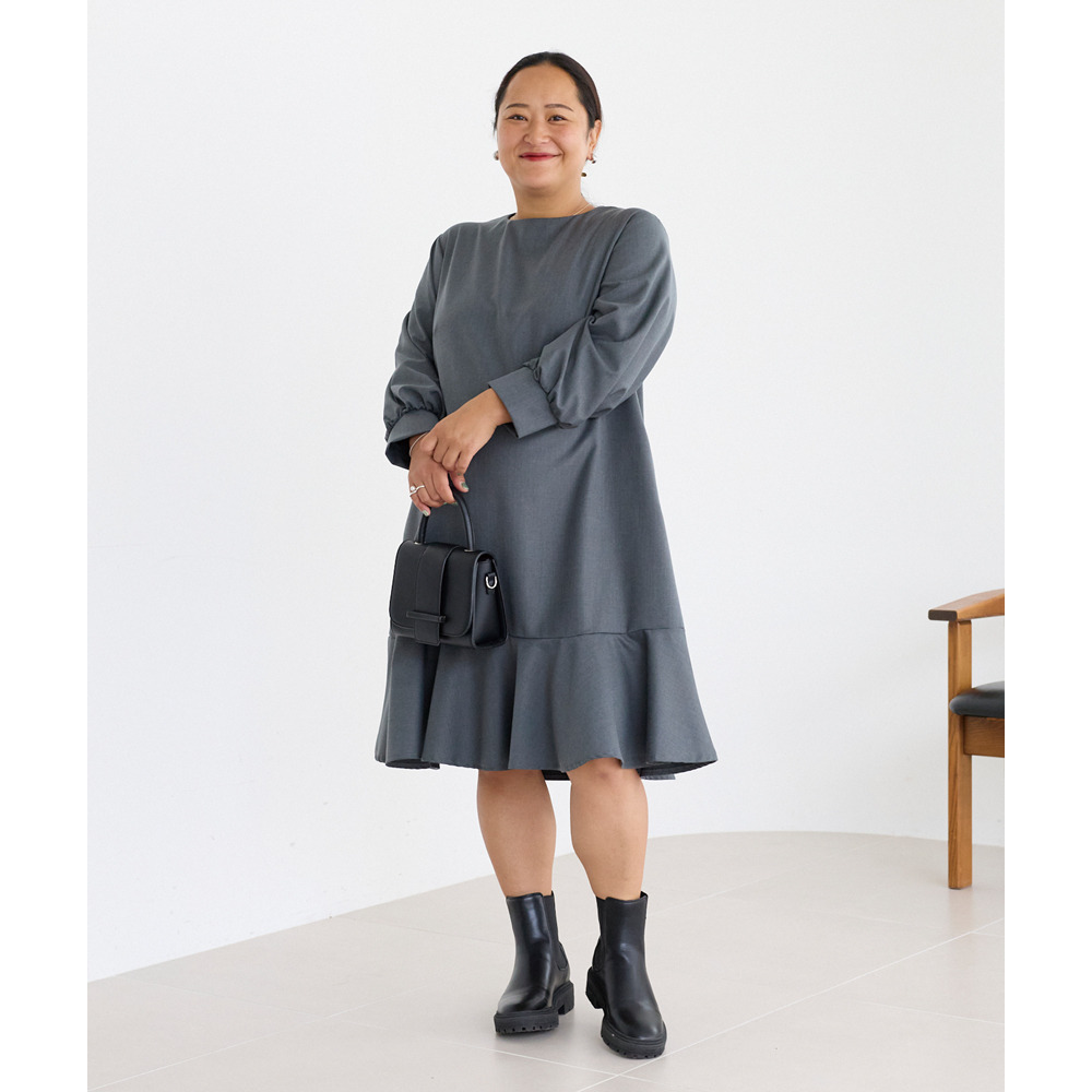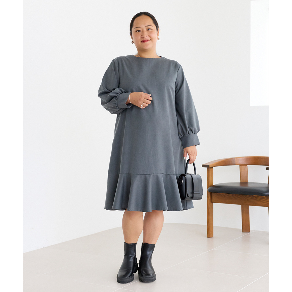 ヒップをさりげなくカバーする丈感と、程よいフレアでボリュームを抑えた上品なデザイン。