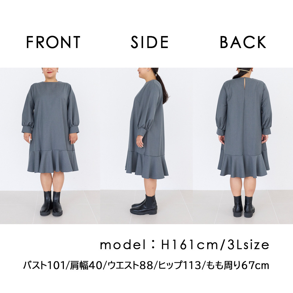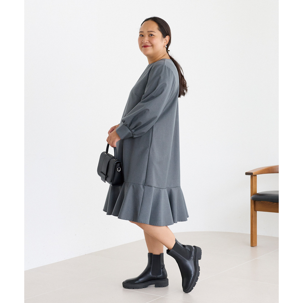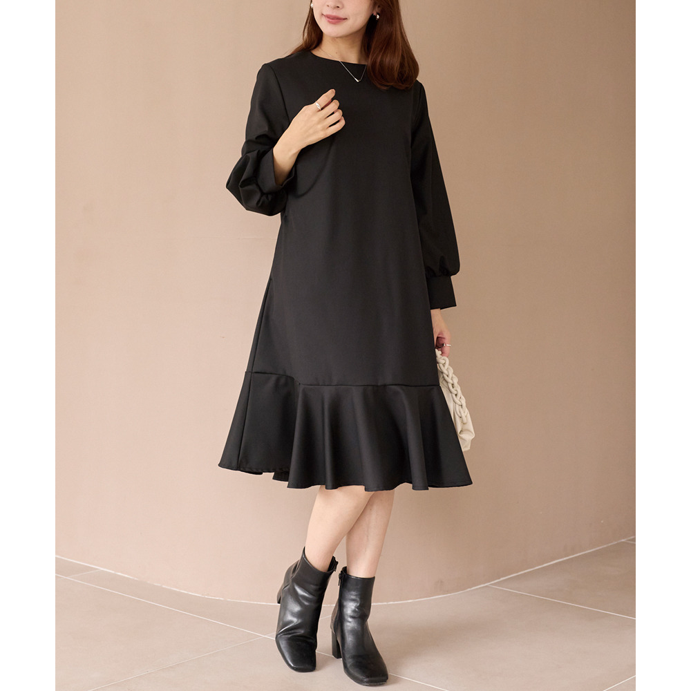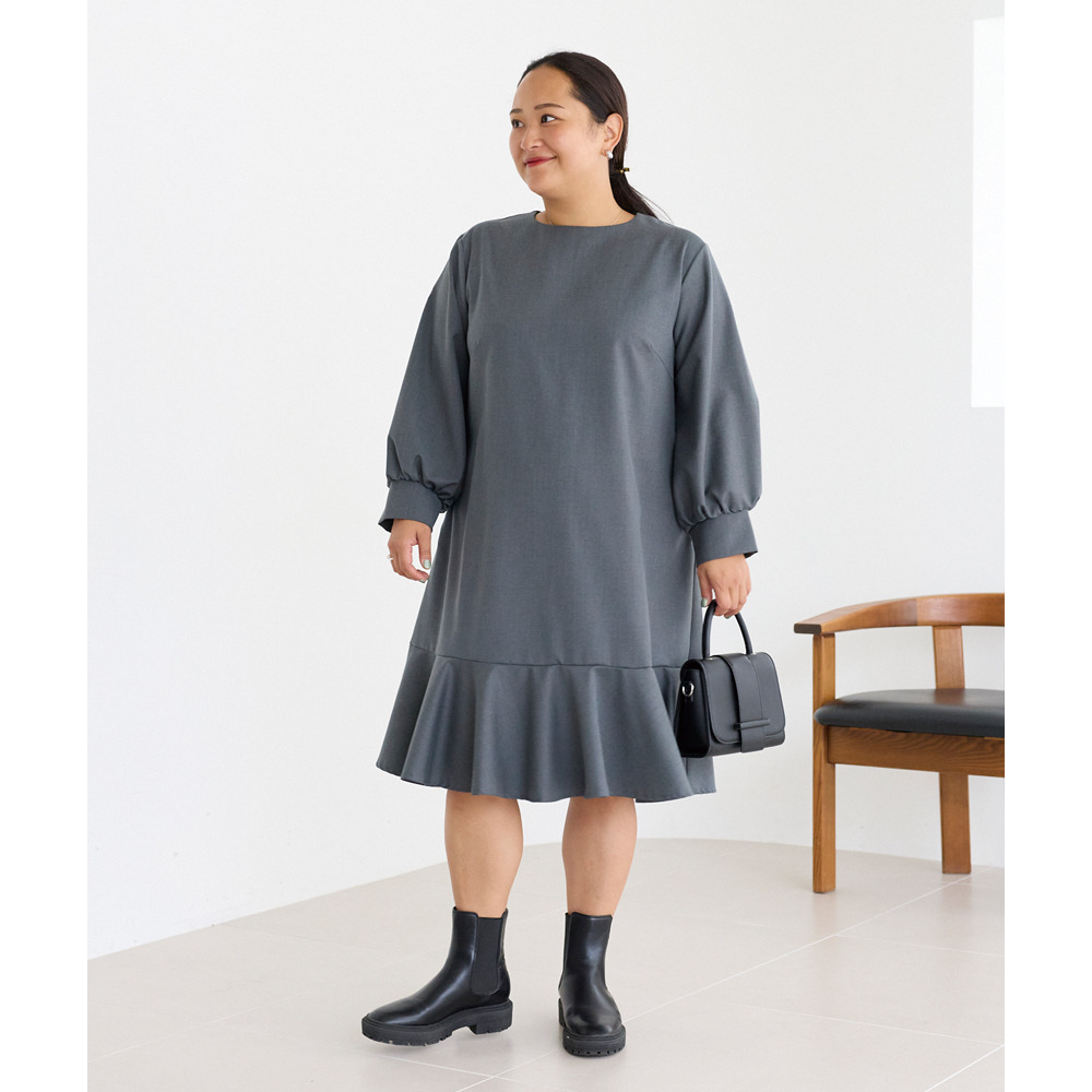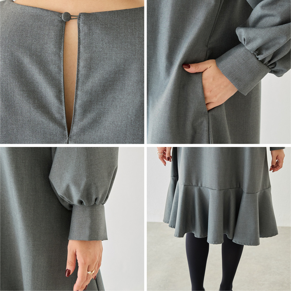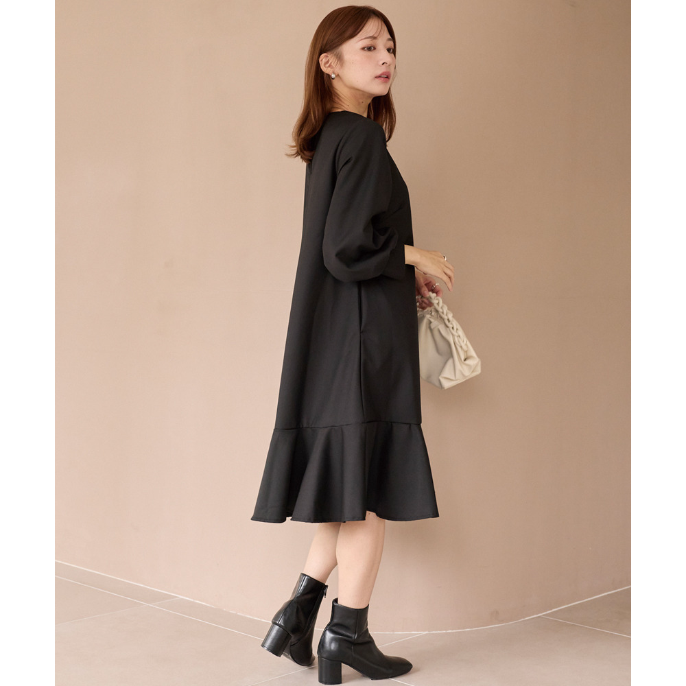 ヒップをさりげなくカバーする丈感と、程よいフレアでボリュームを抑えた上品なデザイン。