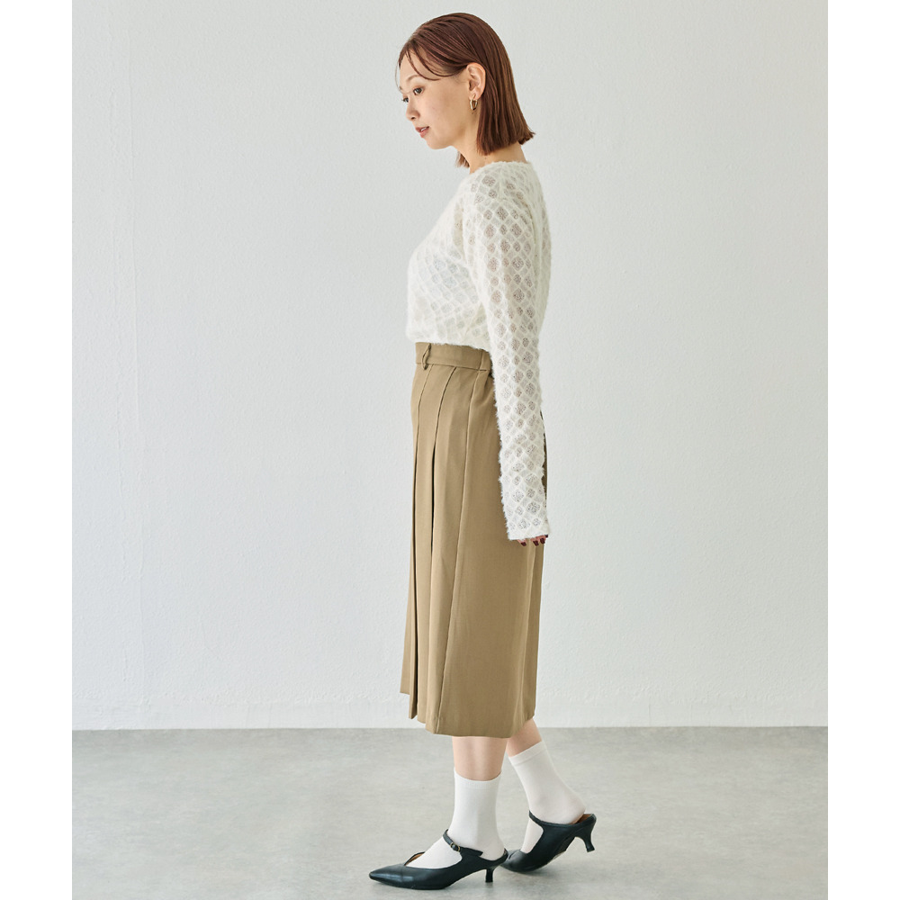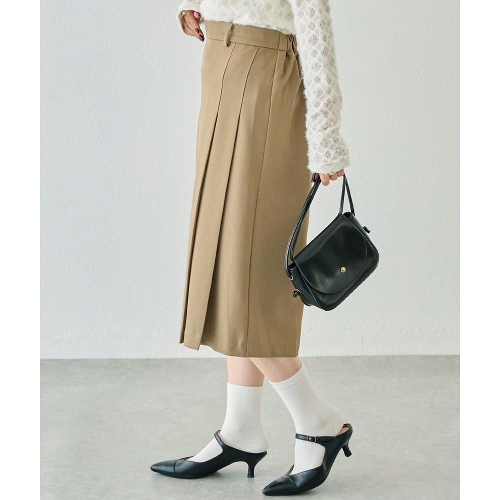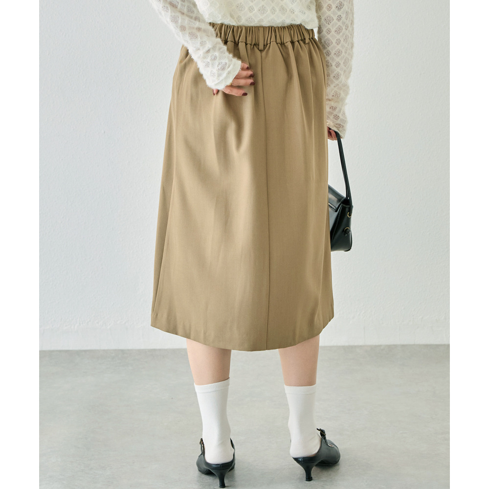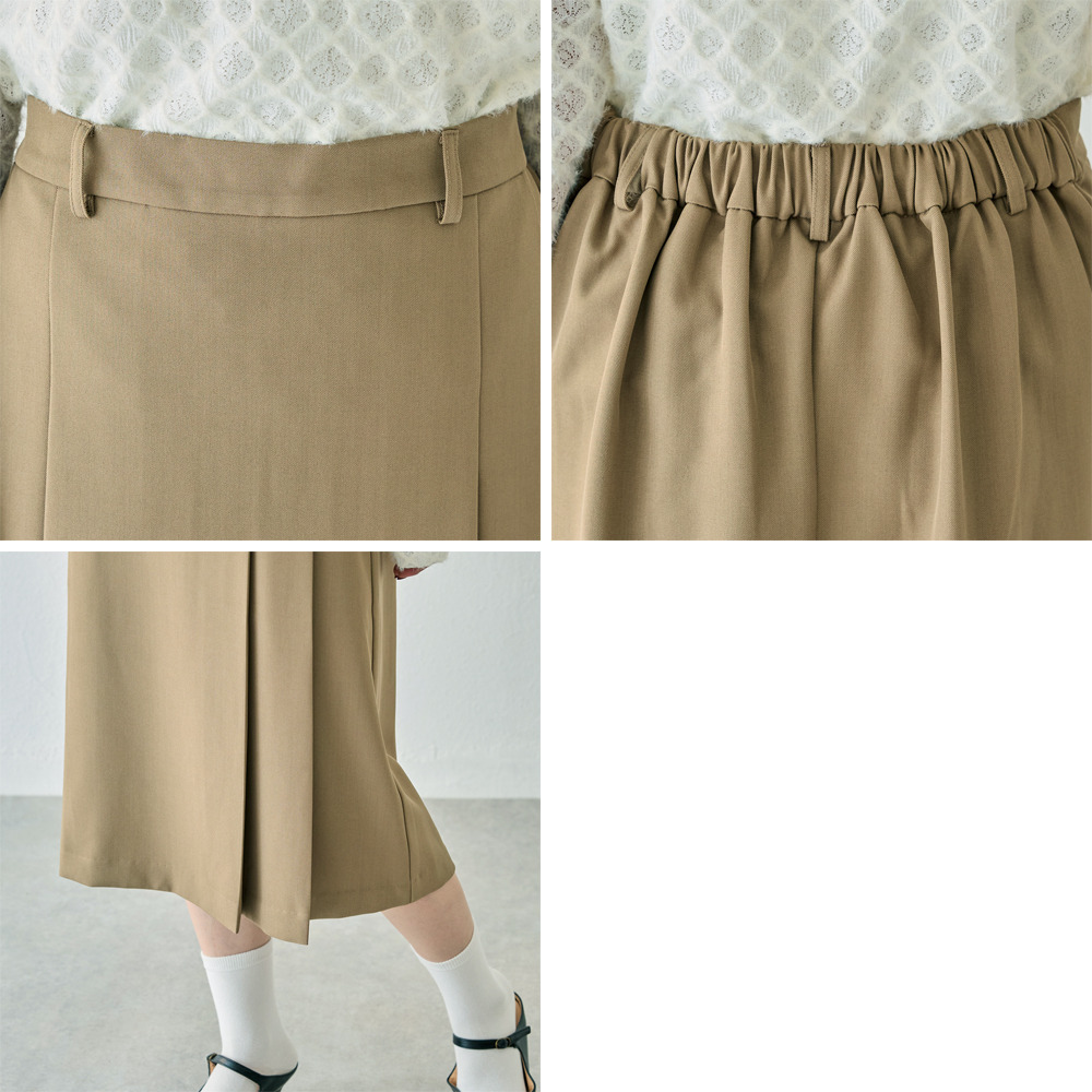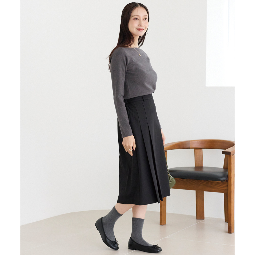 トップスをインするとウエストまわりがすっきりまとまり、スタイルアップ効果も◎