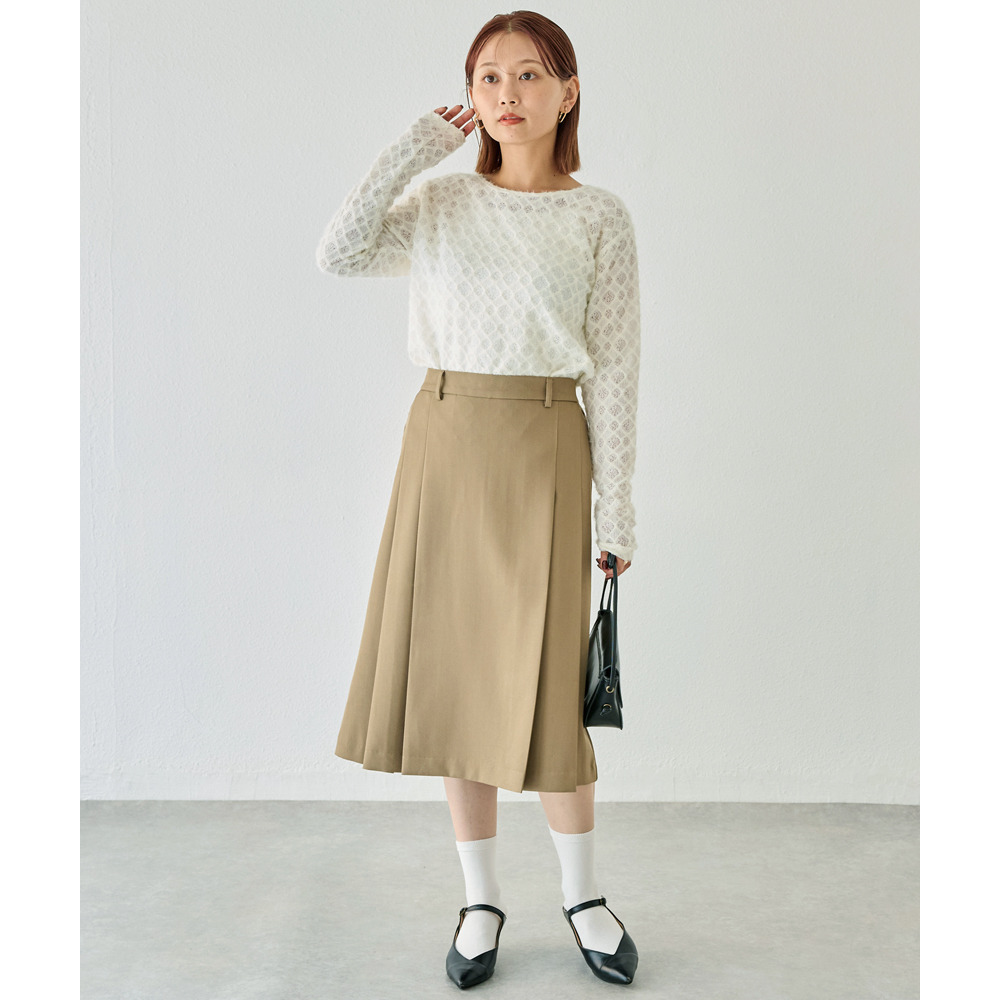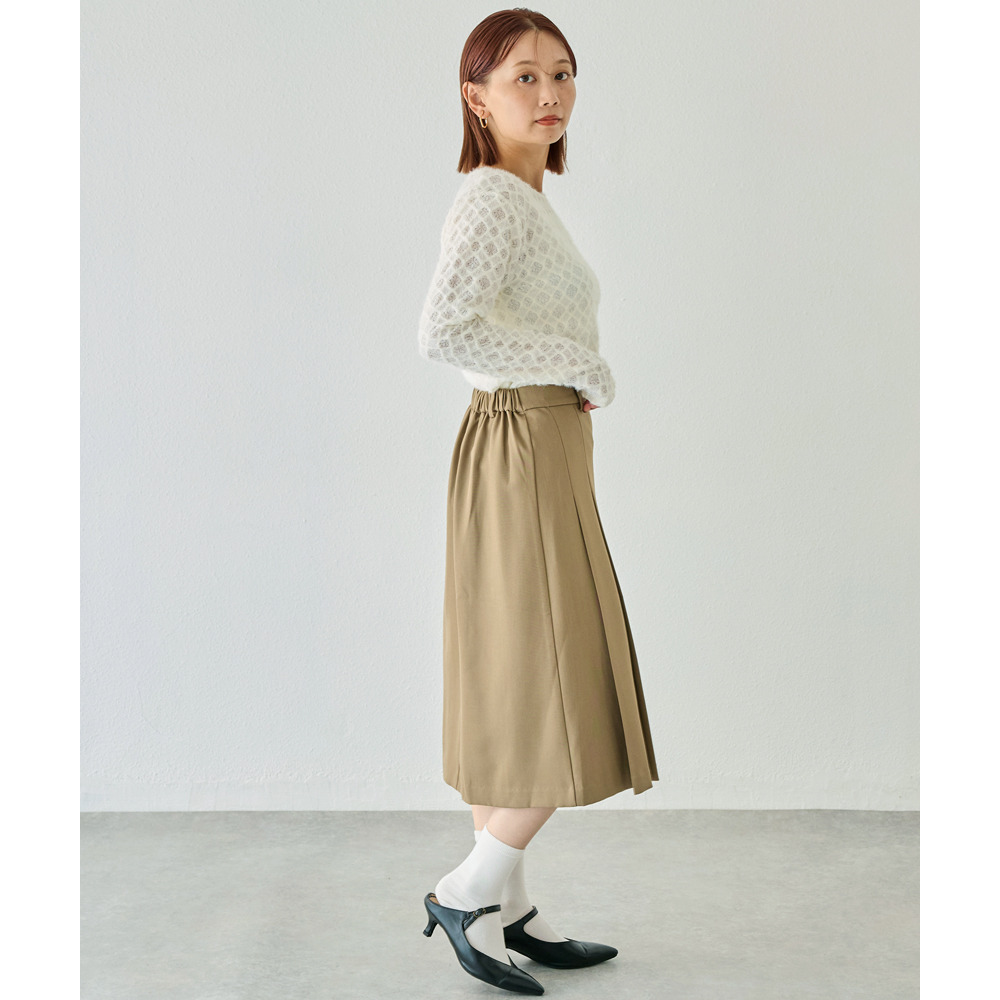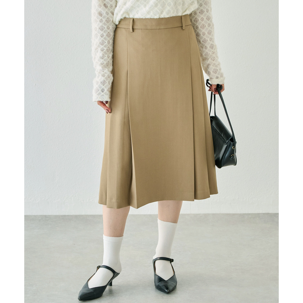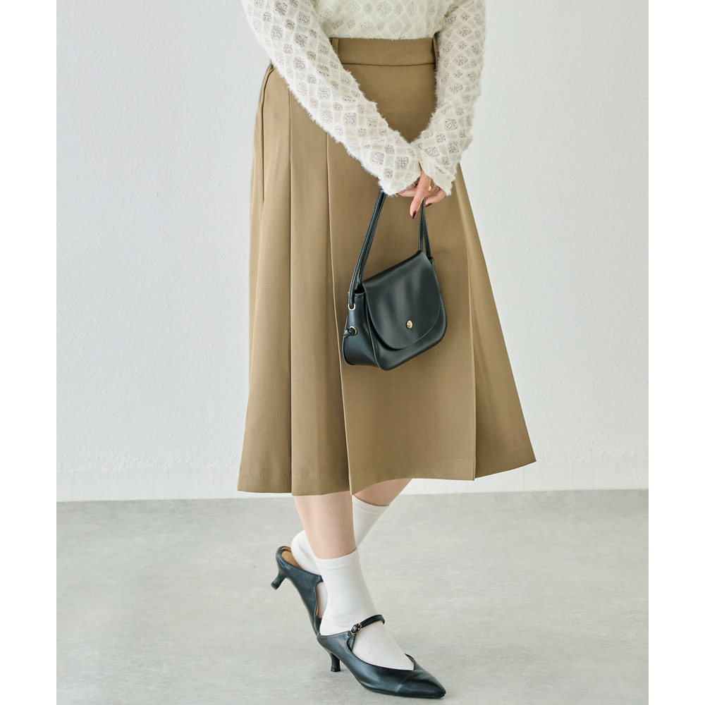 トップスをインするとウエストまわりがすっきりまとまり、スタイルアップ効果も◎