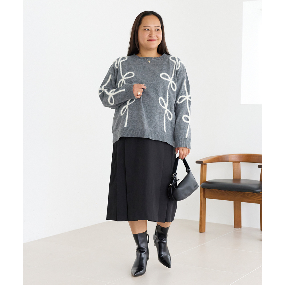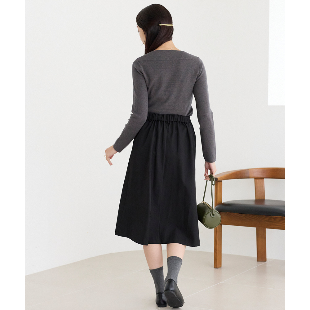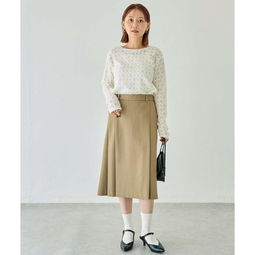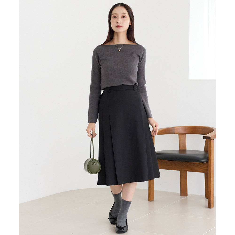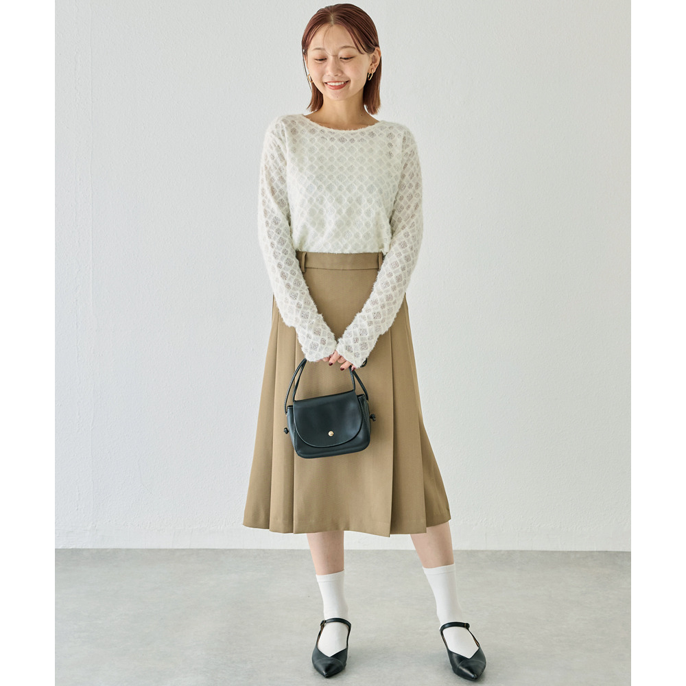 トップスをインするとウエストまわりがすっきりまとまり、スタイルアップ効果も◎