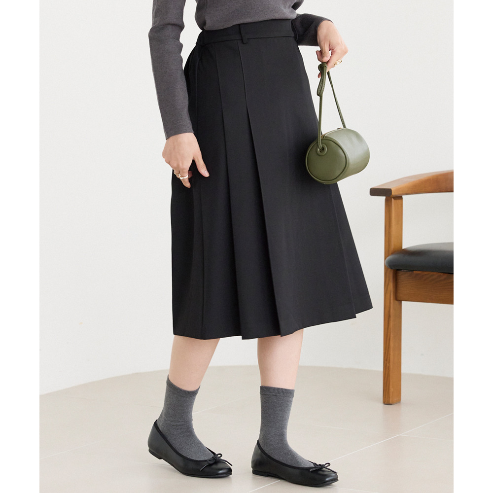 ミドル丈のボトムなので、靴下で足元にアクセントをつけたり、ロングブーツでカジュアルダウンも楽しめる万能アイテムです。