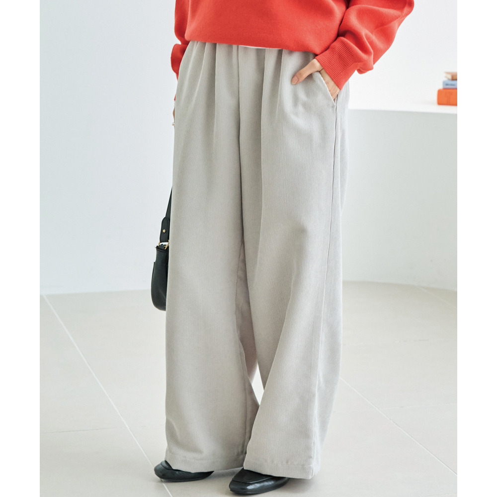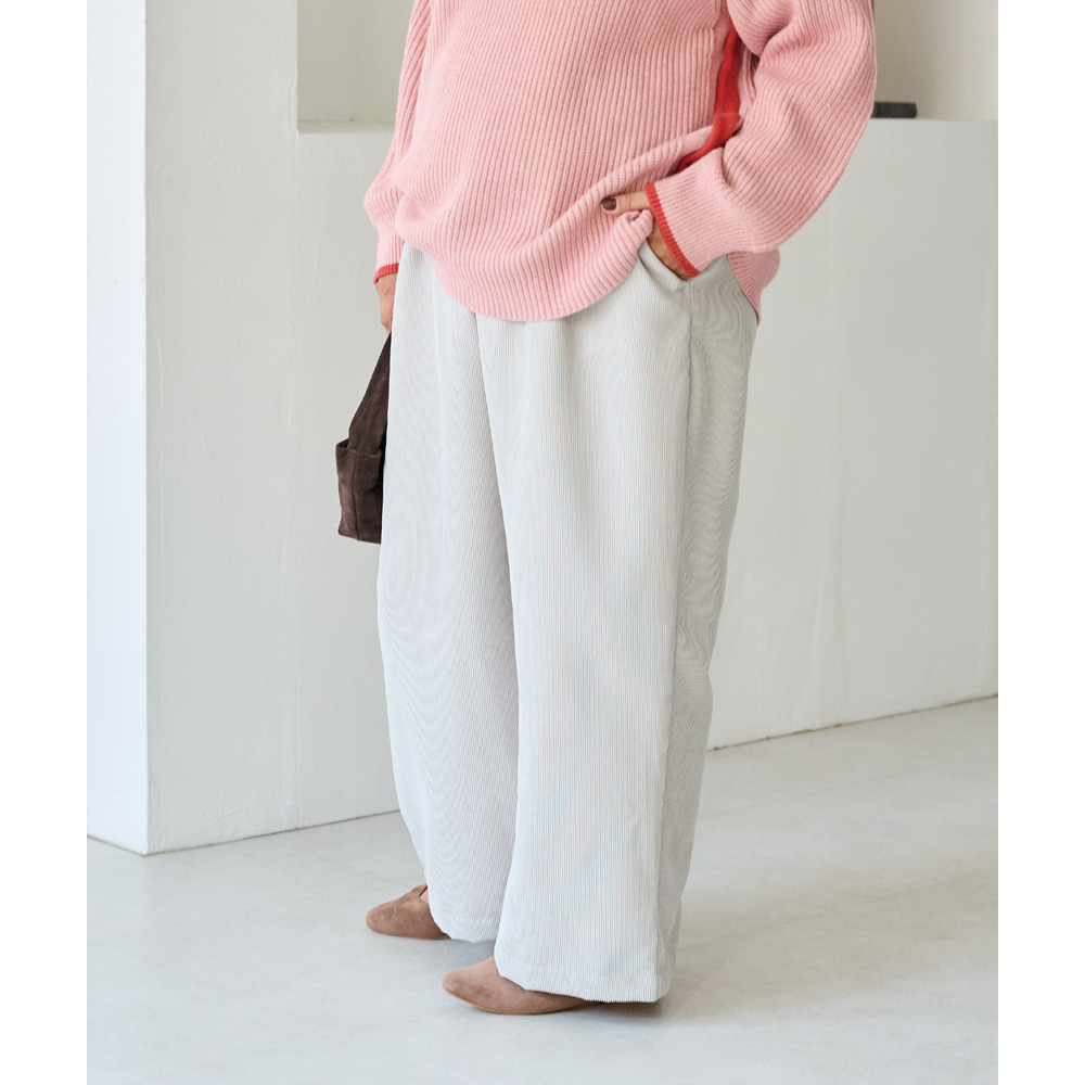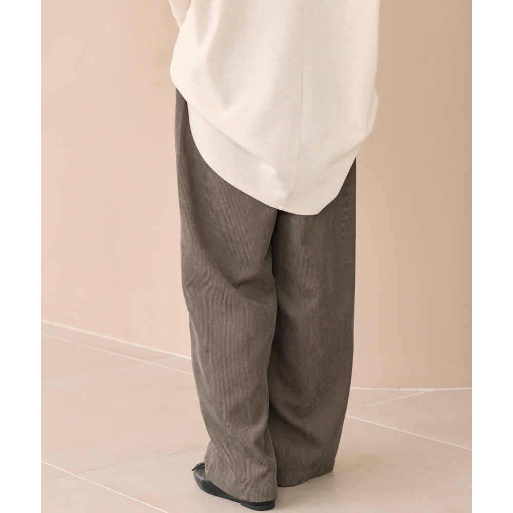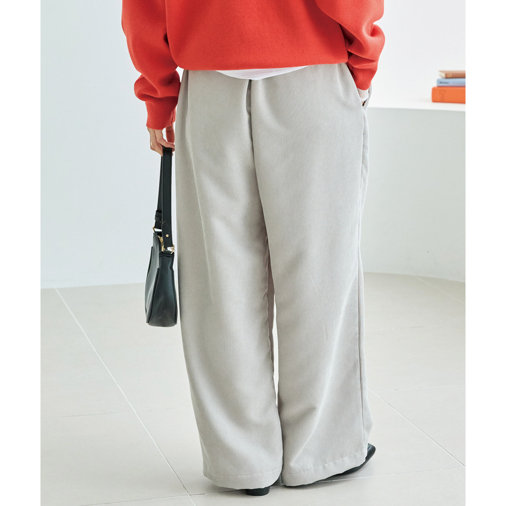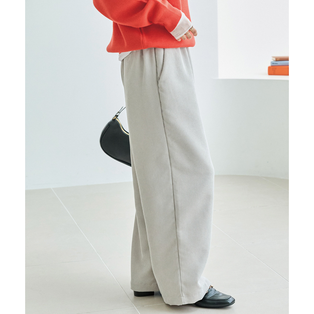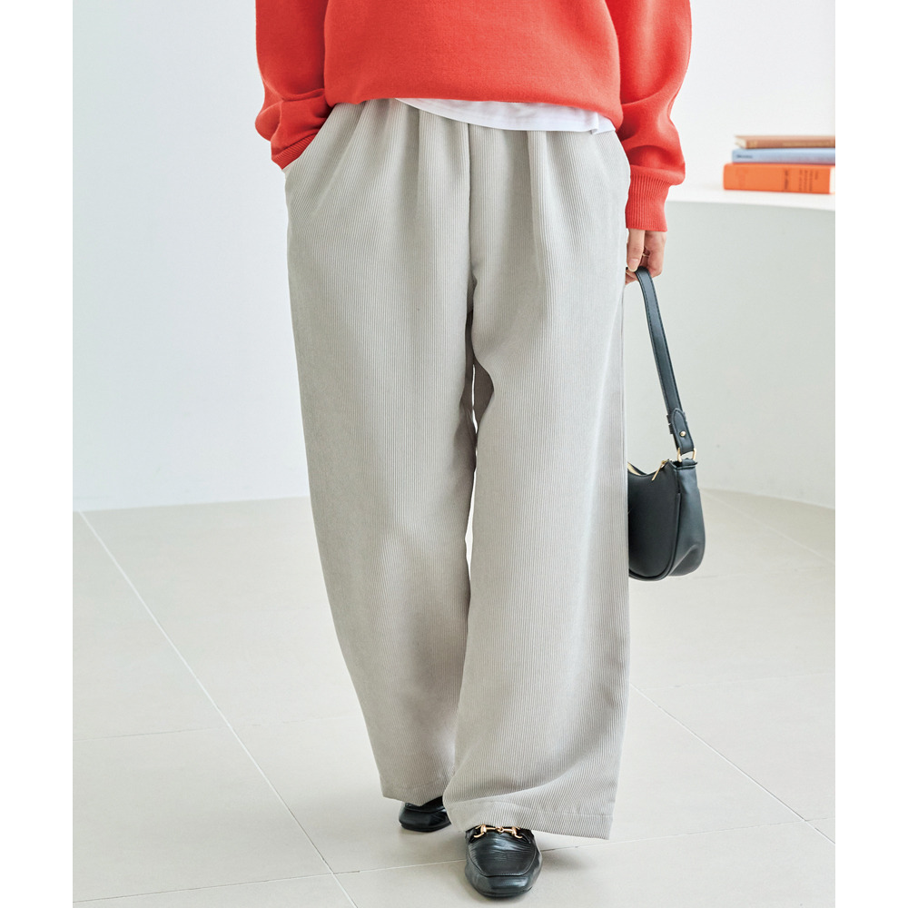 細かいリブが上品な印象を与えるコーデュロイ素材を使用した、シーズンムードたっぷりのイージーパンツ。