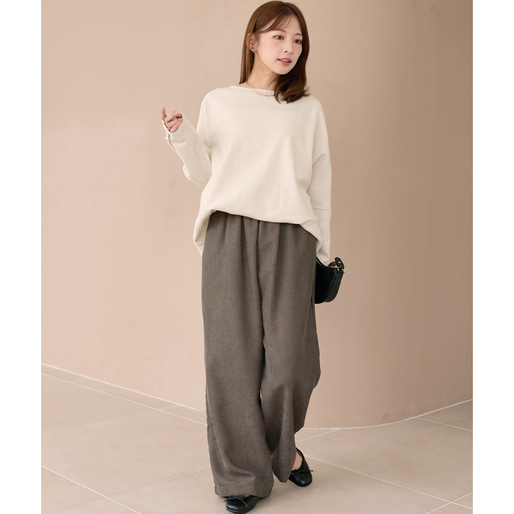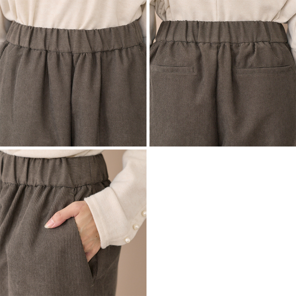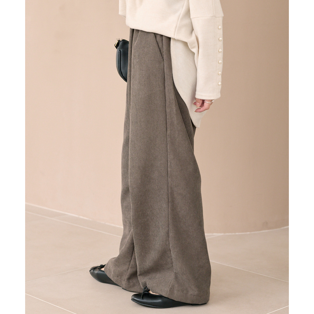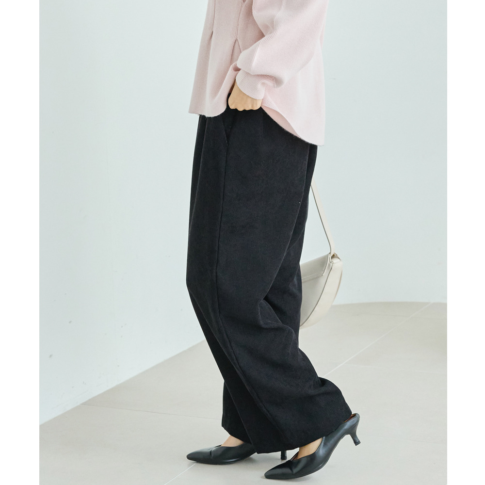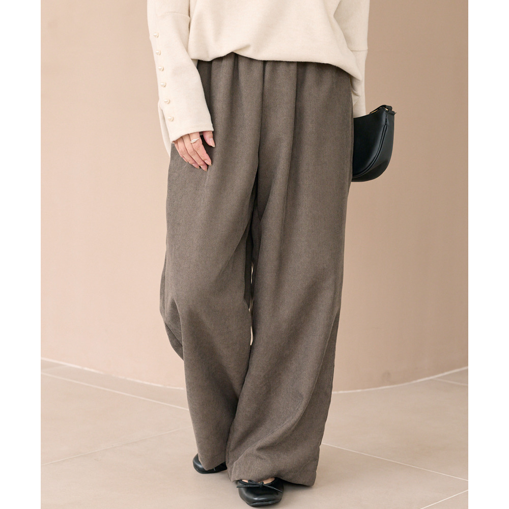 細かいリブが上品な印象を与えるコーデュロイ素材を使用した、シーズンムードたっぷりのイージーパンツ。