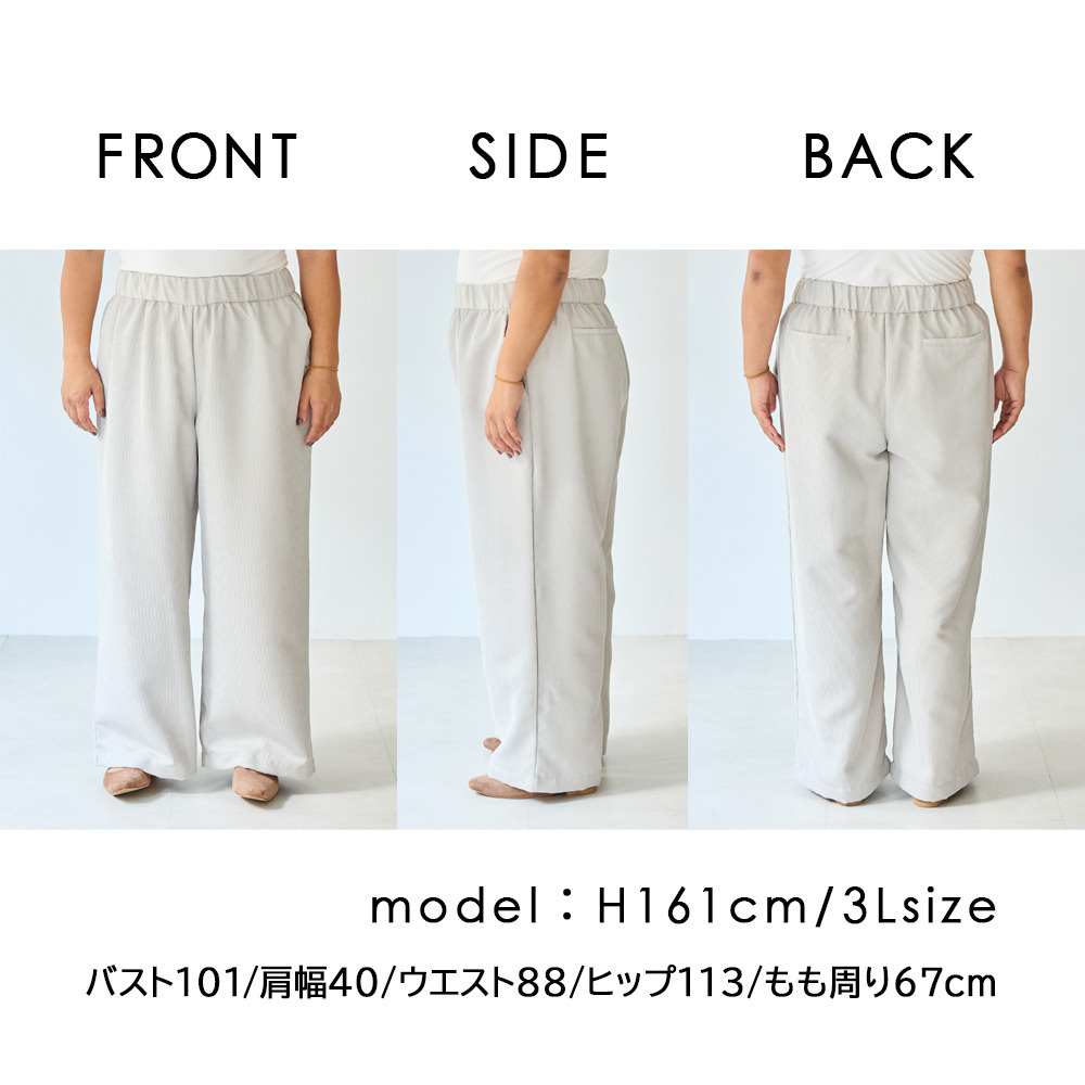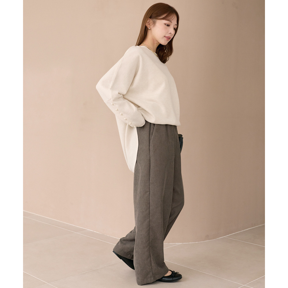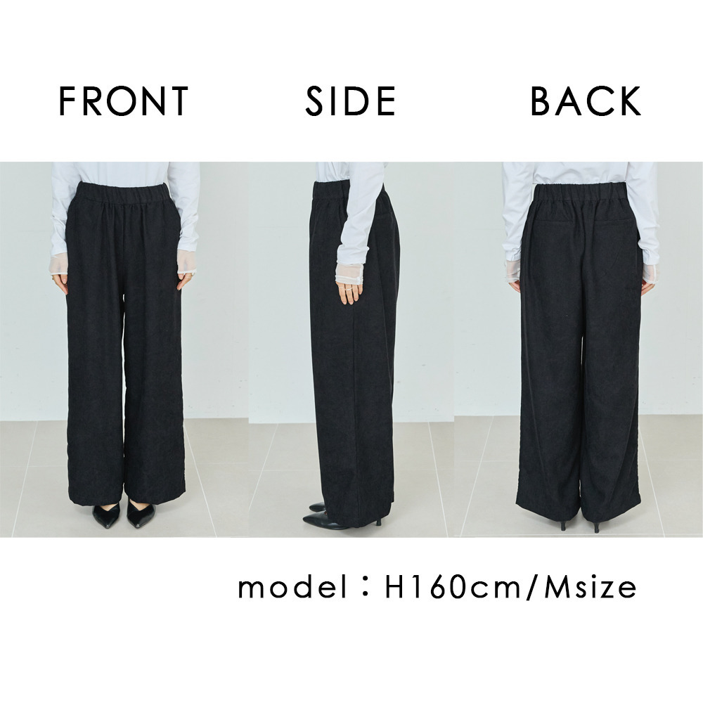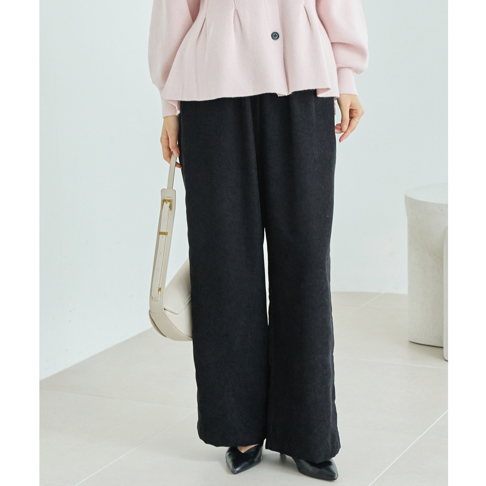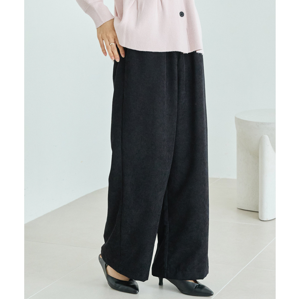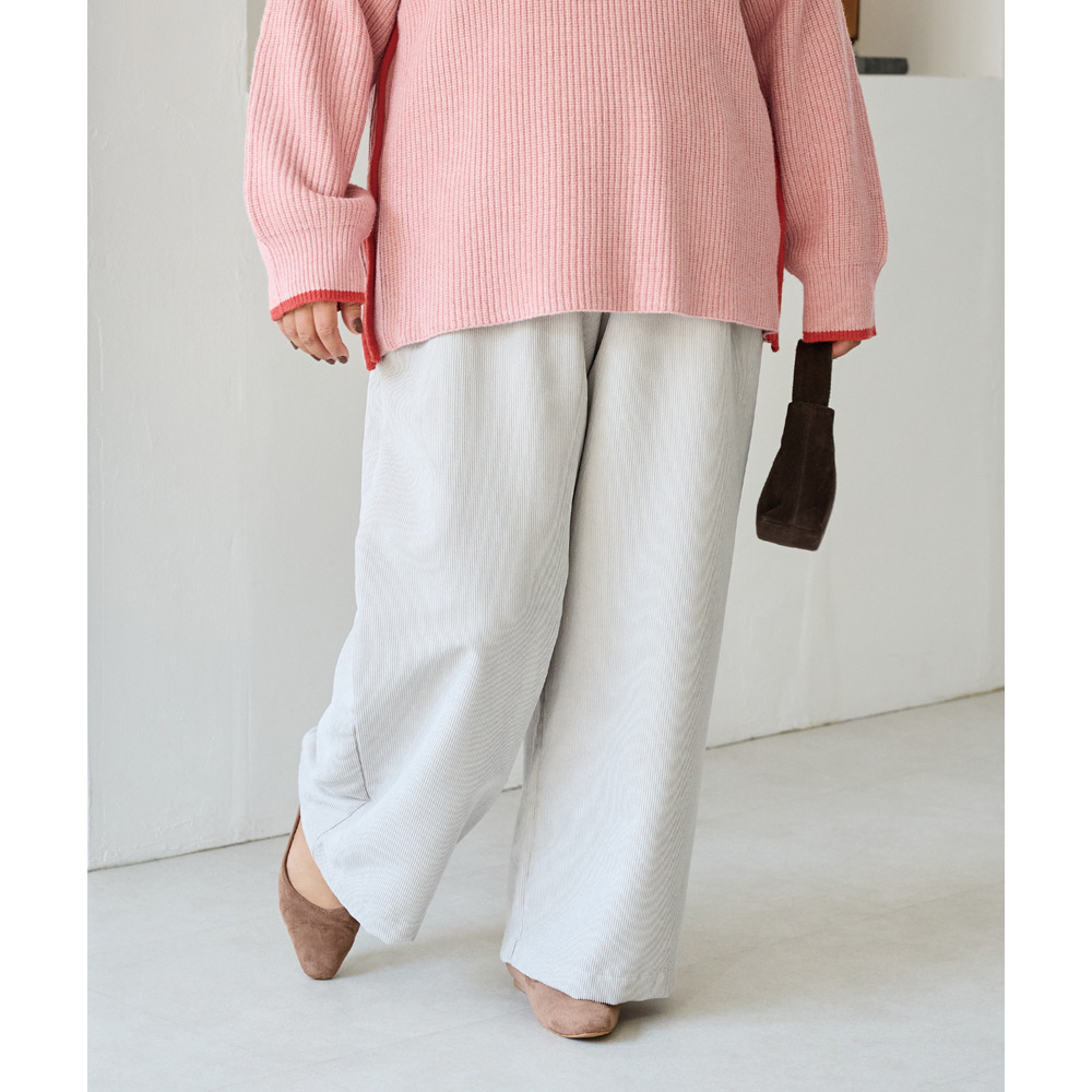 細かいリブが上品な印象を与えるコーデュロイ素材を使用した、シーズンムードたっぷりのイージーパンツ。