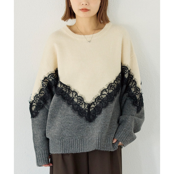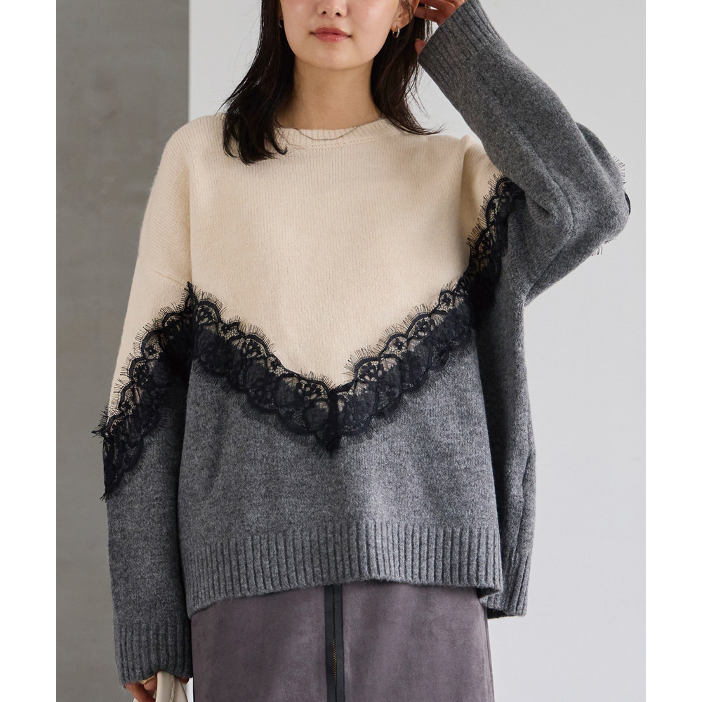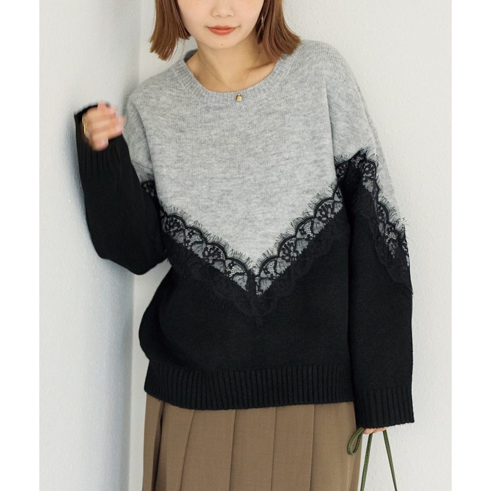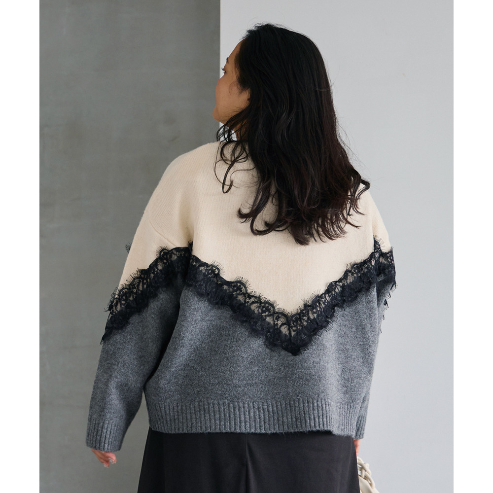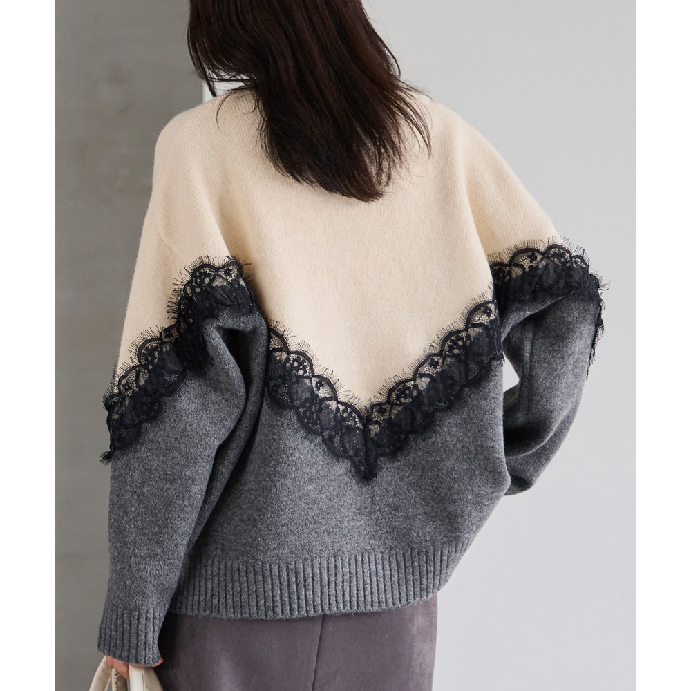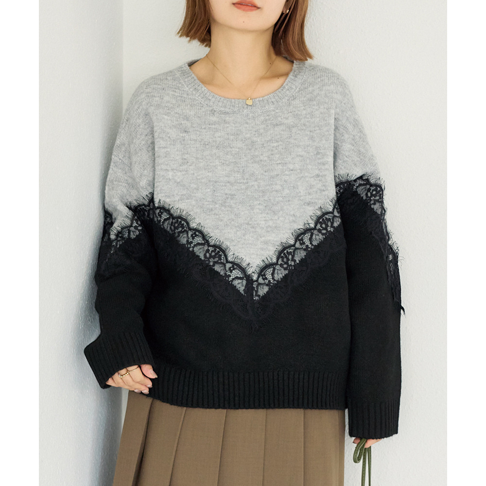 • 【洗える】レース切替バイカラーニットプルオーバー21