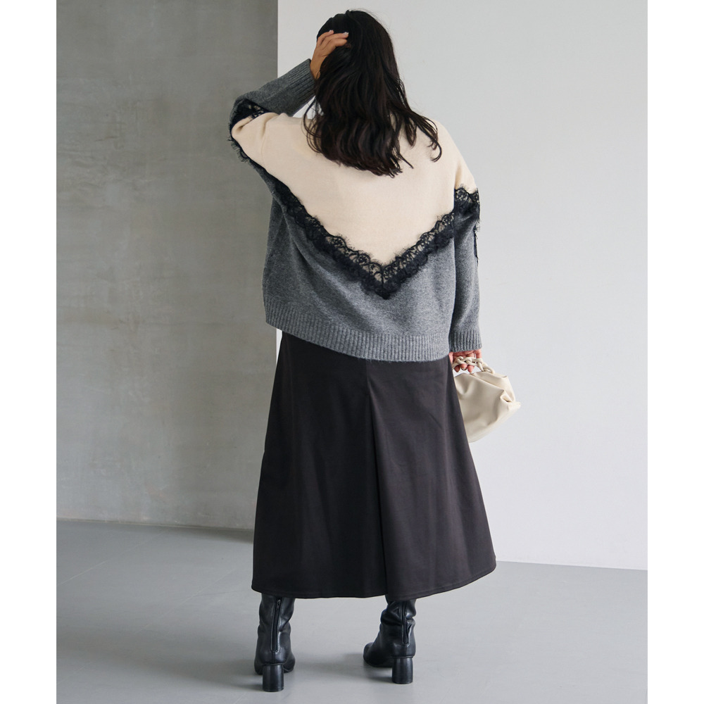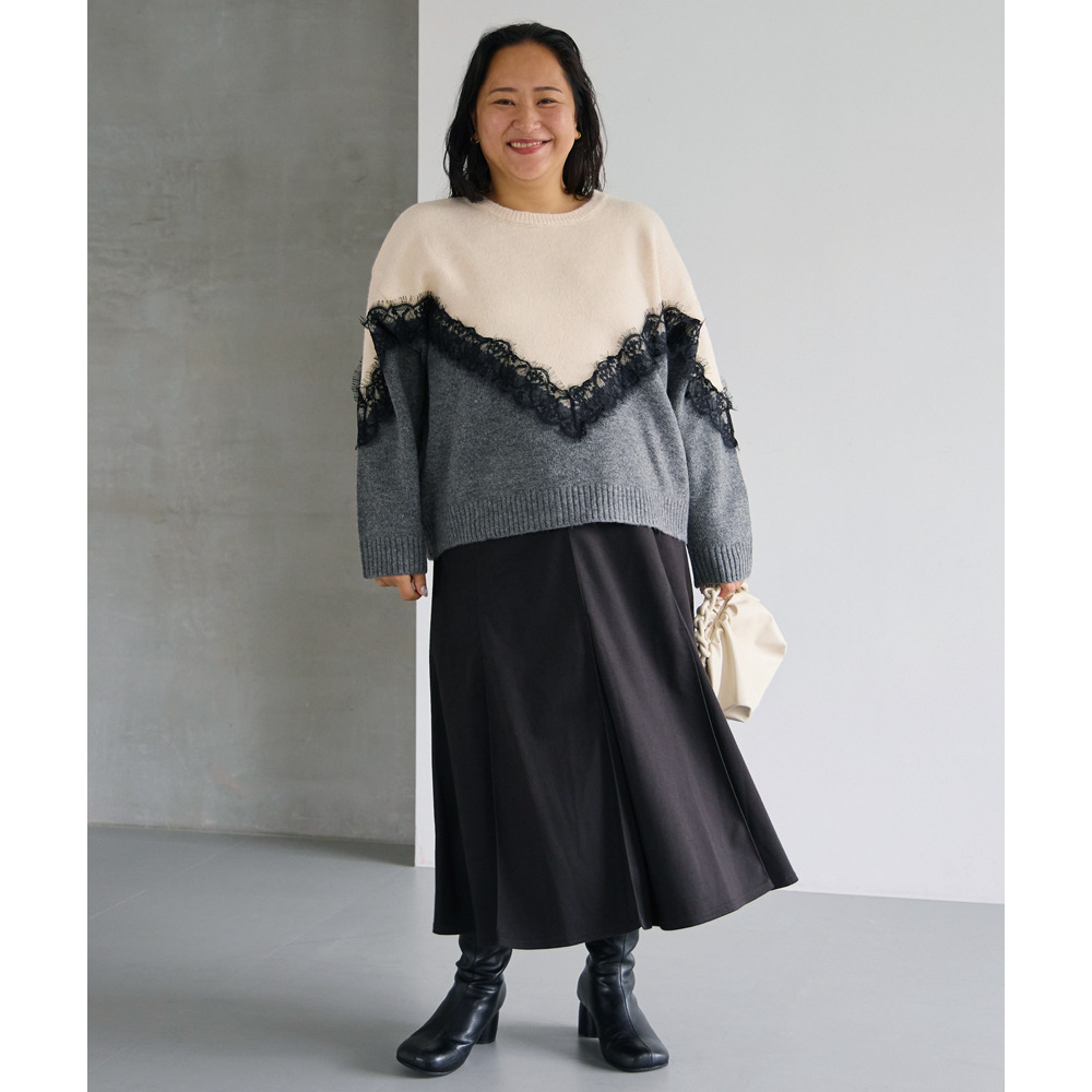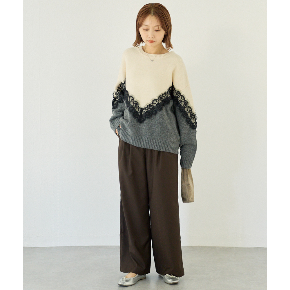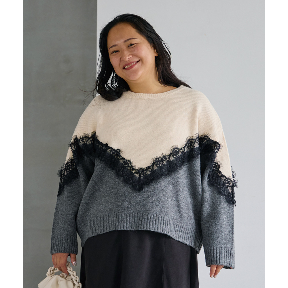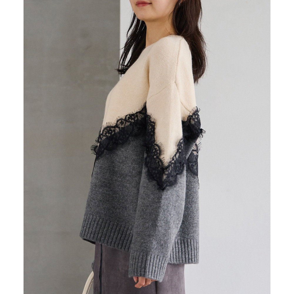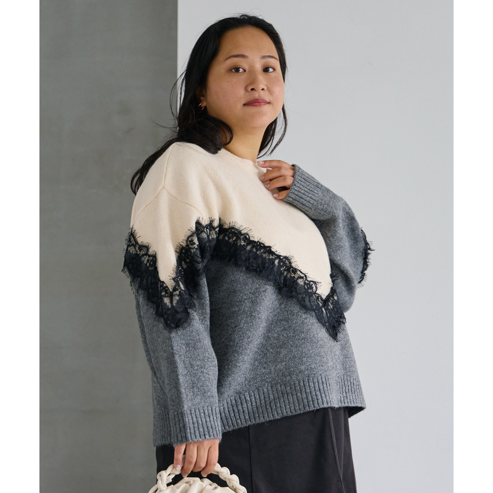 • 【洗える】レース切替バイカラーニットプルオーバー21
