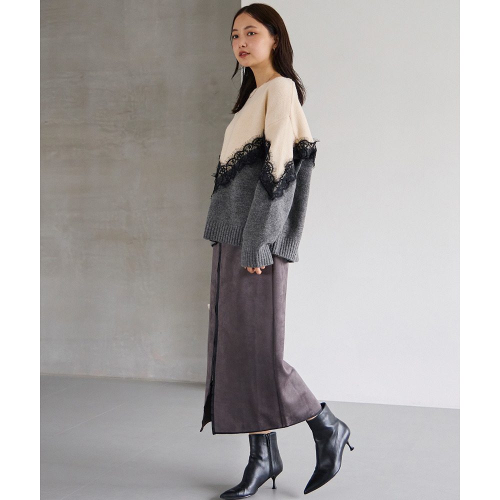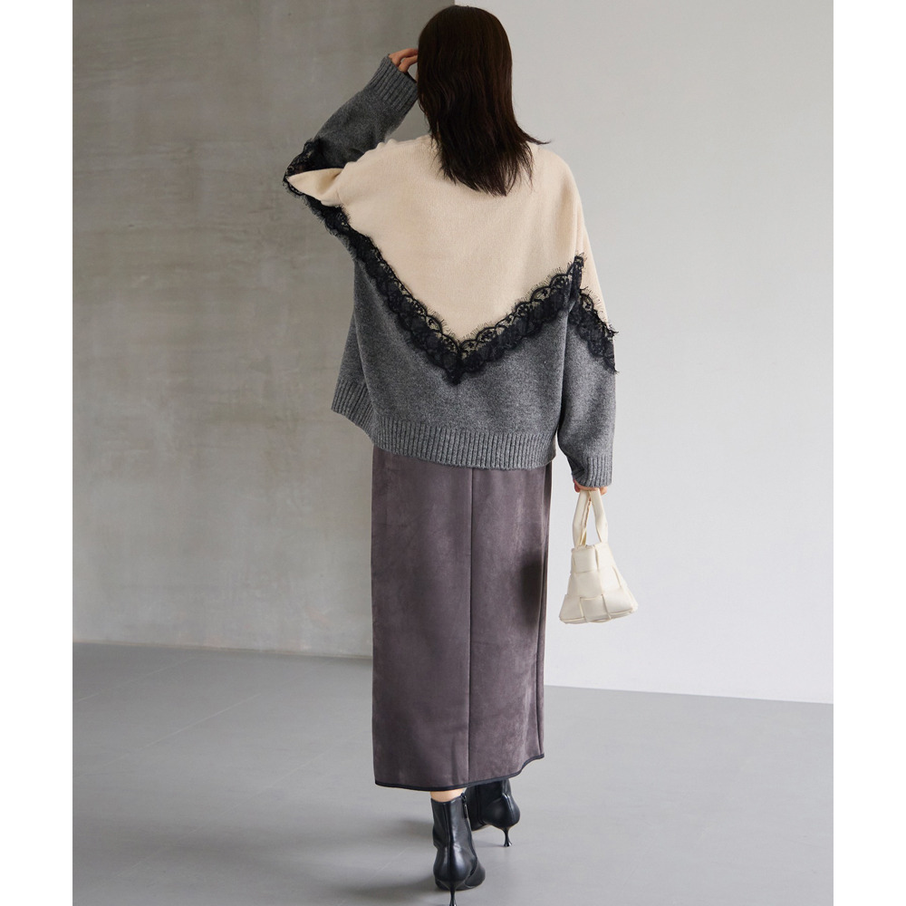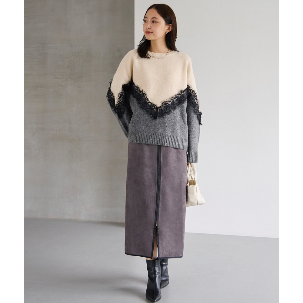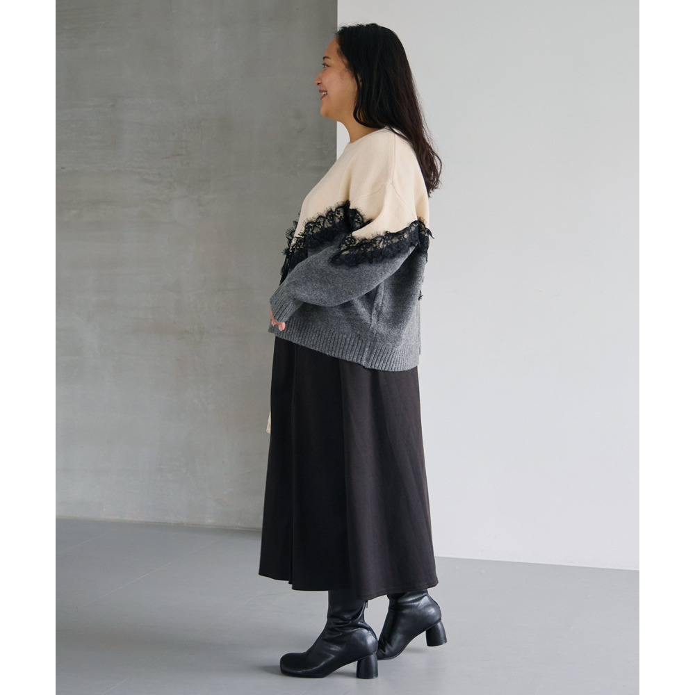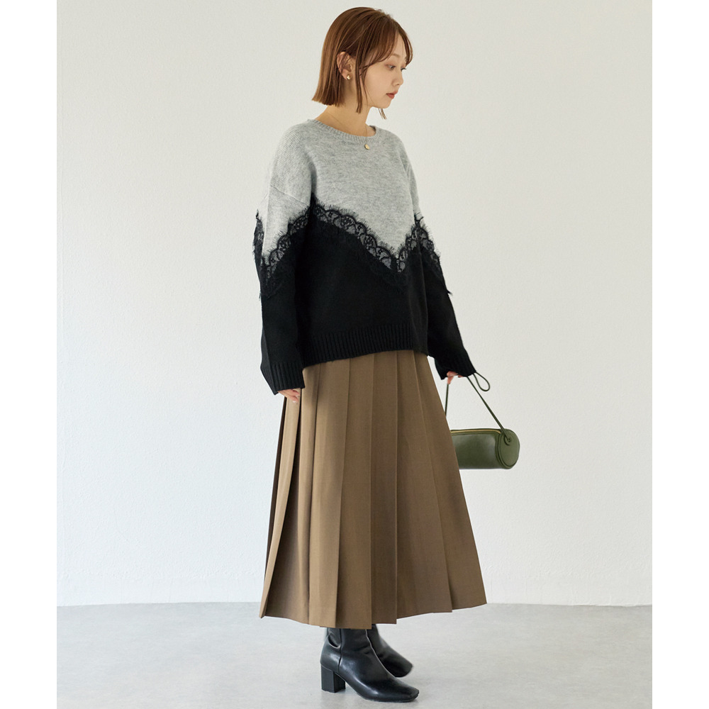 • 【洗える】レース切替バイカラーニットプルオーバー21