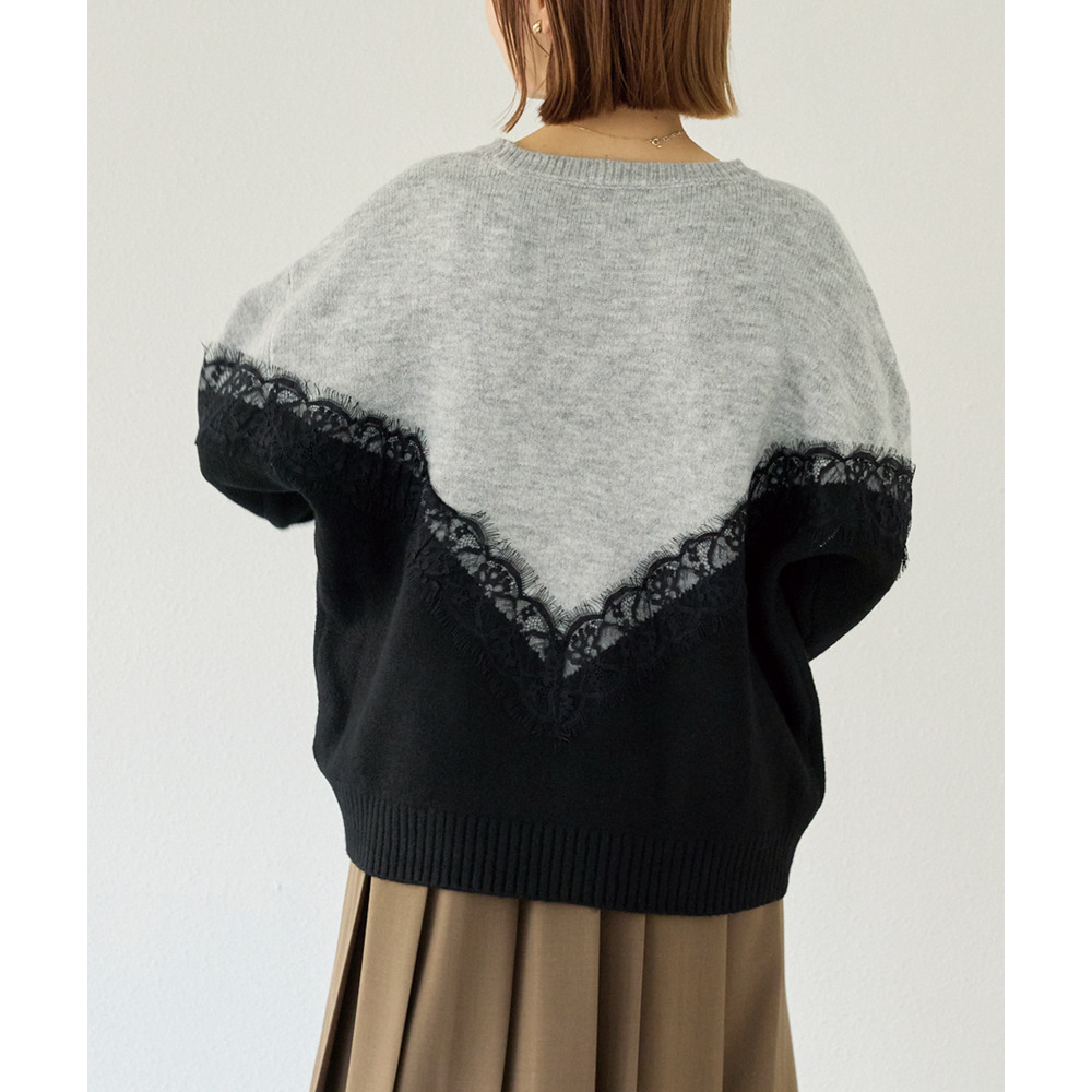 • 【洗える】レース切替バイカラーニットプルオーバー18
