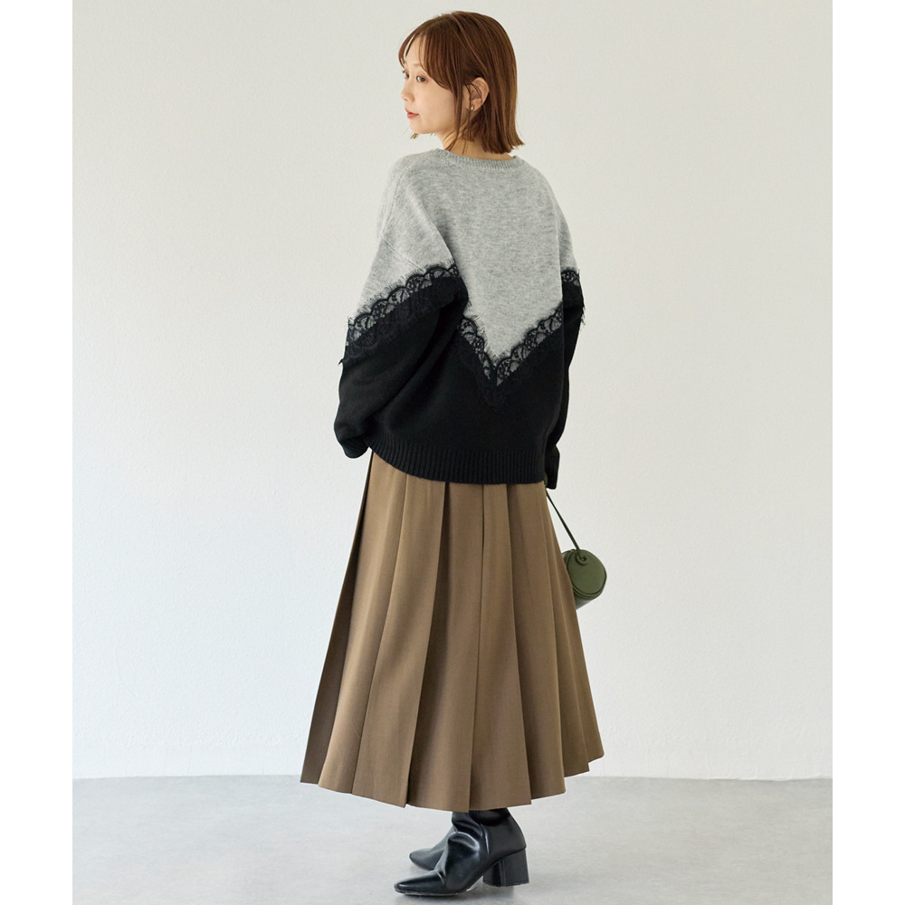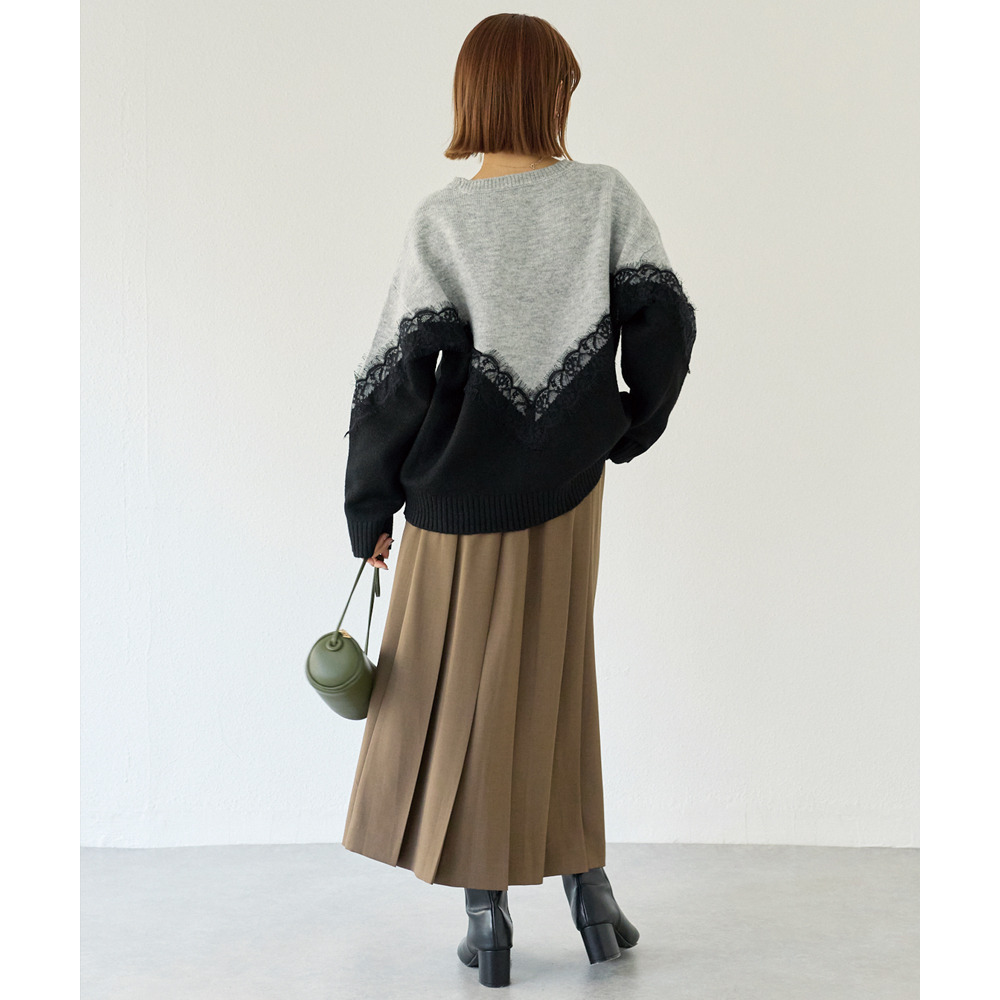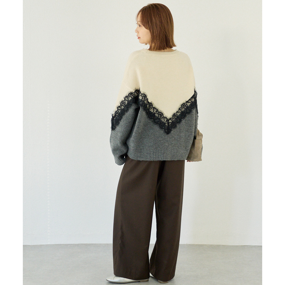• 【洗える】レース切替バイカラーニットプルオーバー23