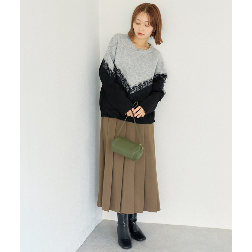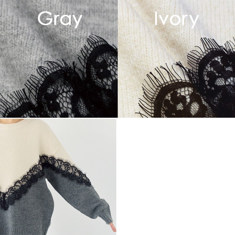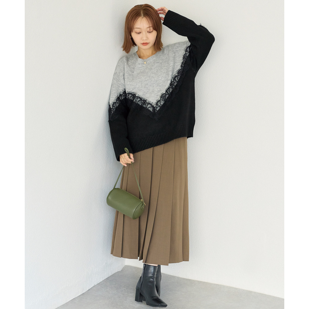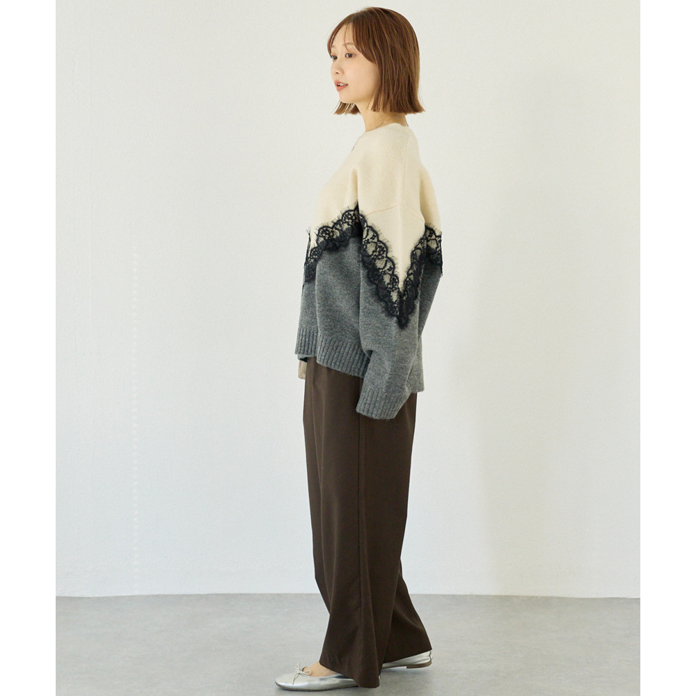• 【洗える】レース切替バイカラーニットプルオーバー23