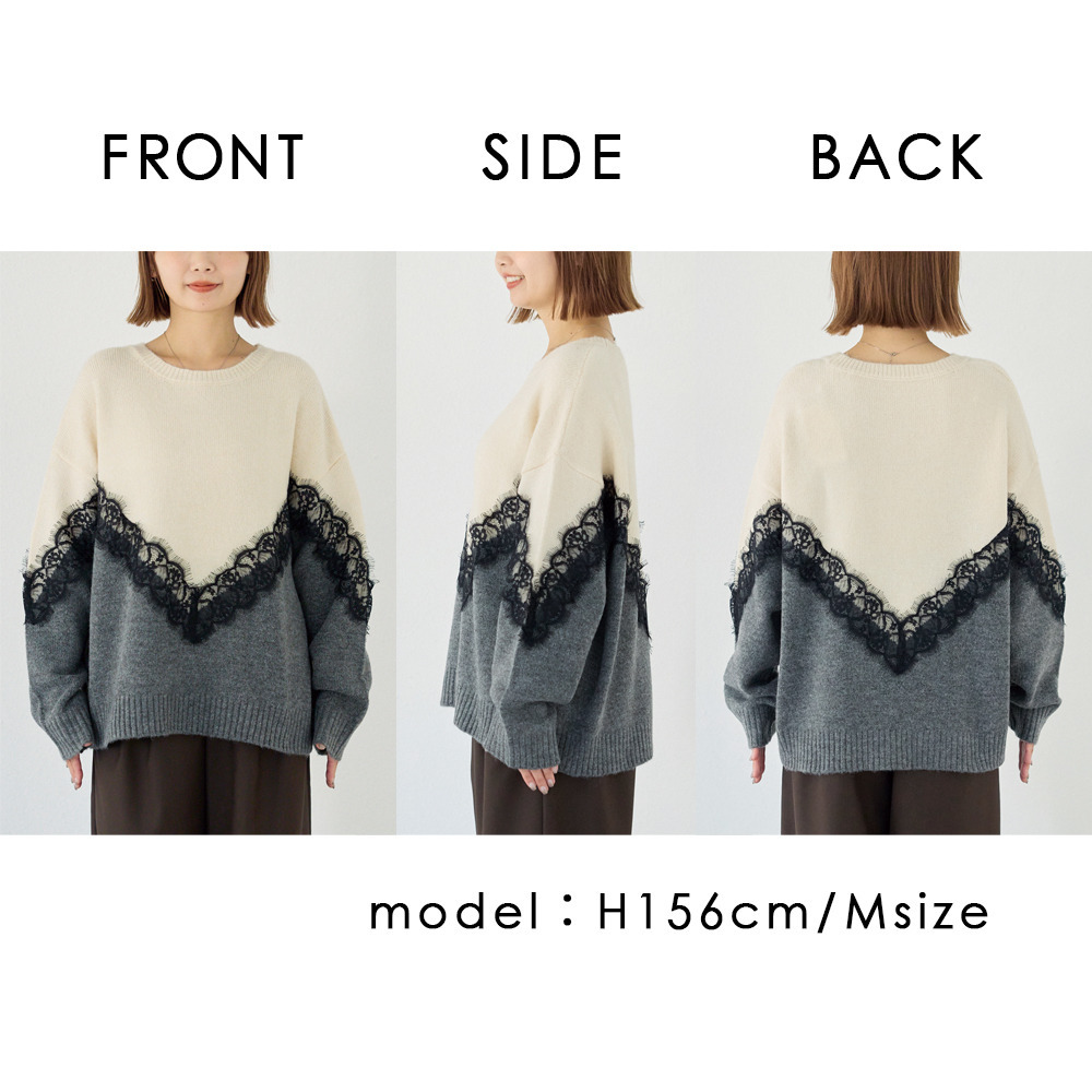 • 【洗える】レース切替バイカラーニットプルオーバー4