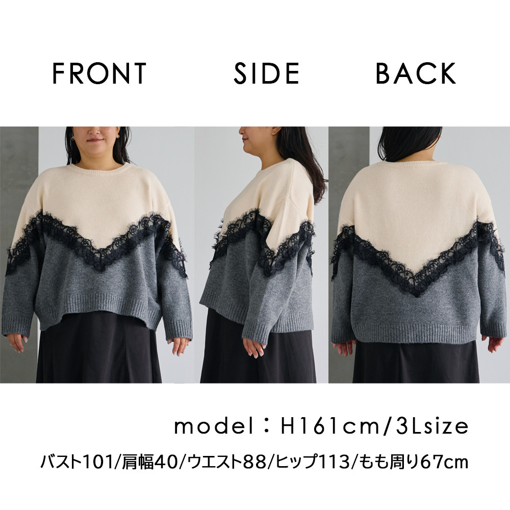 • 【洗える】レース切替バイカラーニットプルオーバー19
