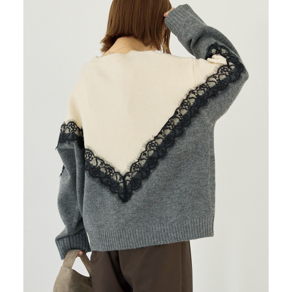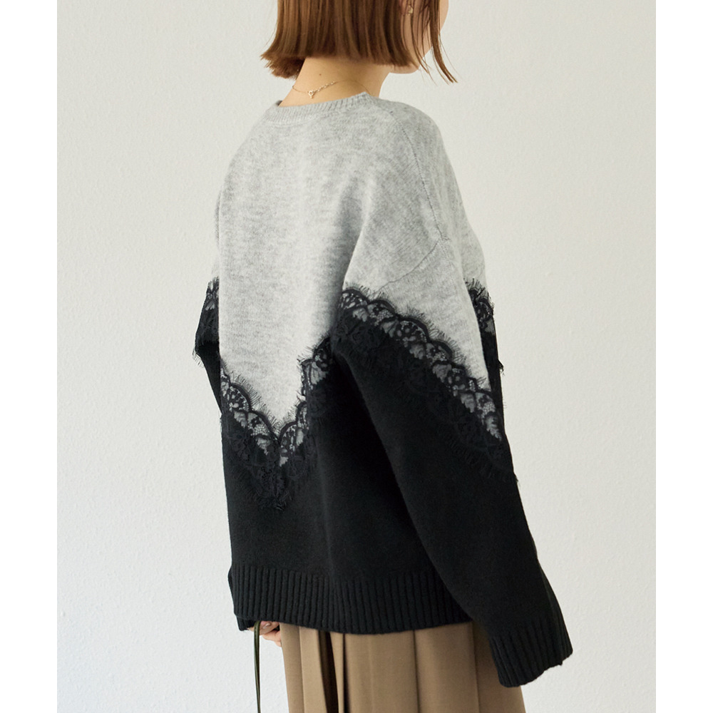 • 【洗える】レース切替バイカラーニットプルオーバー12