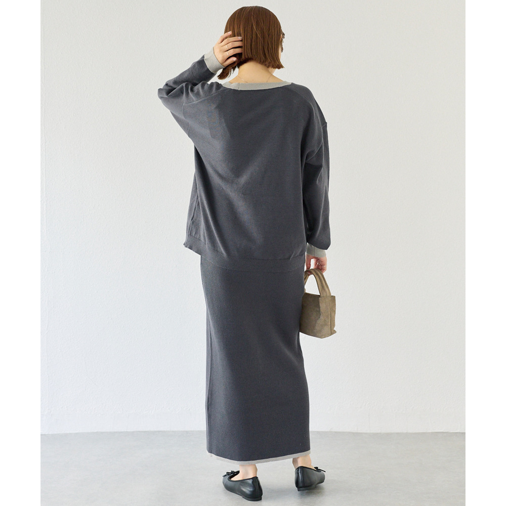 【洗える】バイカラーニットセットアップ