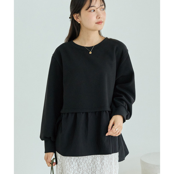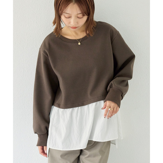裾部分にはしなやかな布帛素材を使用し、動きのある軽やかな表情をプラスしています。