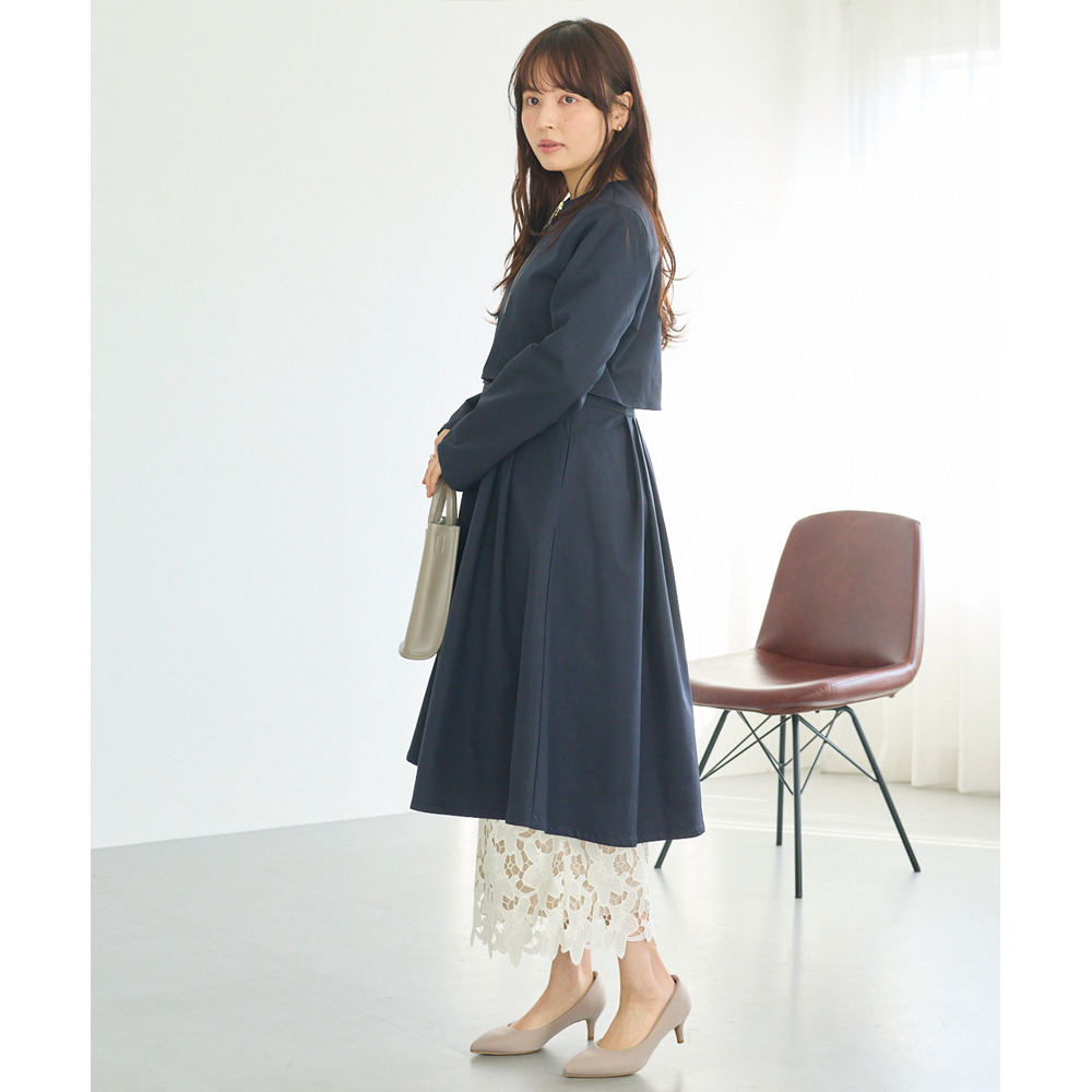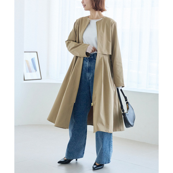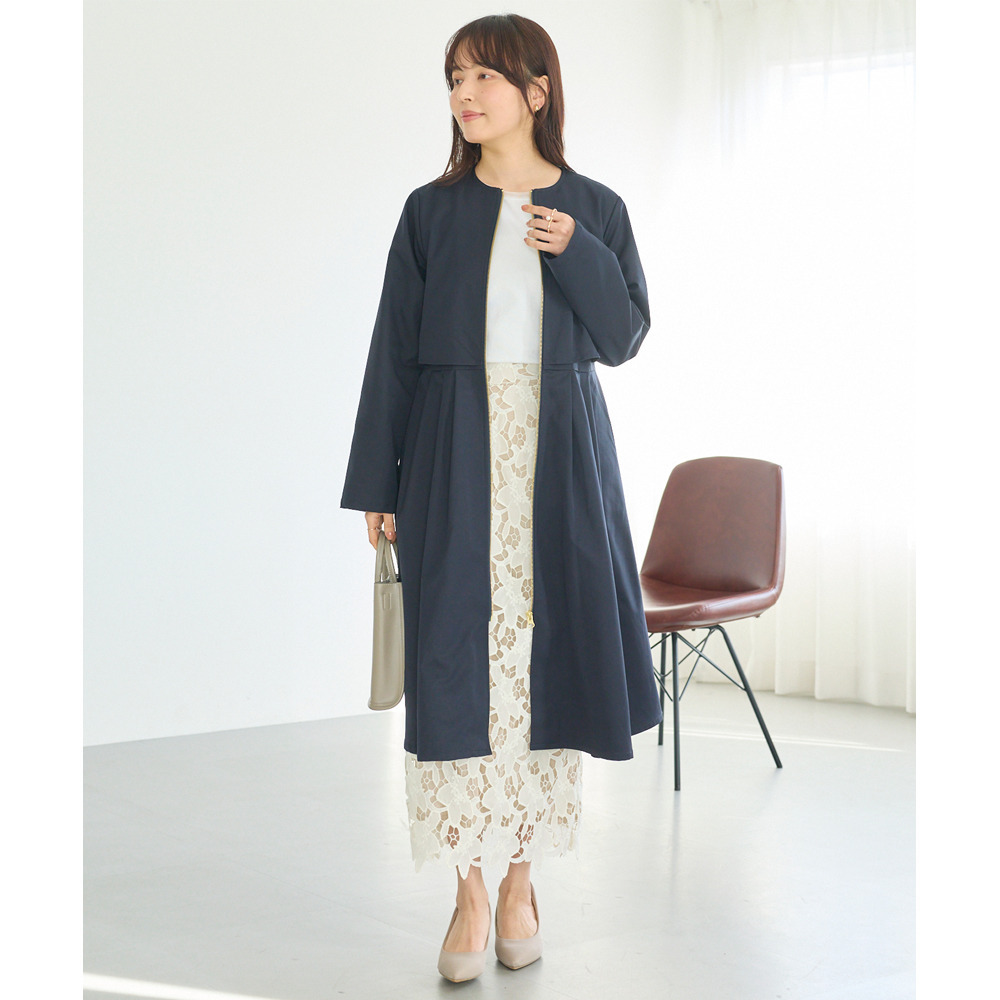 羽織るだけでバランス良く決まります。高めのウエスト位置と、裾に向かって緩やかに広がる女性らしいAラインシルエットがスタイルアップ効果を発揮し、周りと差のつくワンランク上の装いを演出します。