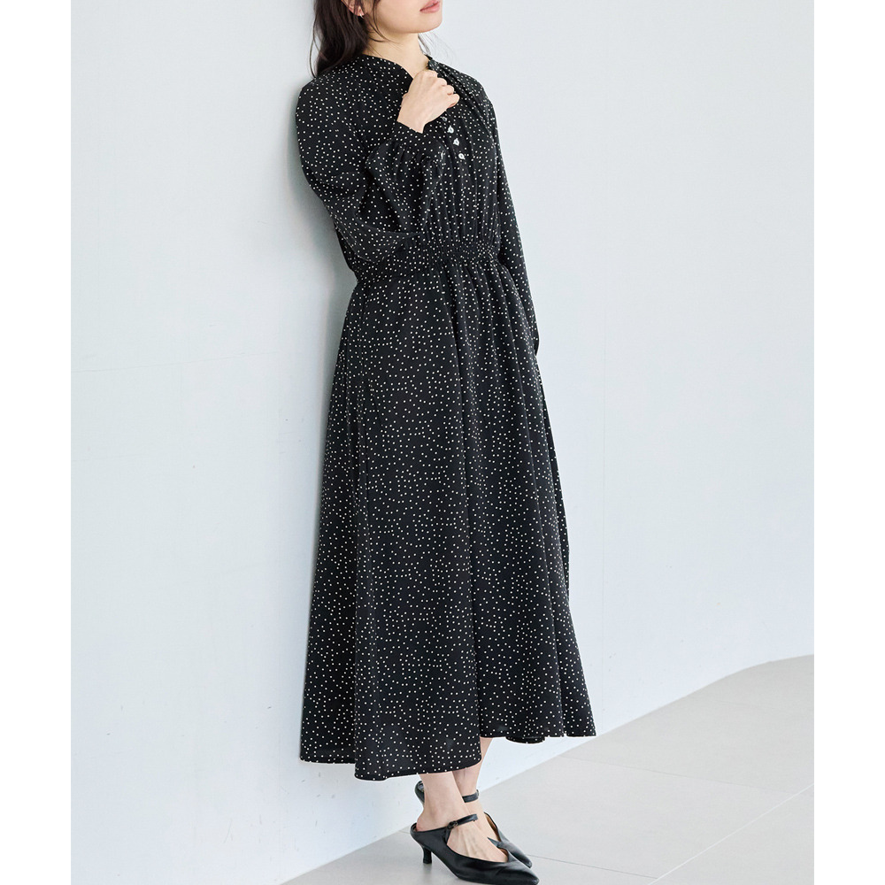 程よい甘さのドット柄をあしらった、大人の女性に似合う上品なワンピース。