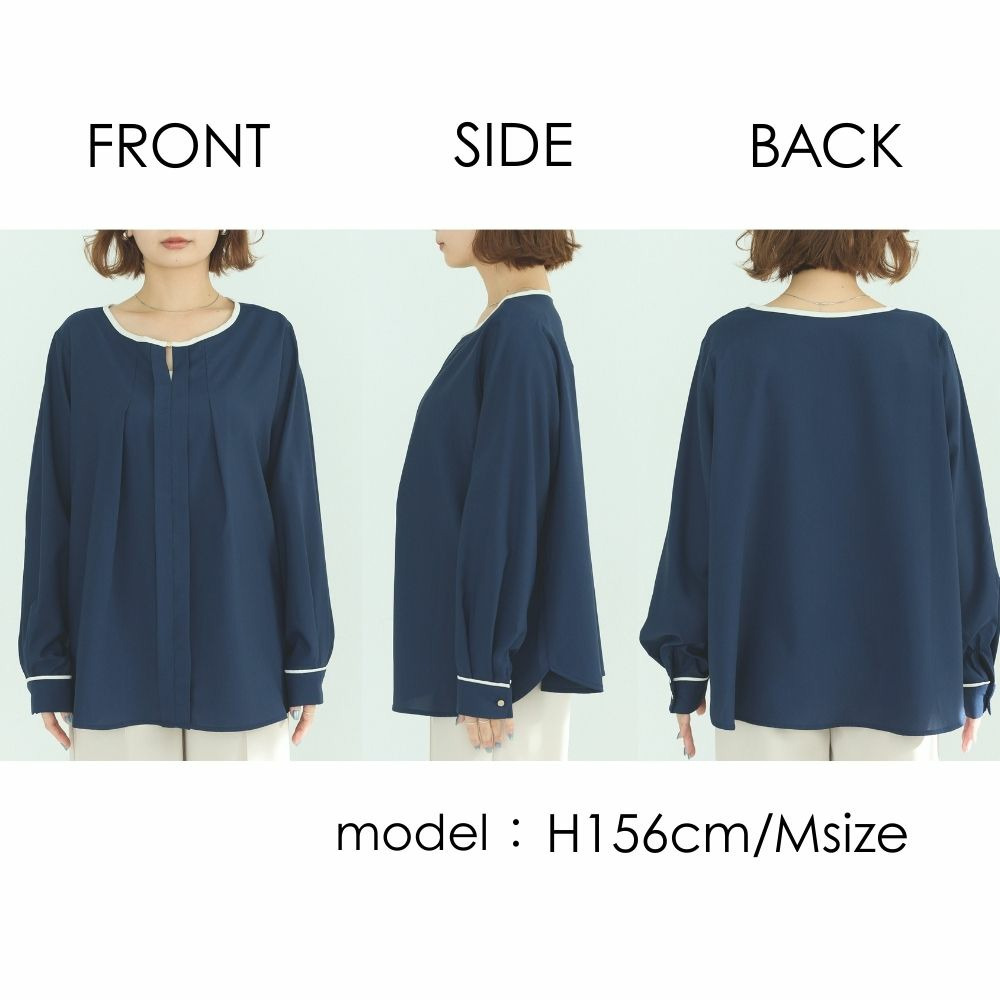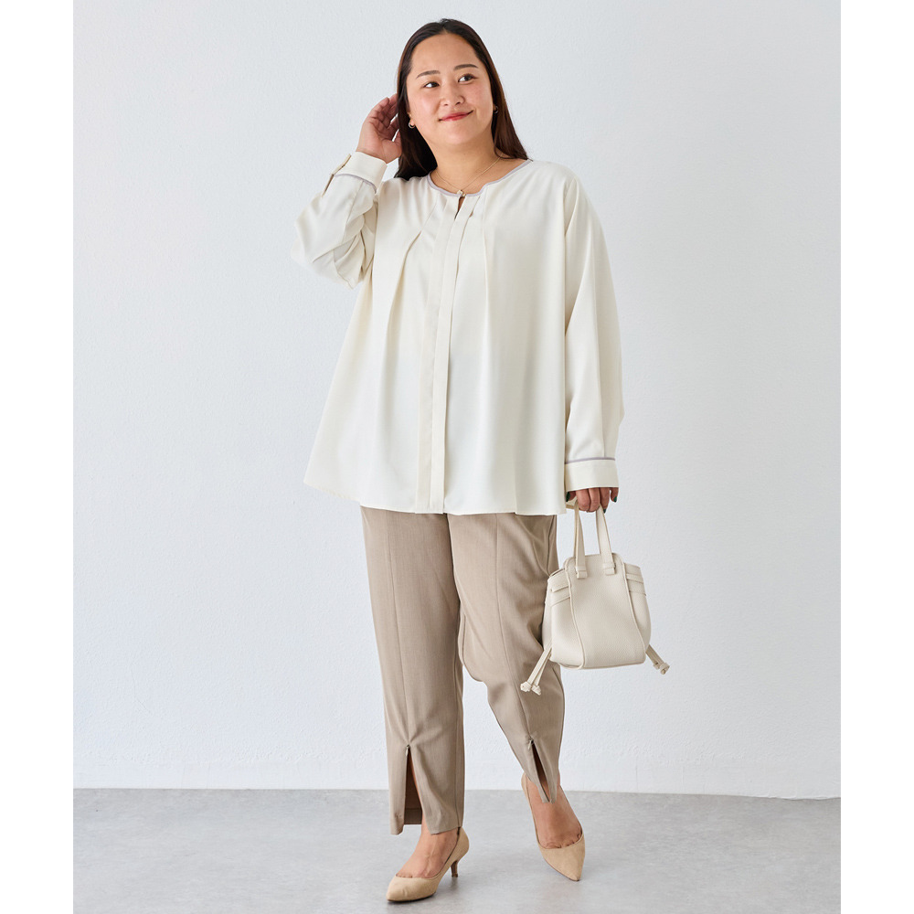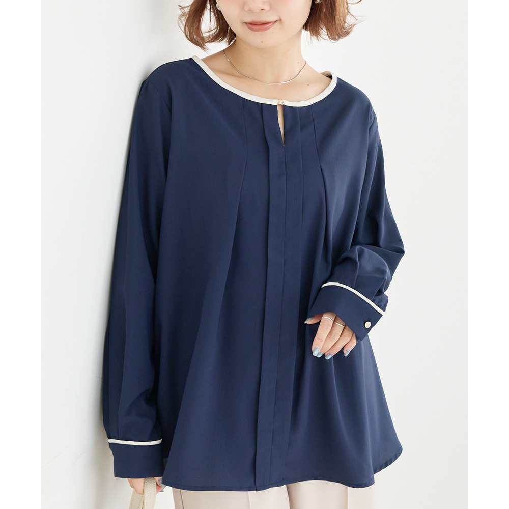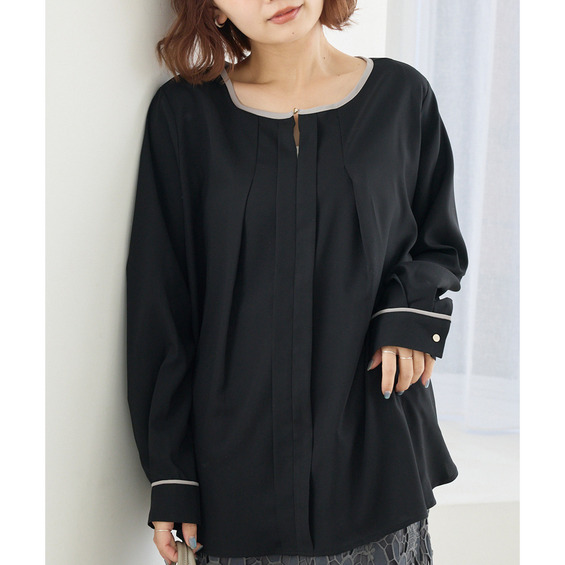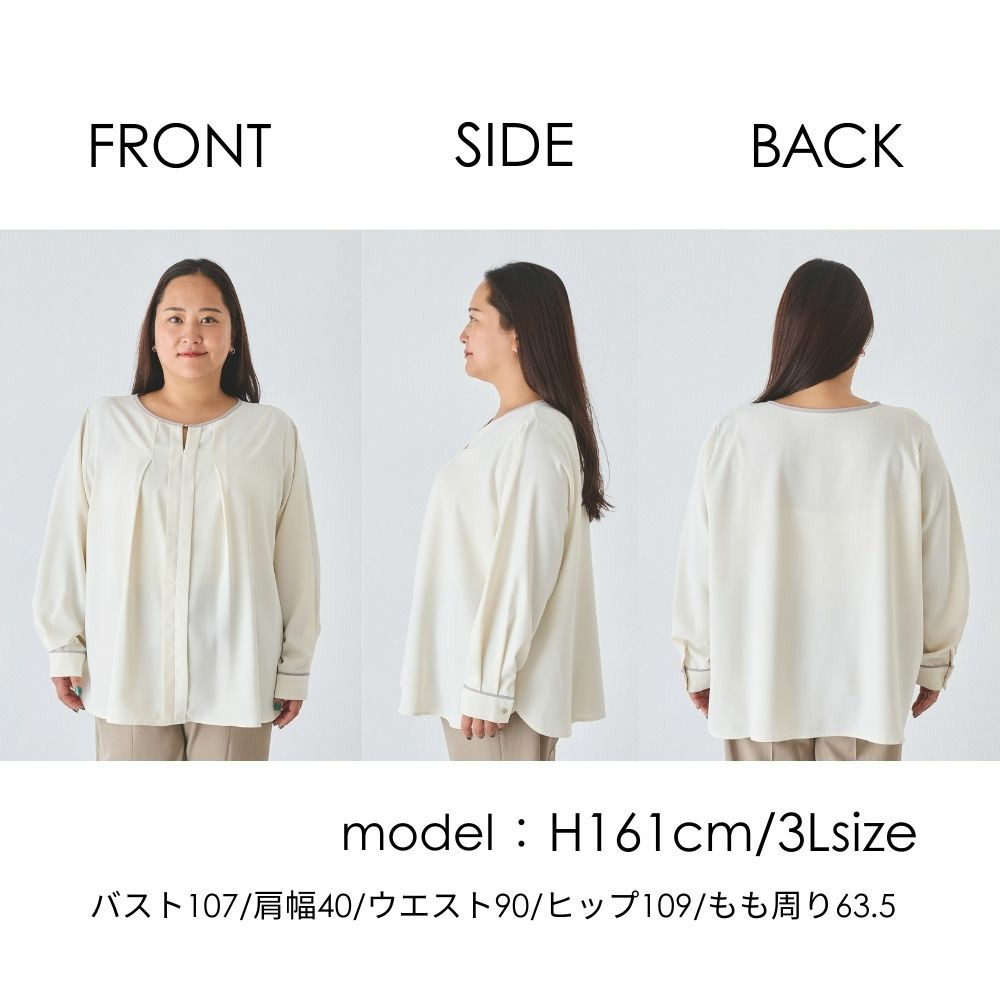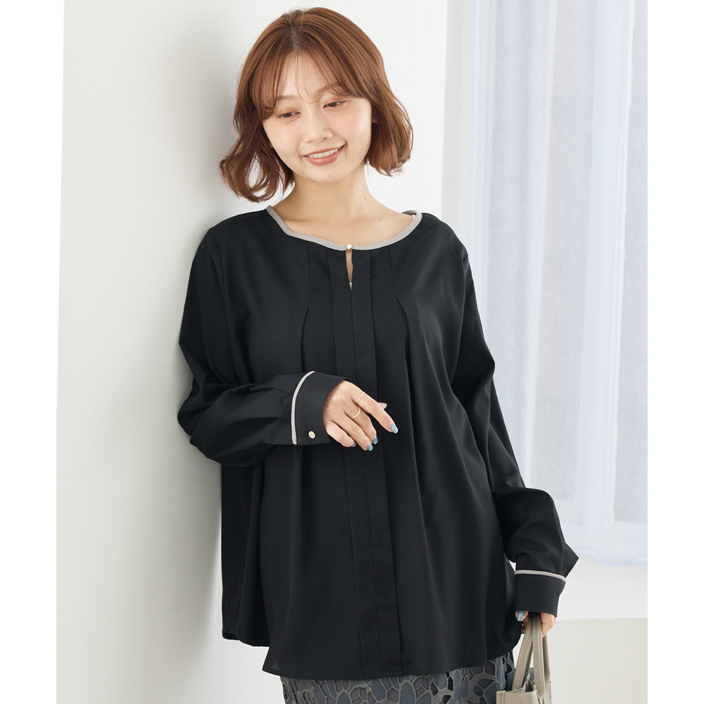 【洗える】パイピング配色ブラウス LL/3L/4L/5L セレモニー オフィスカジュアル ラビアンジェ