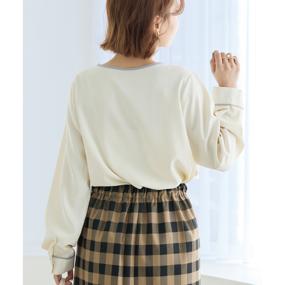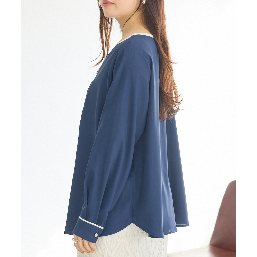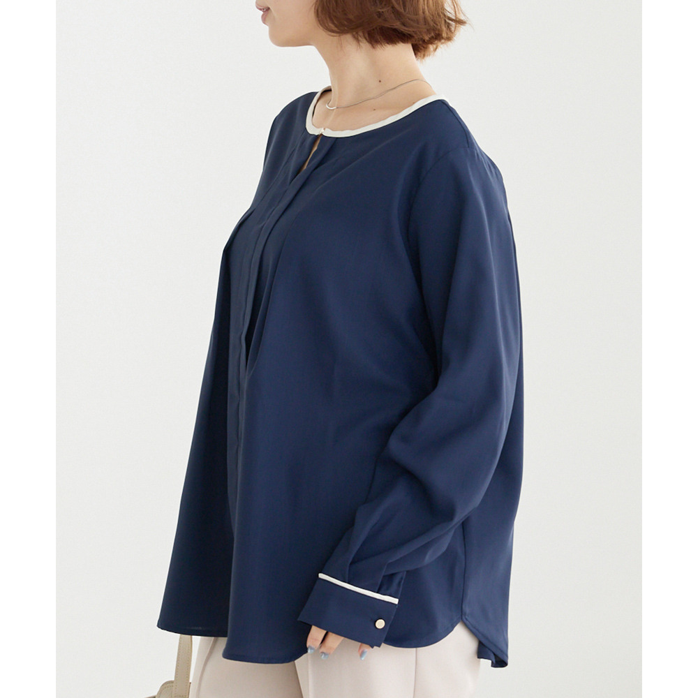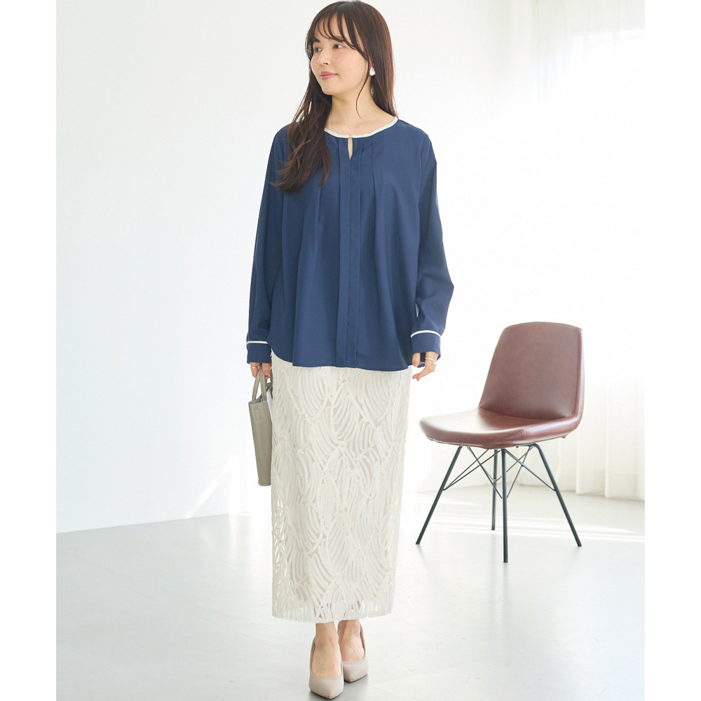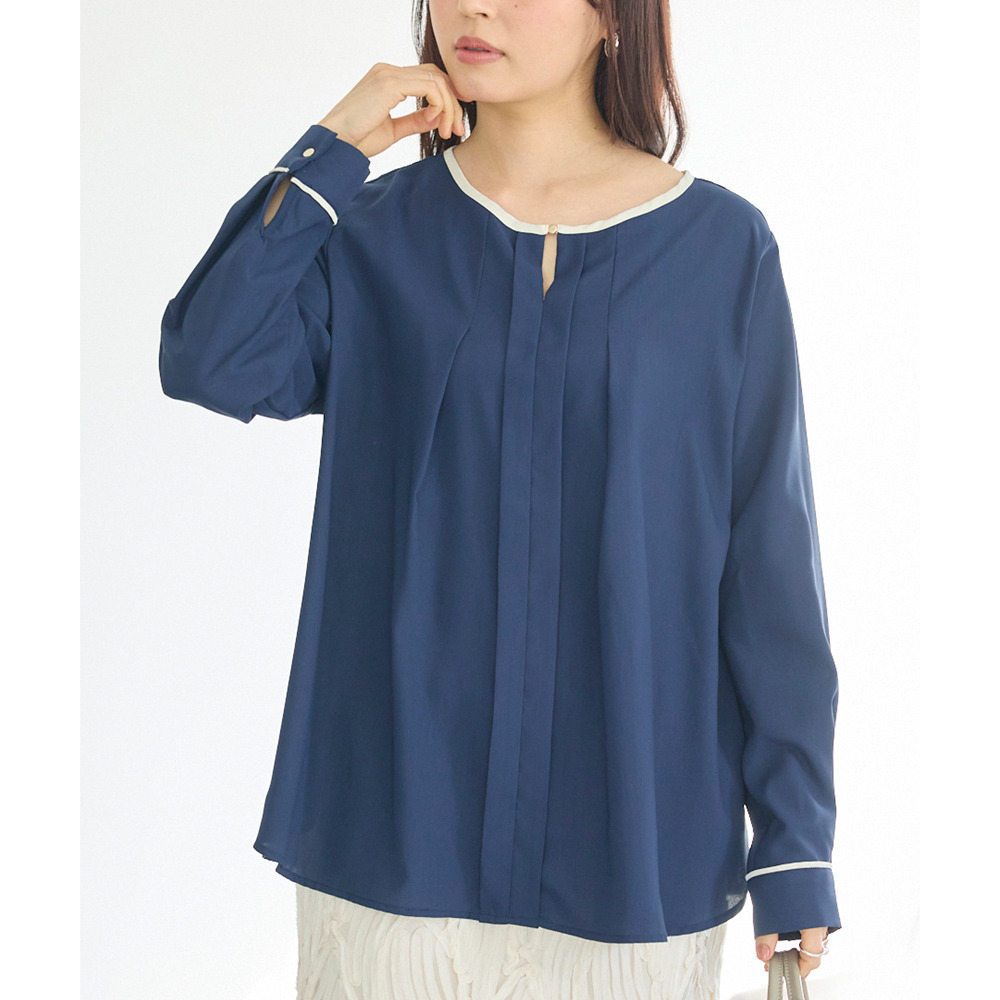 【洗える】パイピング配色ブラウス LL/3L/4L/5L セレモニー オフィスカジュアル ラビアンジェ