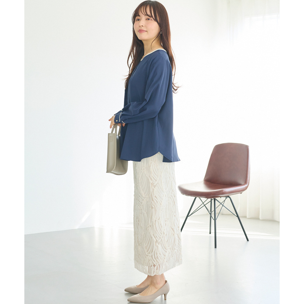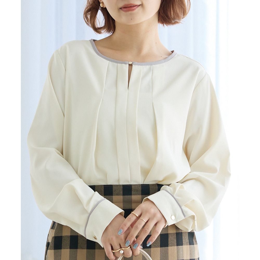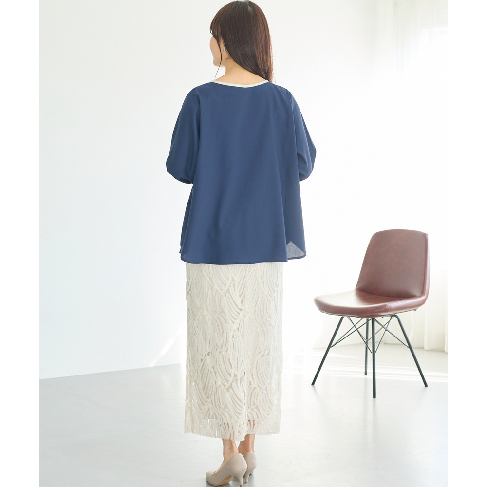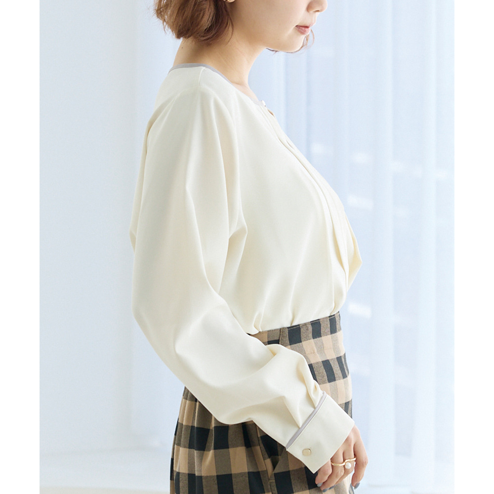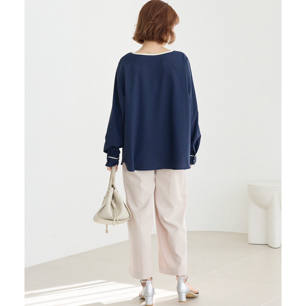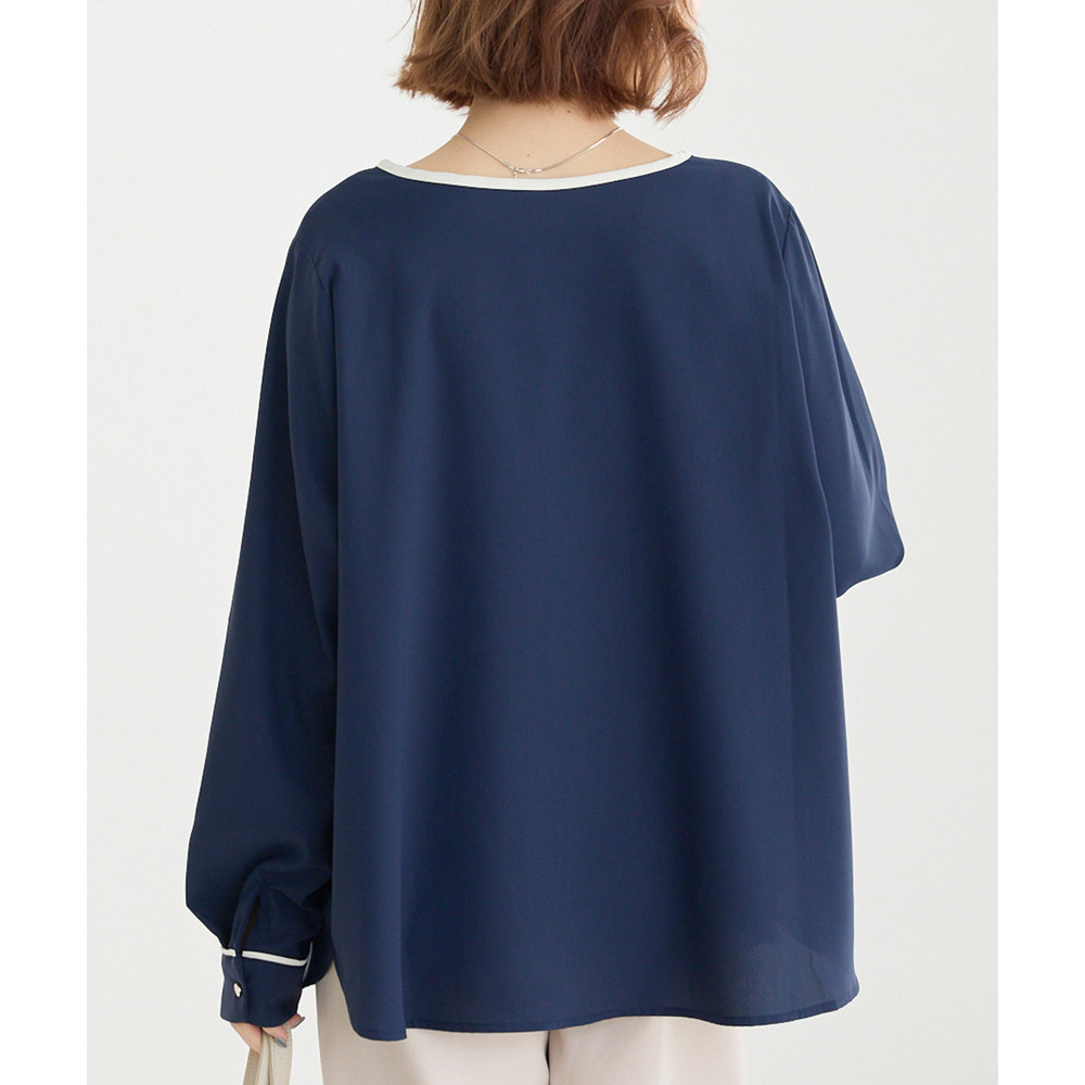 【洗える】パイピング配色ブラウス LL/3L/4L/5L セレモニー オフィスカジュアル ラビアンジェ