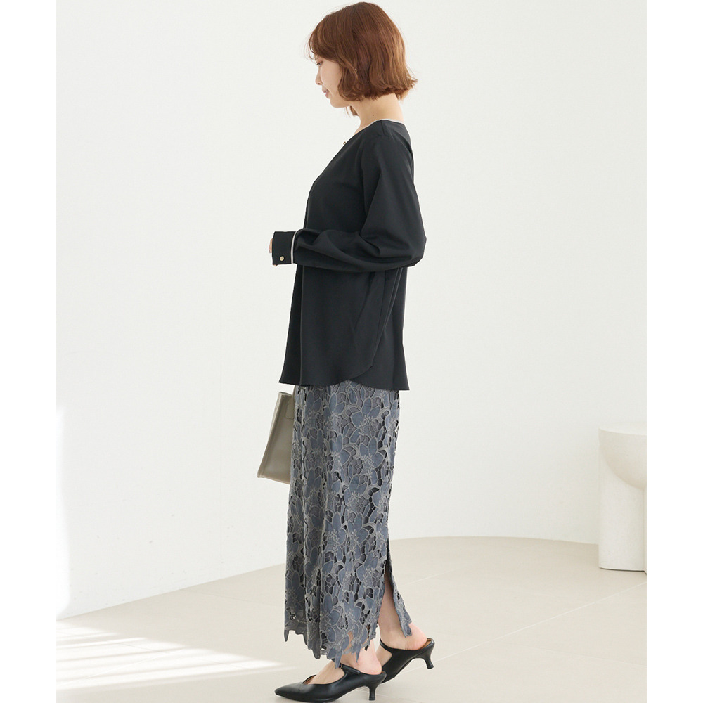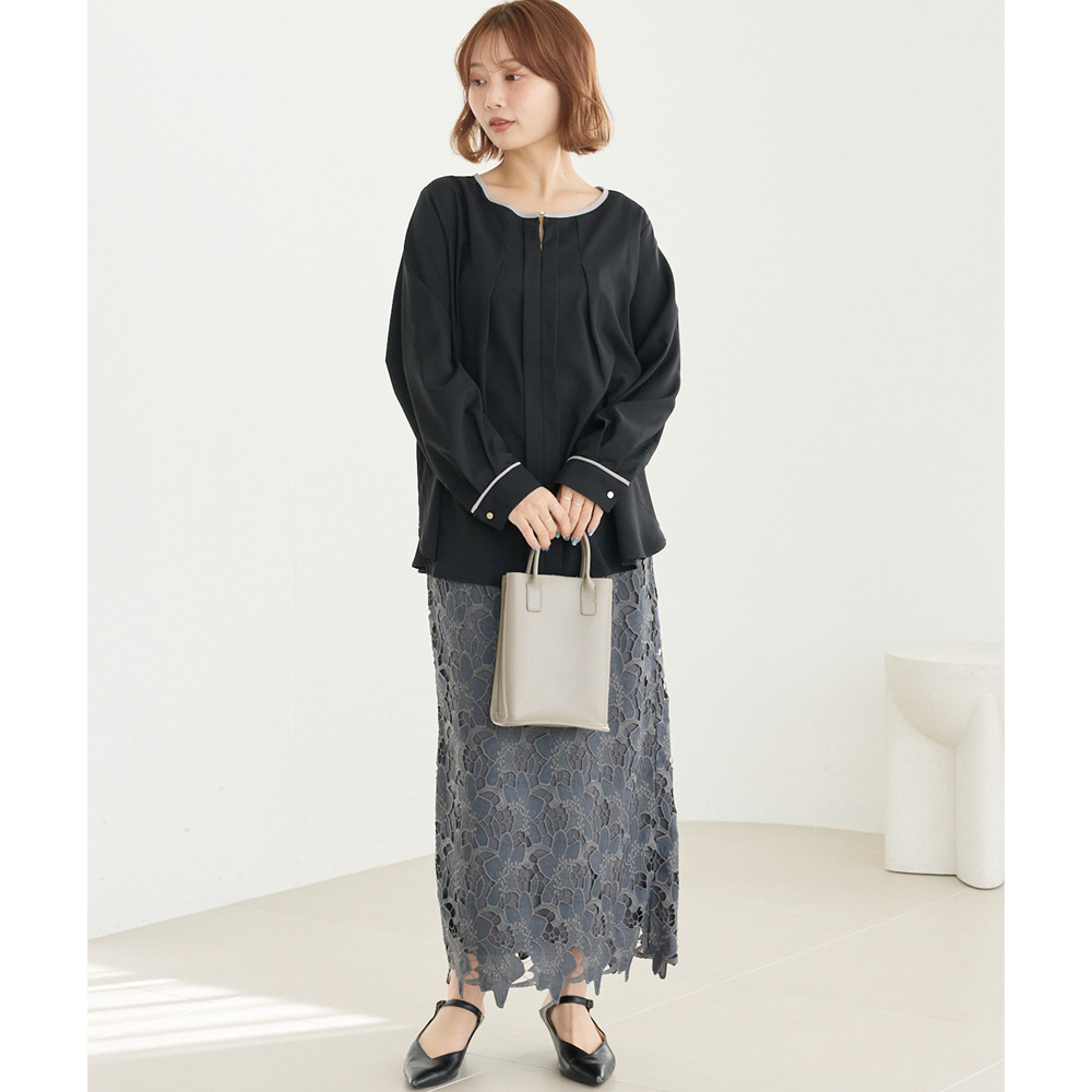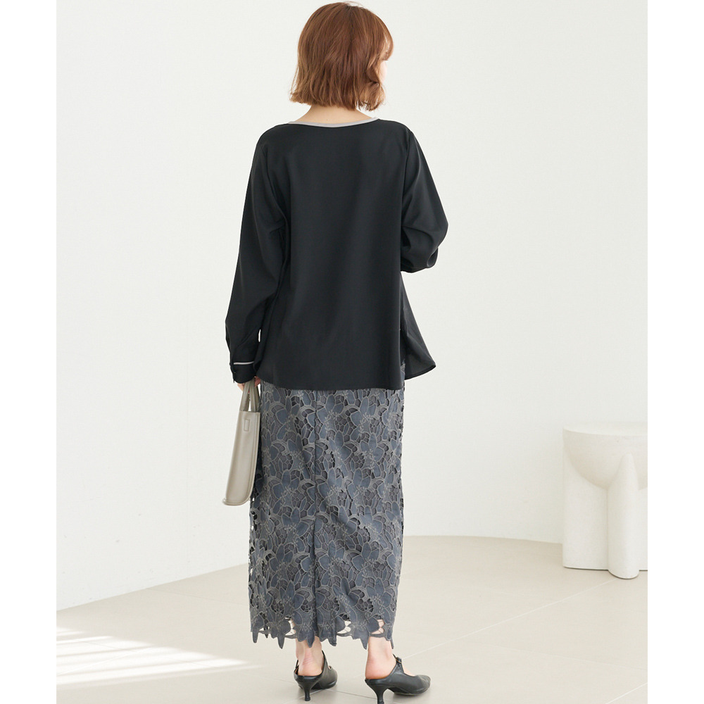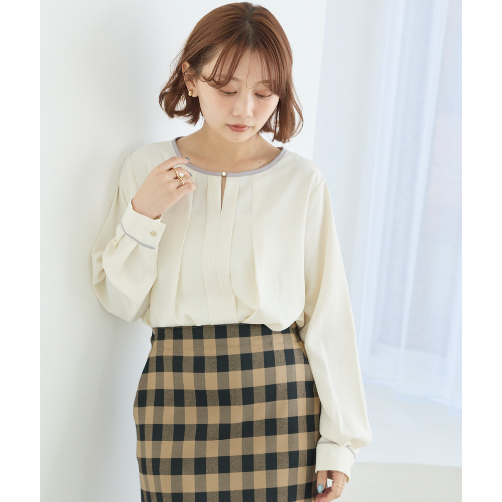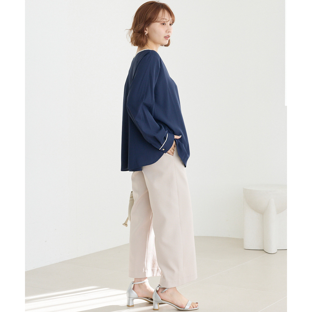 【洗える】パイピング配色ブラウス LL/3L/4L/5L セレモニー オフィスカジュアル ラビアンジェ