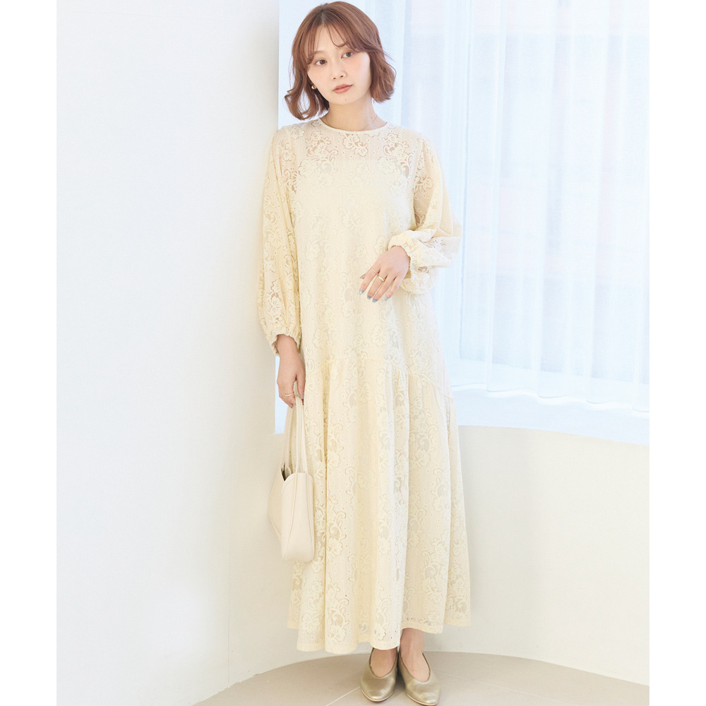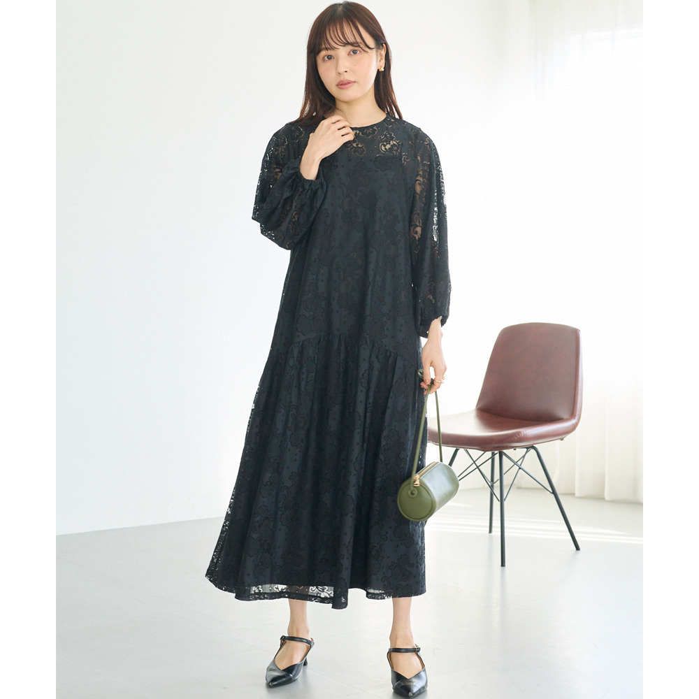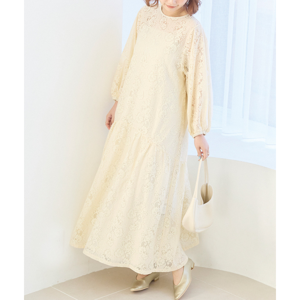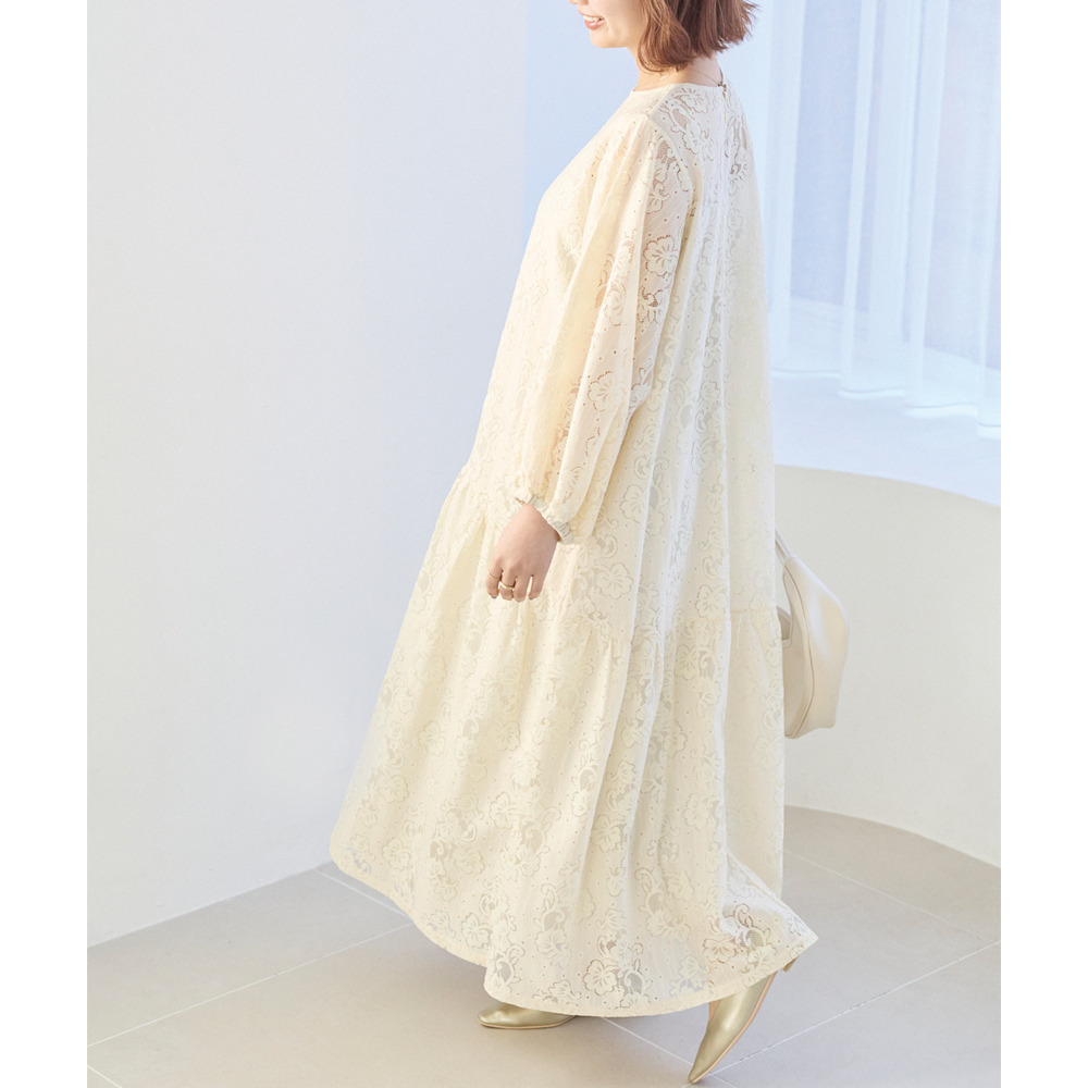 華やかな総レース仕立てのワンピースは、華やかなシーンにも対応できる上品さが魅力。